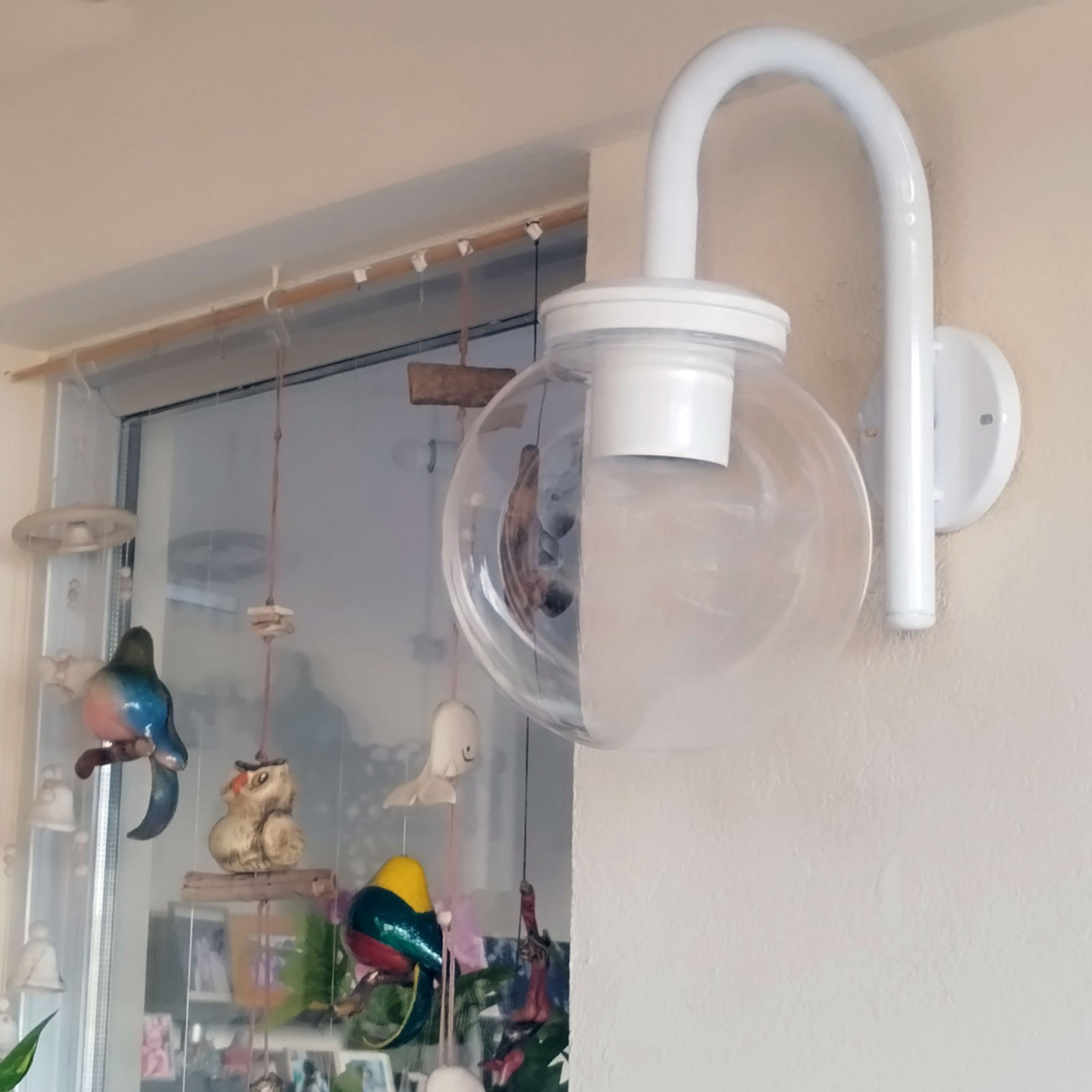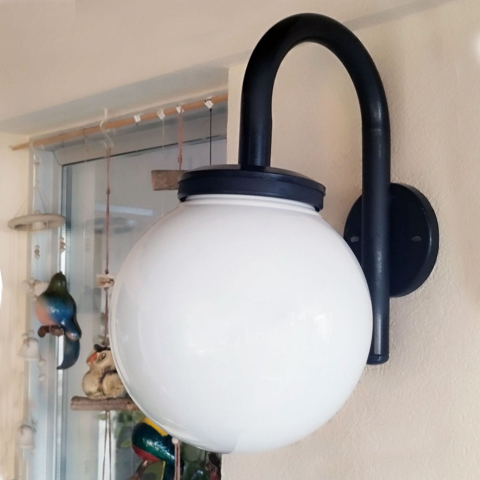 Aplique Globo PVC (20) de Pared de Jardín Exterior Decorativo Antivandalismo 1 Luz Vidrio Opal ó Transparente – Apto Led (E27) – Colores: Blanco, Negro.