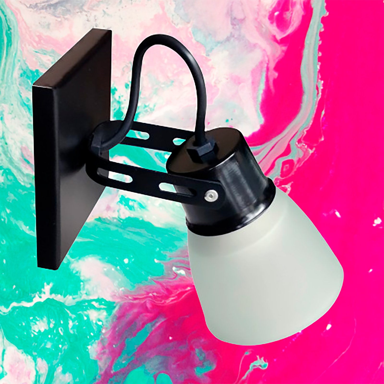 Aplique Spot con Tulipa Larga de Vidrio Base Cuaderada de 1 Luz – Apto Led (E27) – Colores: Blanco, Negro.