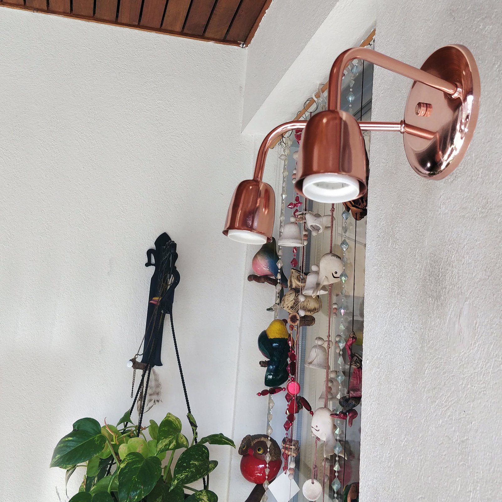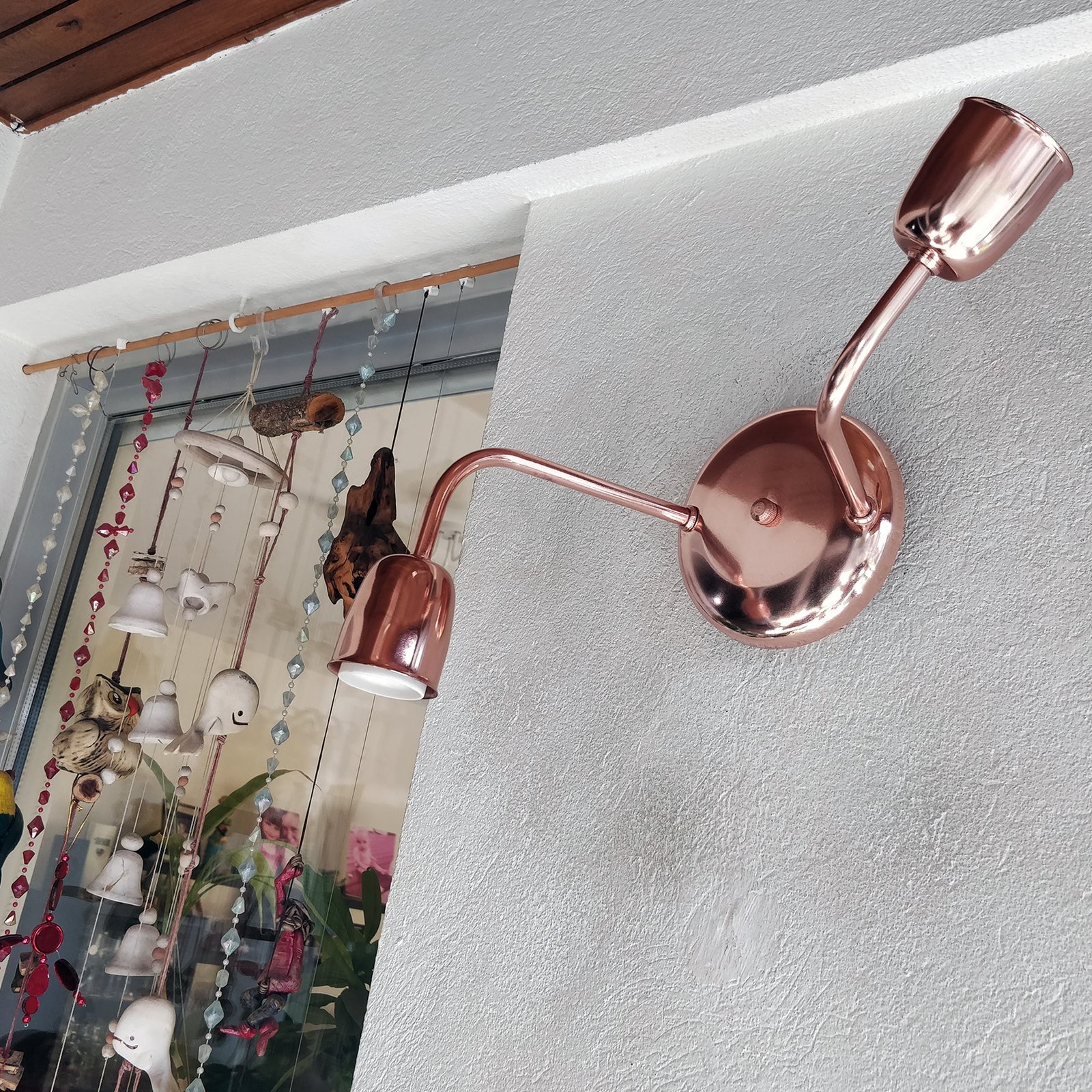 Aplique Spot De Pared Recto Base Redonda 2 Luces Metalizado Moderno Retro Vintage – Apto Led (E-27) – Cromado, Cobre Brillante, Cobre Viejo, Dorado.