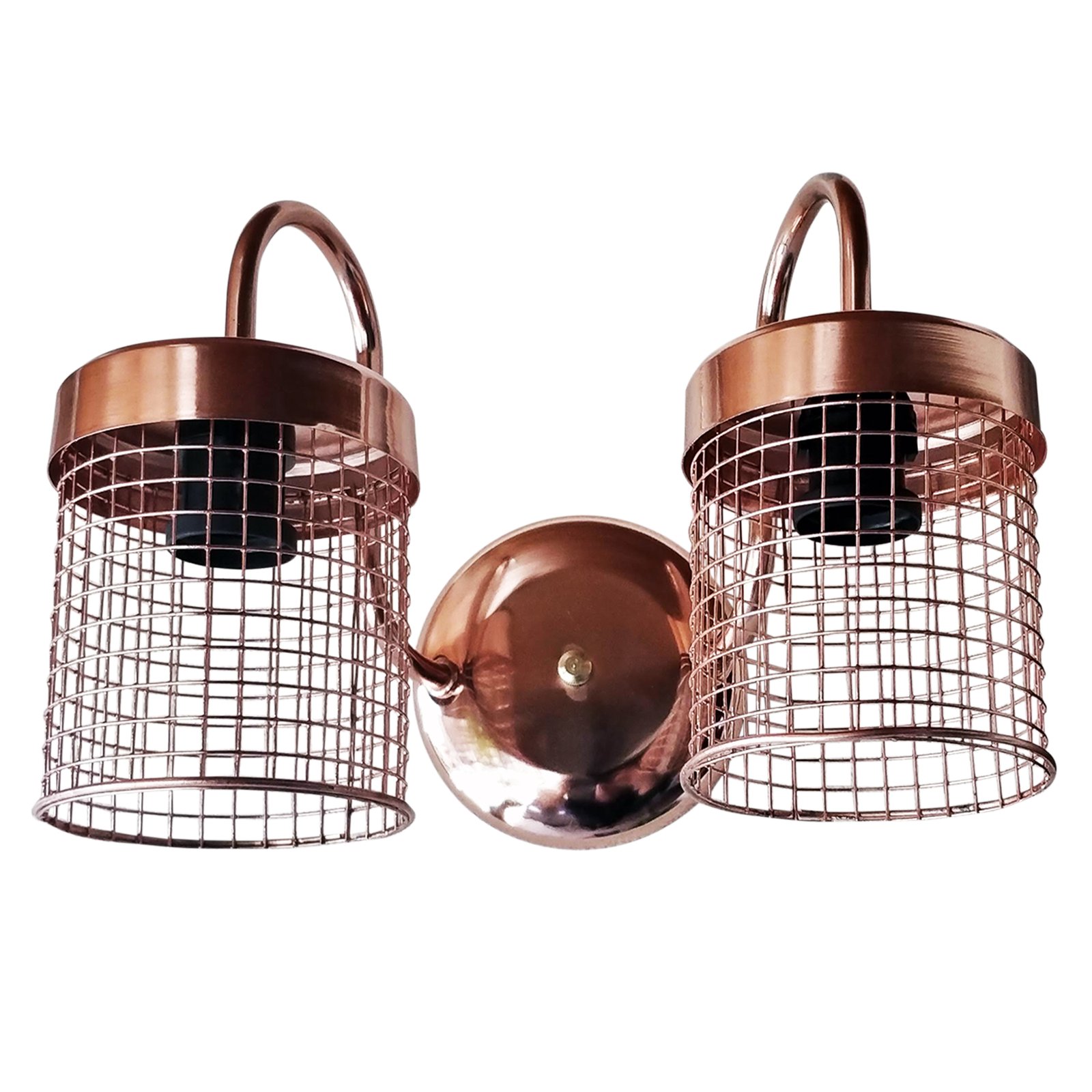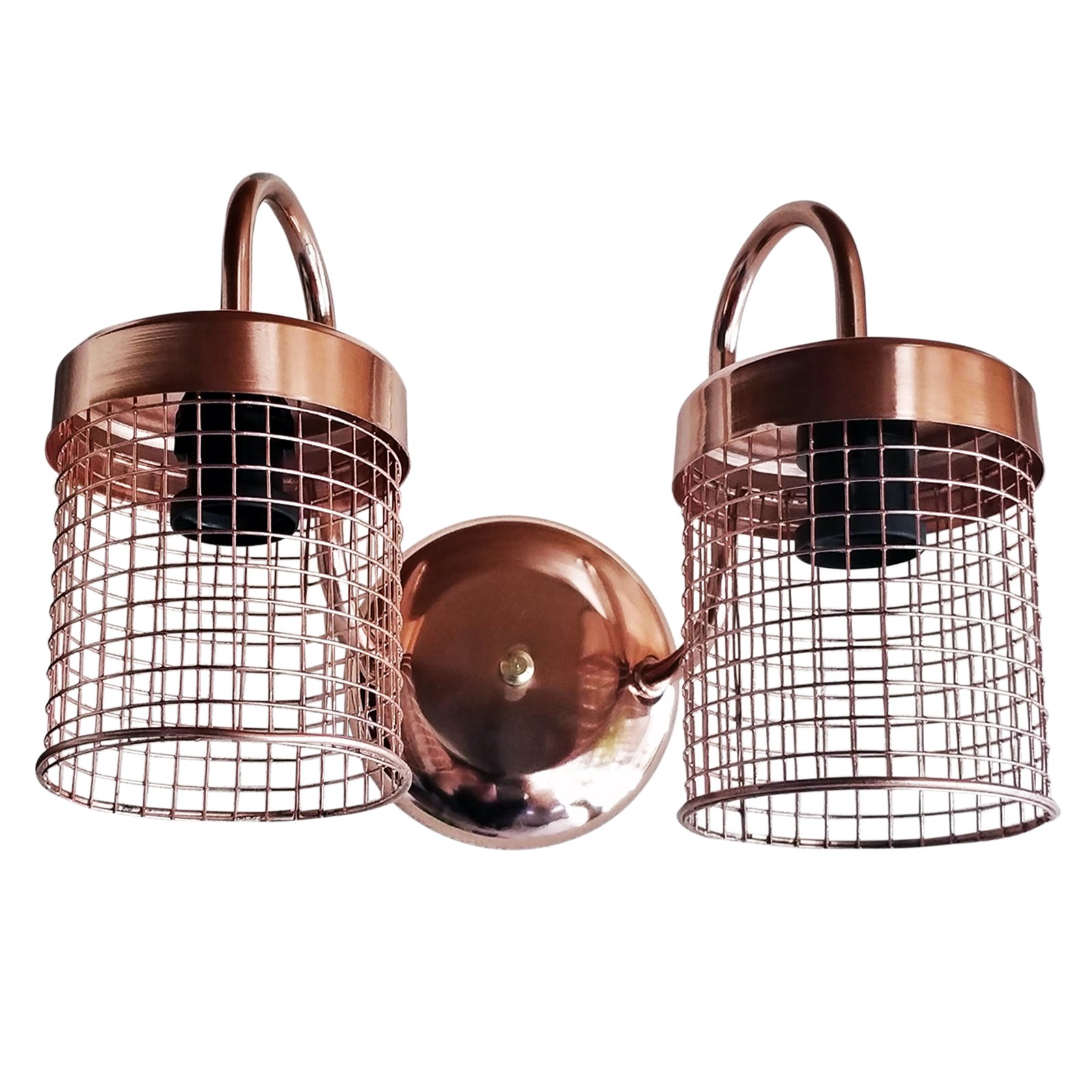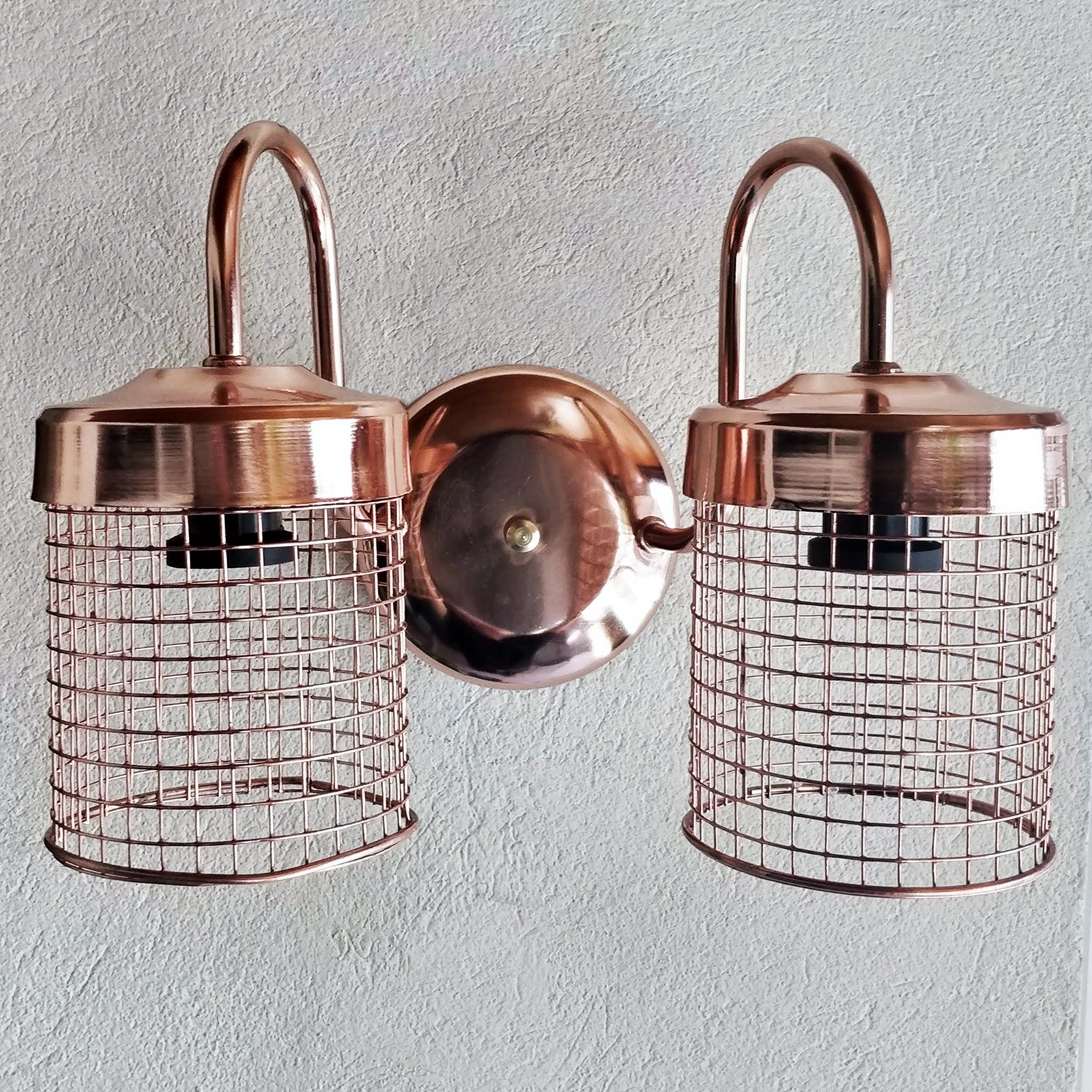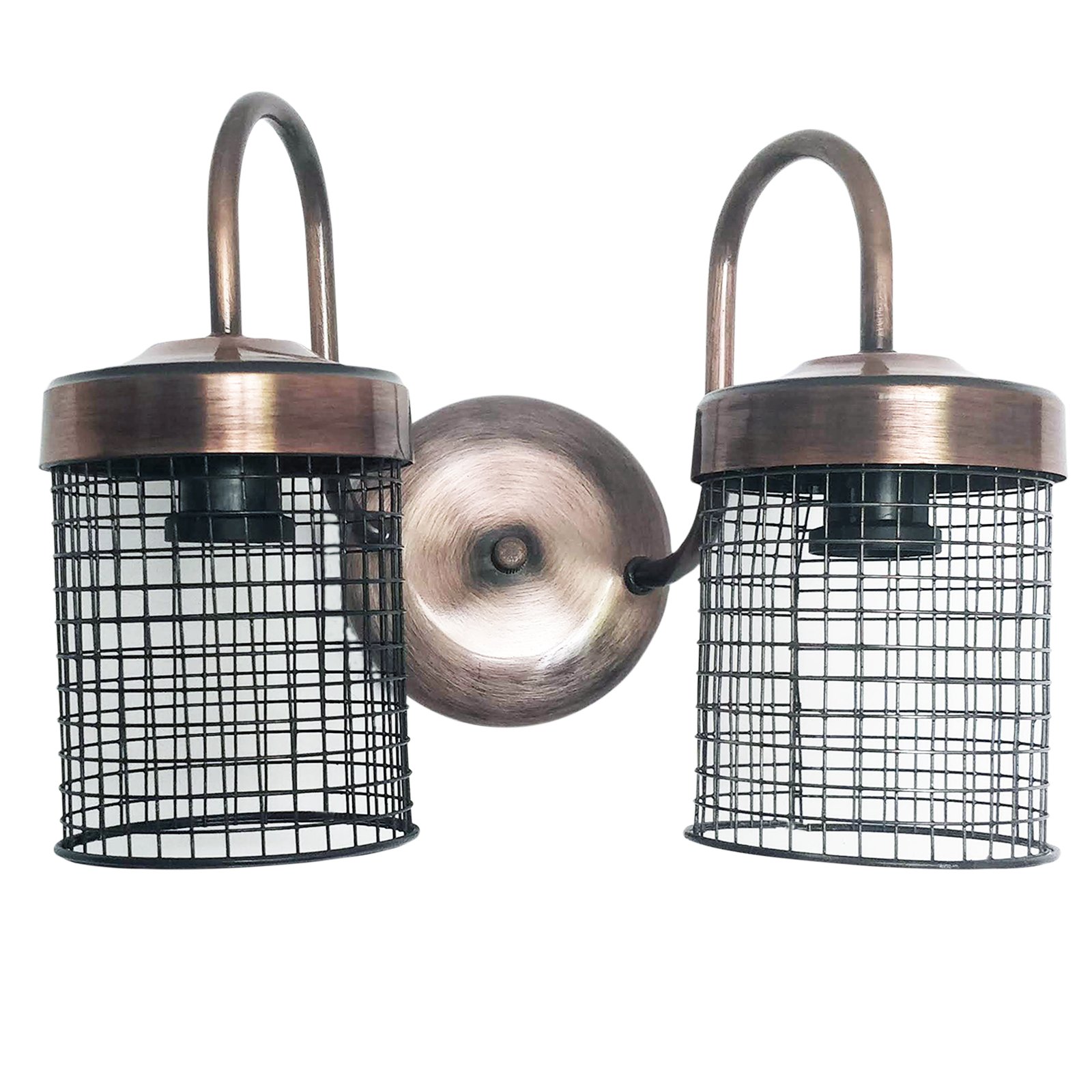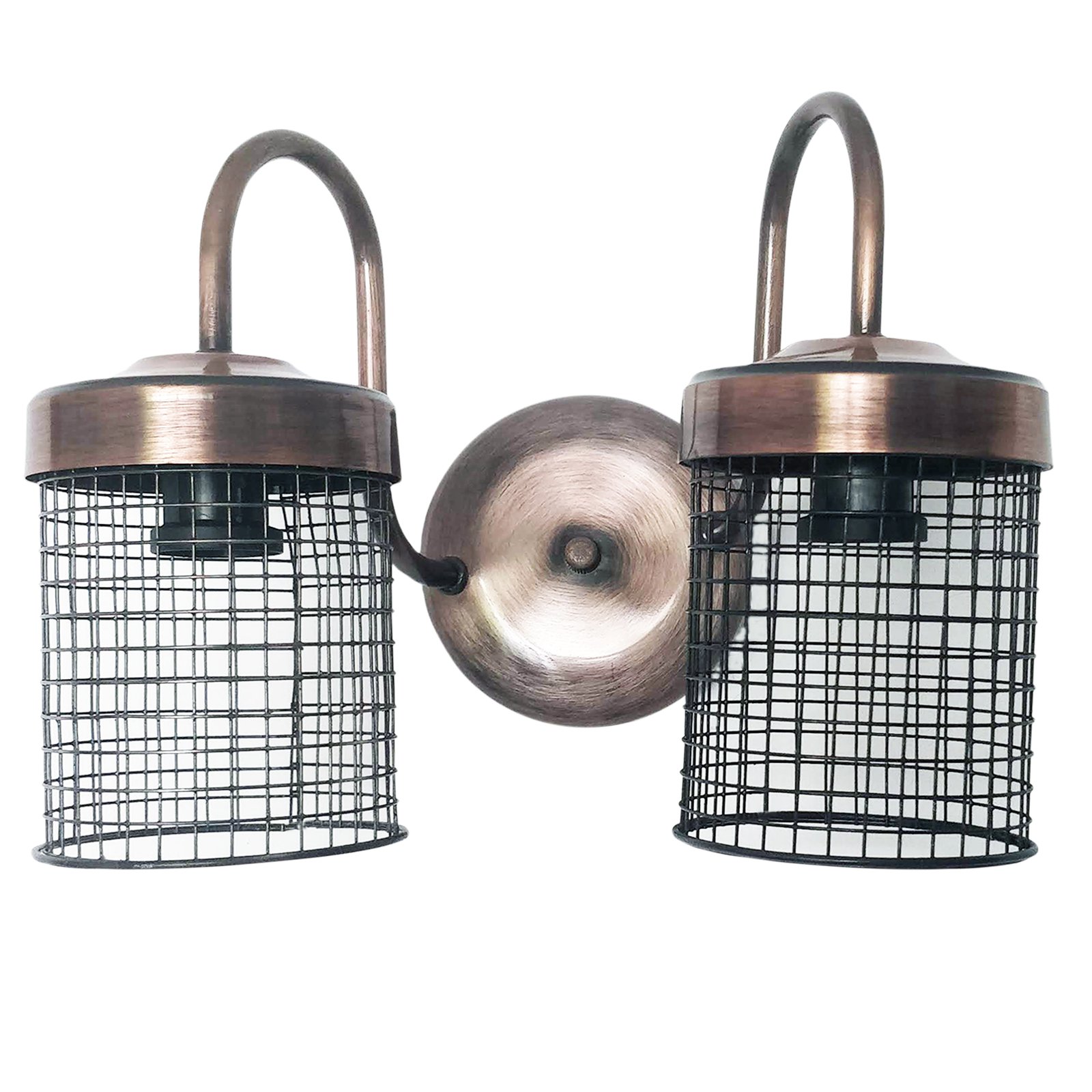 Aplique Spot De Pared Signo 2 Luces Base Redonda Metalizado con Reja Moderno Retro Vintage – Apto Led (E-27) – Cromado, Cobre Brillante, Cobre Viejo, Dorado.