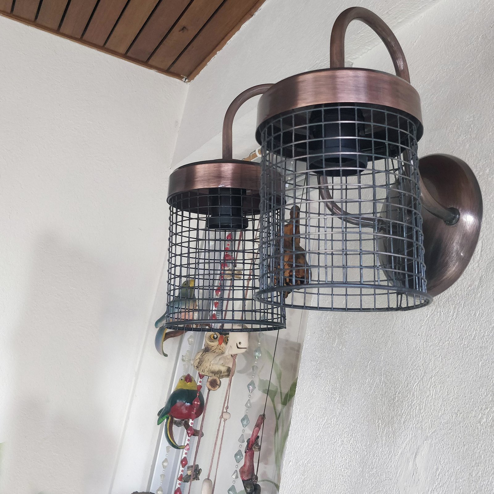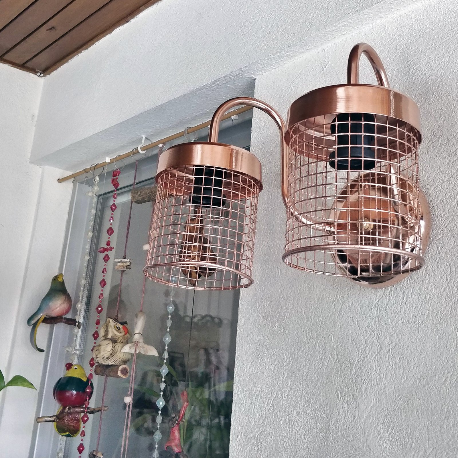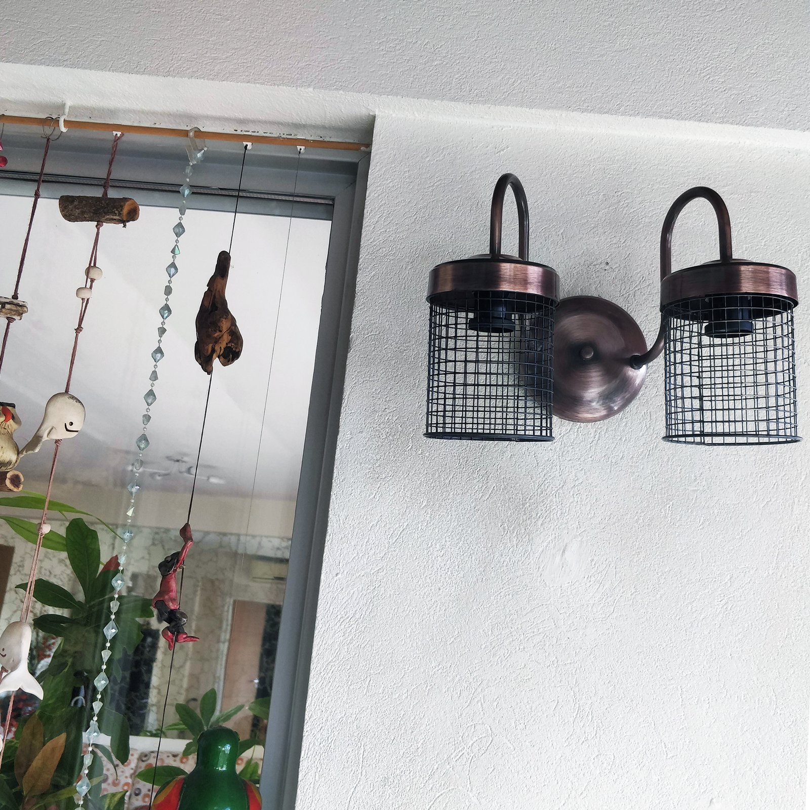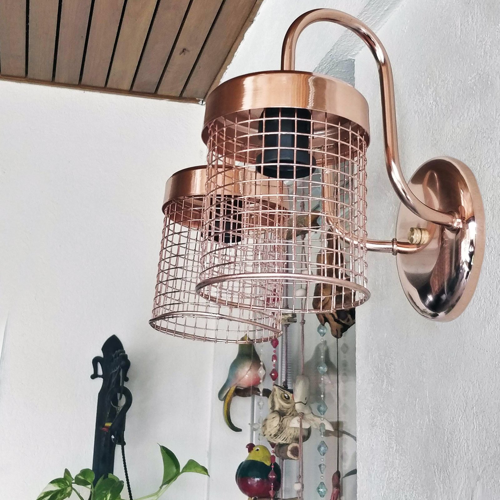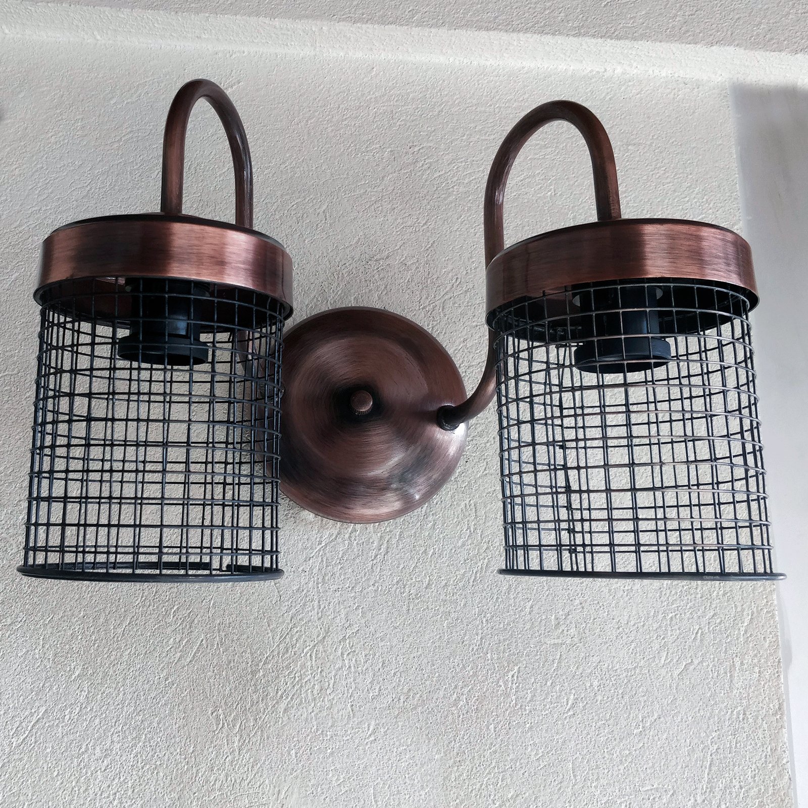 Aplique Spot De Pared Signo 2 Luces Base Redonda Metalizado con Reja Moderno Retro Vintage – Apto Led (E-27) – Cromado, Cobre Brillante, Cobre Viejo, Dorado.