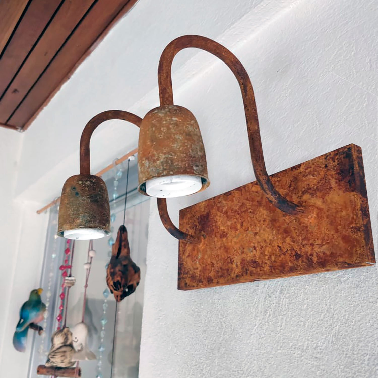 Aplique Spot De Pared Signo Base Rectangular 2 Luces Moderno Retro Vintage – Apto Led (E-27) – Símil Óxido.