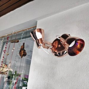 Aplique Spot Económico de Chapa Base Redonda Metalizado 2 Luces – Apto Led (E27) – Cromado, Dorado, Cobre Brillante, Cobre Viejo.