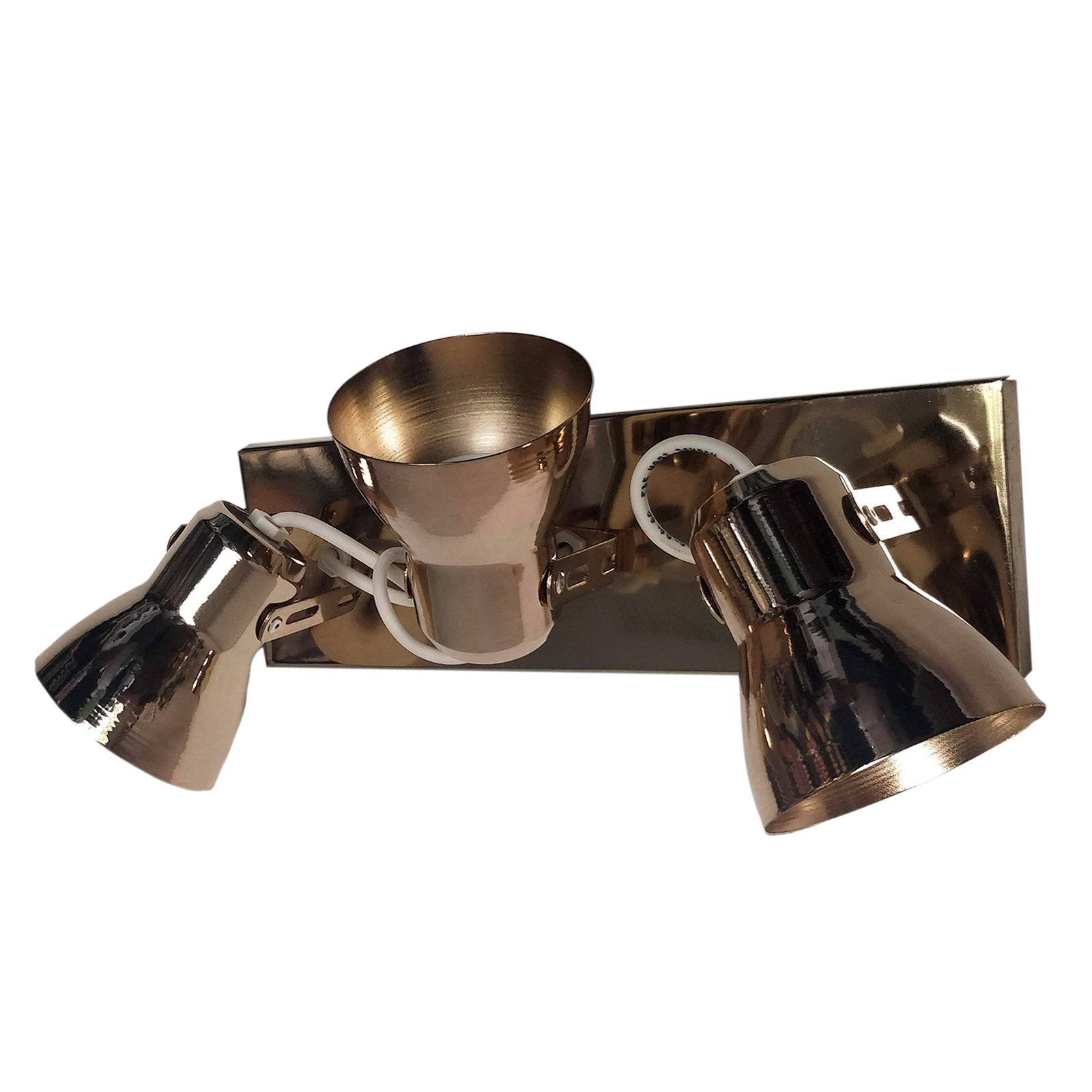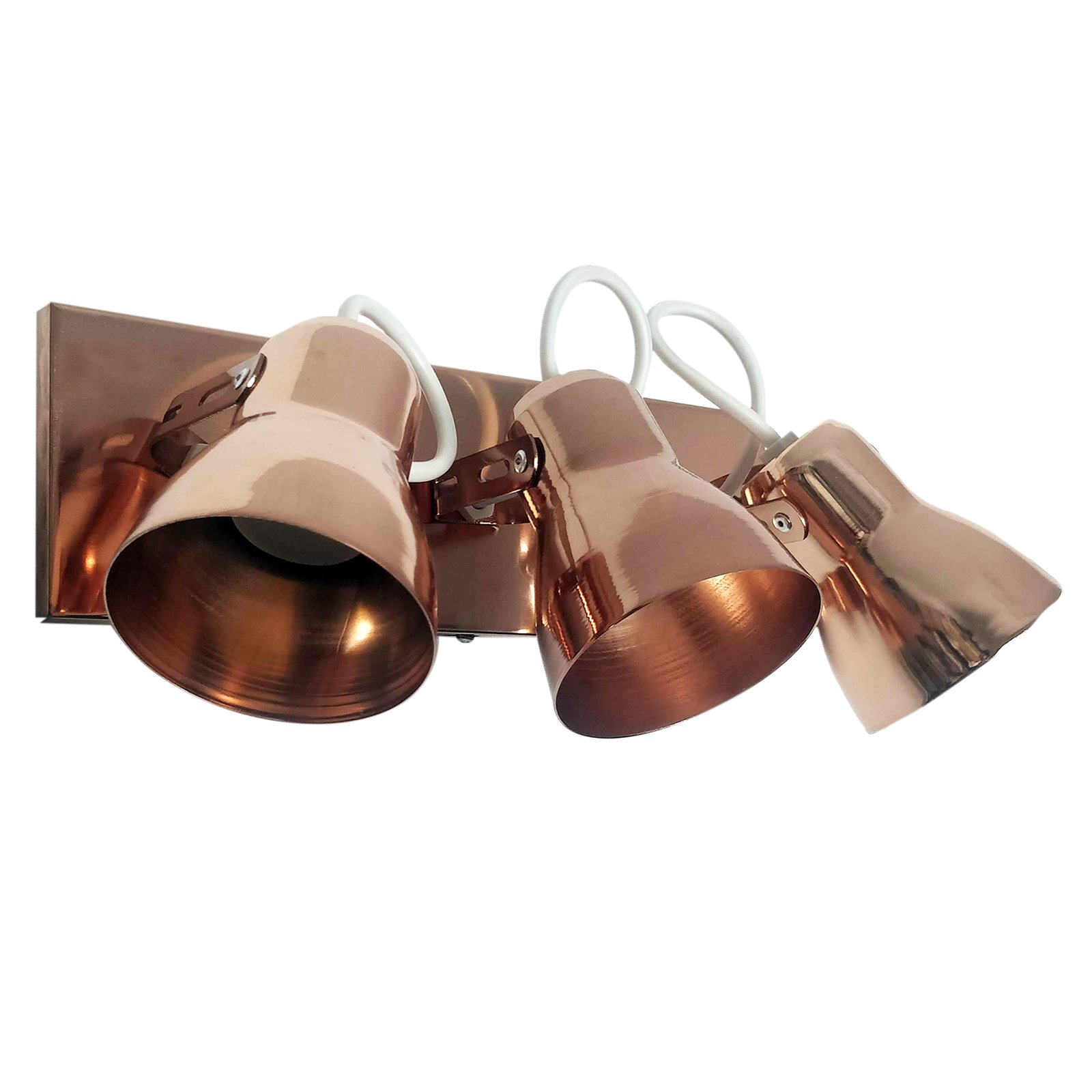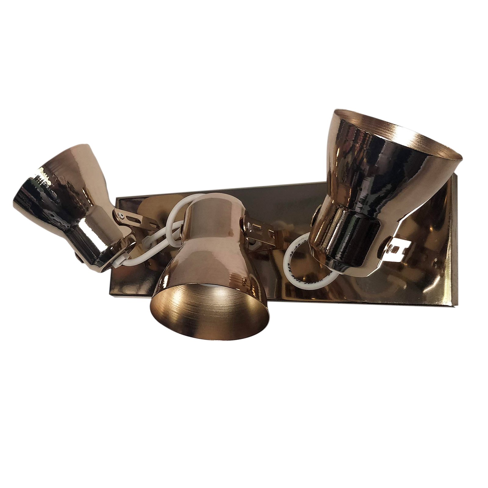 Aplique Spot Económico de Chapa Base Rectangular Metalizado 3 Luces – Apto Led (E27) – Cromado, Dorado, Cobre Brillante, Cobre Viejo.