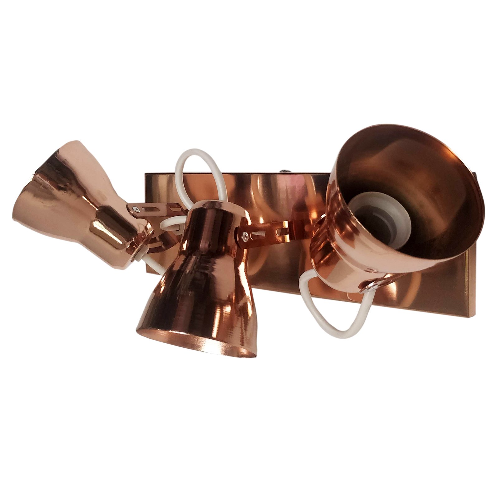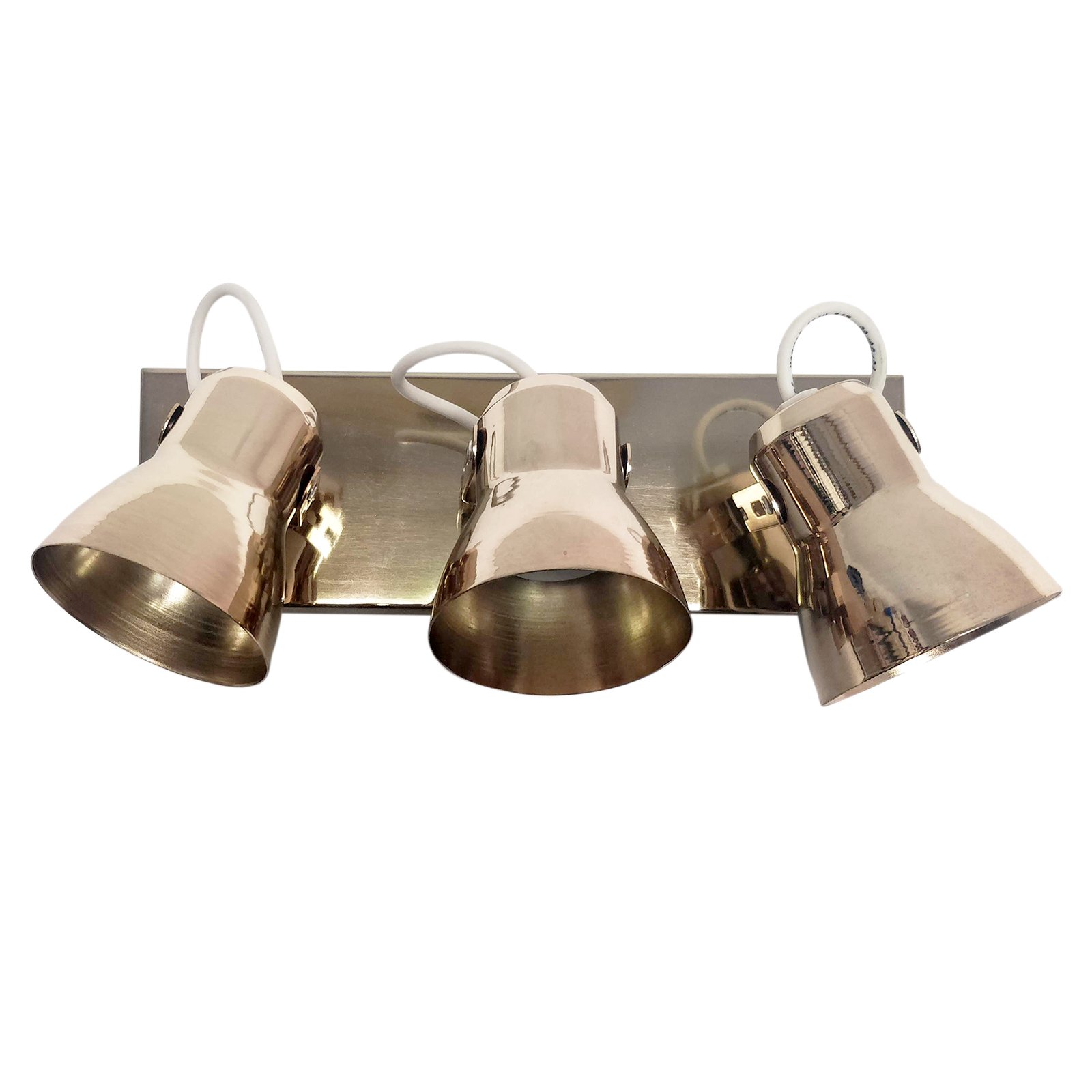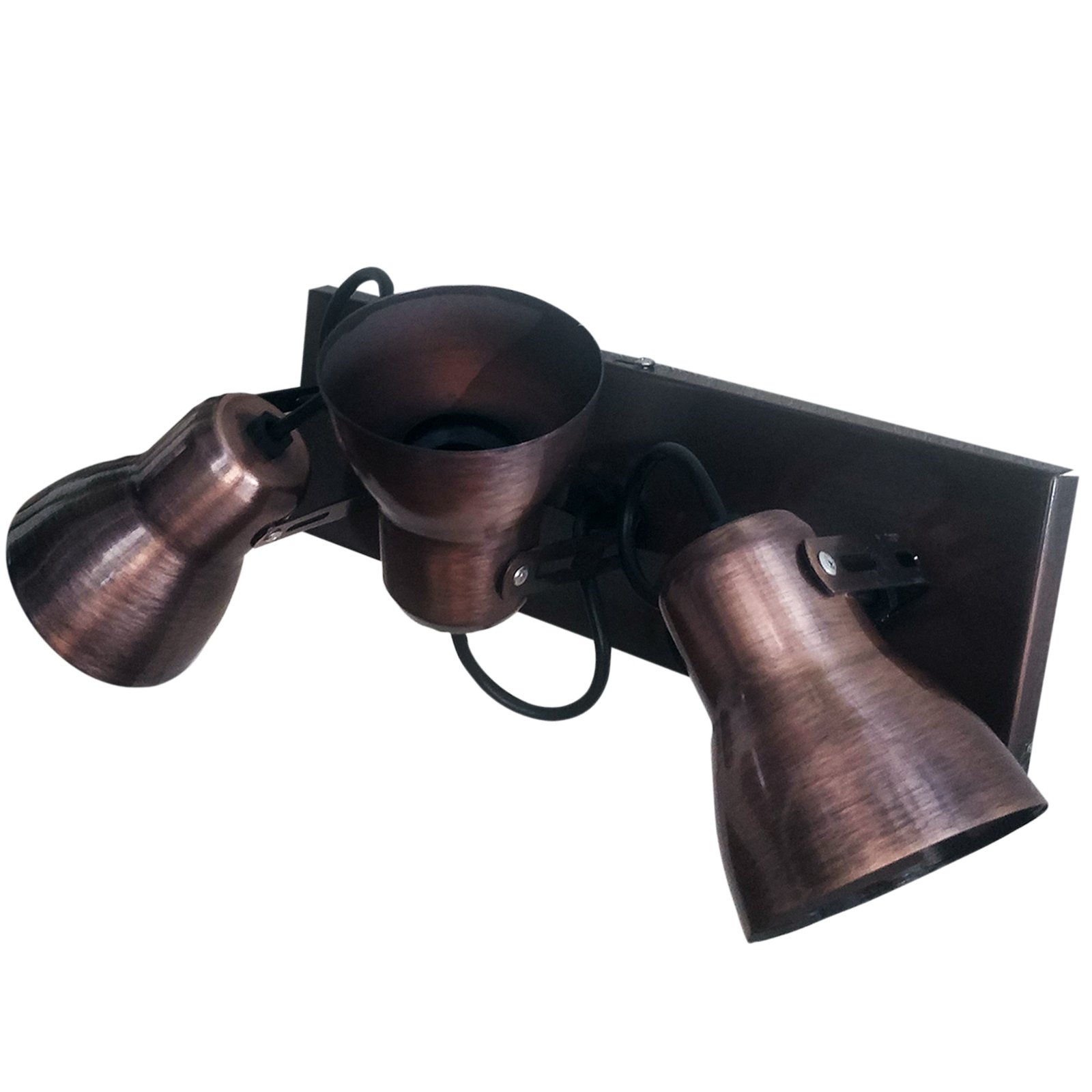 Aplique Spot Económico de Chapa Base Rectangular Metalizado 3 Luces – Apto Led (E27) – Cromado, Dorado, Cobre Brillante, Cobre Viejo.