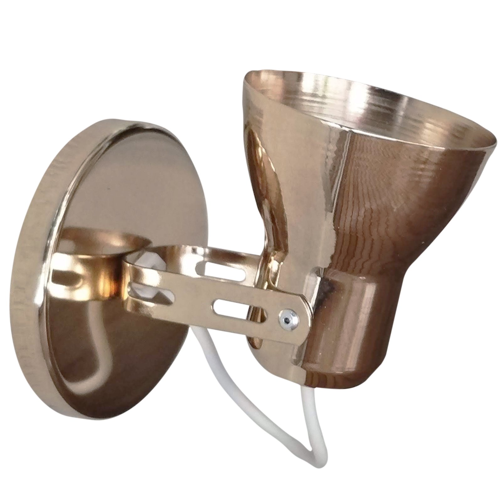 Aplique Spot Económico de Chapa Base Redonda 1 Luz – Apto Led (E27) – Cromado, Dorado, Cobre Brillante, Cobre Viejo.