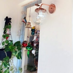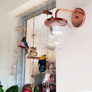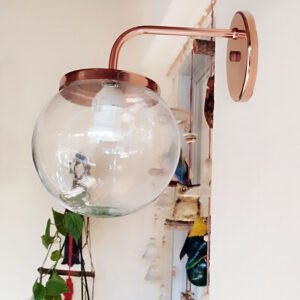 Aplique Spot Recto  de Pared Base Redonda Globo 8×15 Transparente Metalizado Moderno Vintage – Apto Led (E27) – Cobre Brillante, Cobre Viejo, Dorado, Cromado.