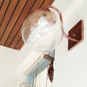 Aplique Spot Signo de Pared Base Cuadrada Globo 8×15 Transparente Metalizado Moderno Vintage – Apto Led (E27) – Cobre Brillante, Cobre Viejo, Dorado, Cromado.