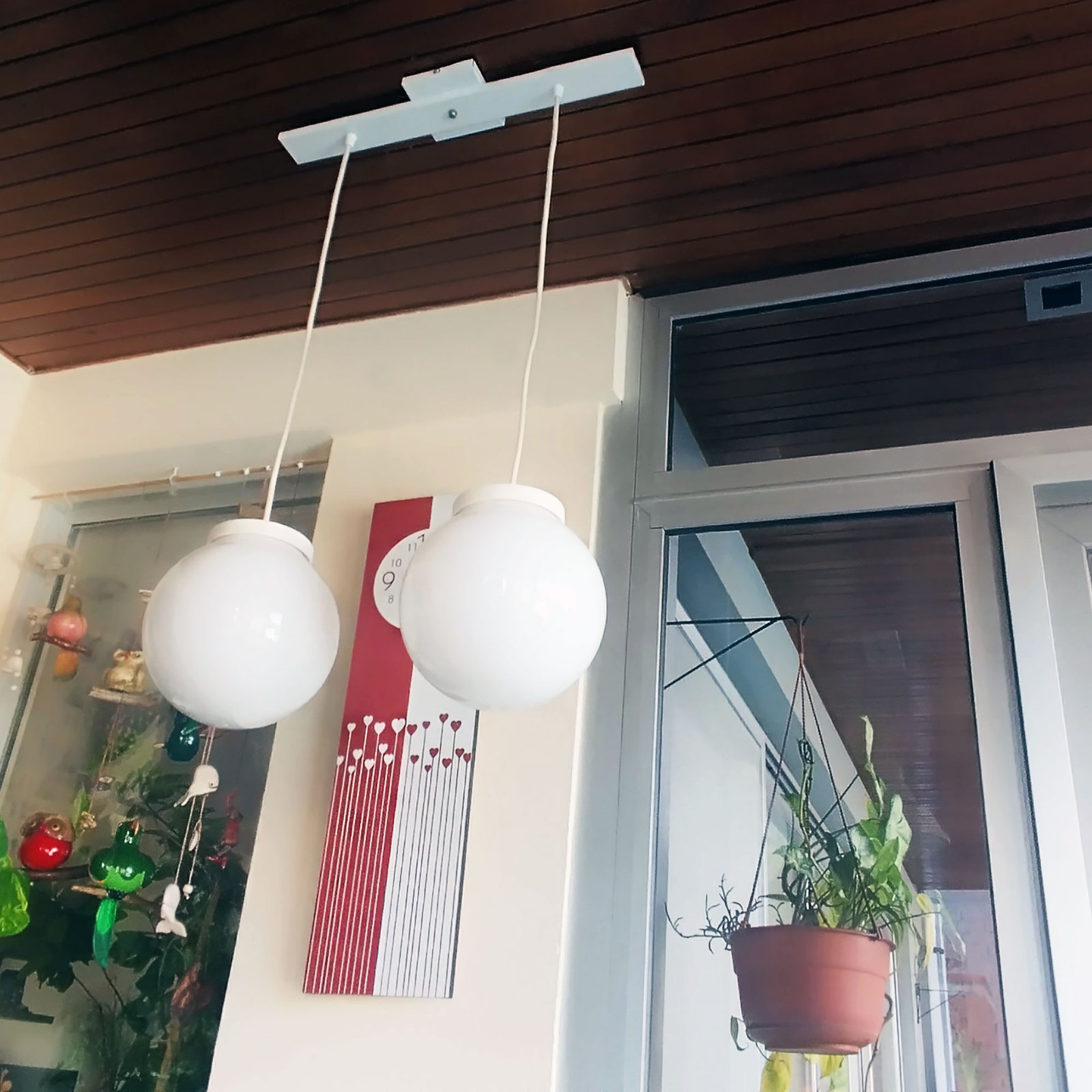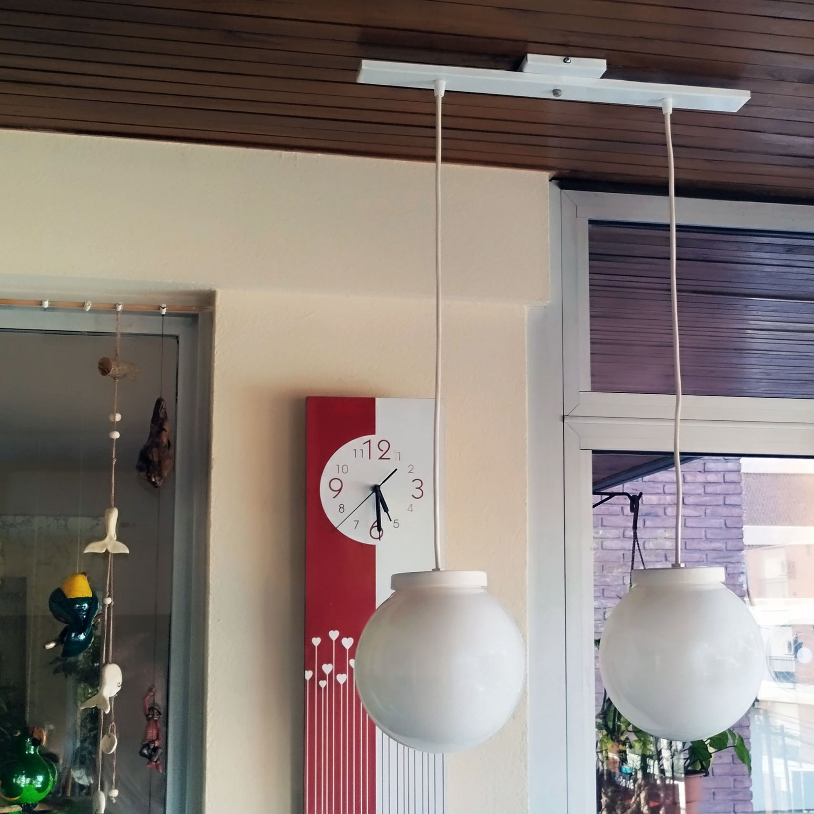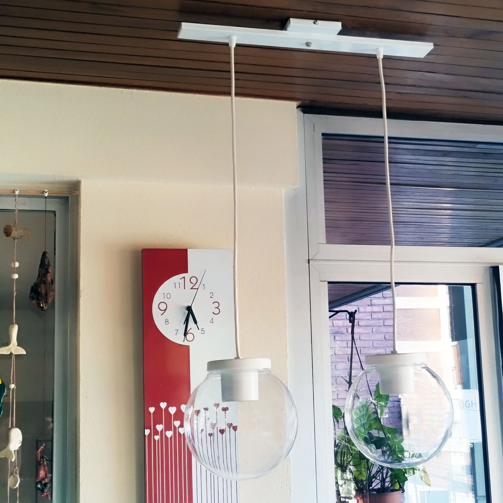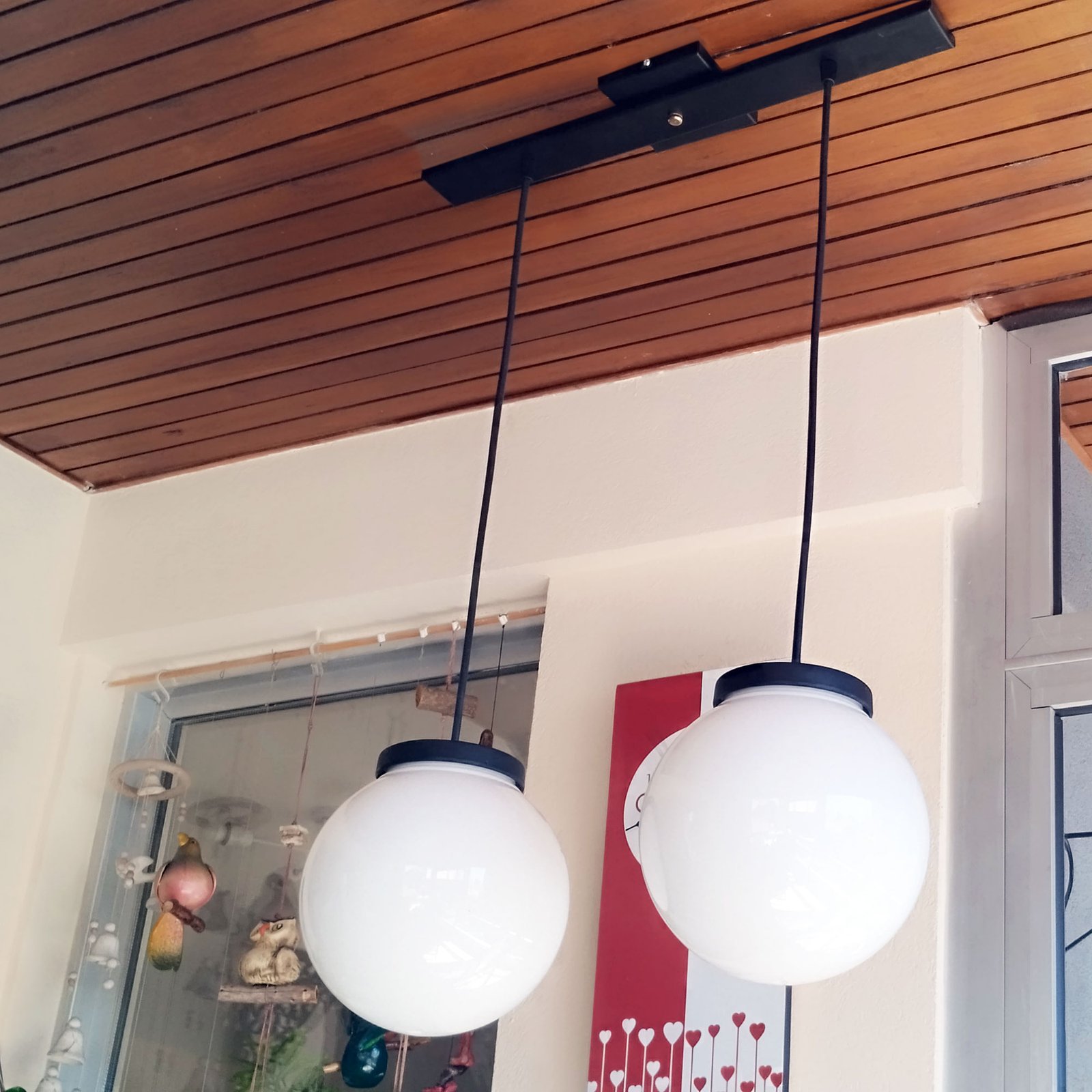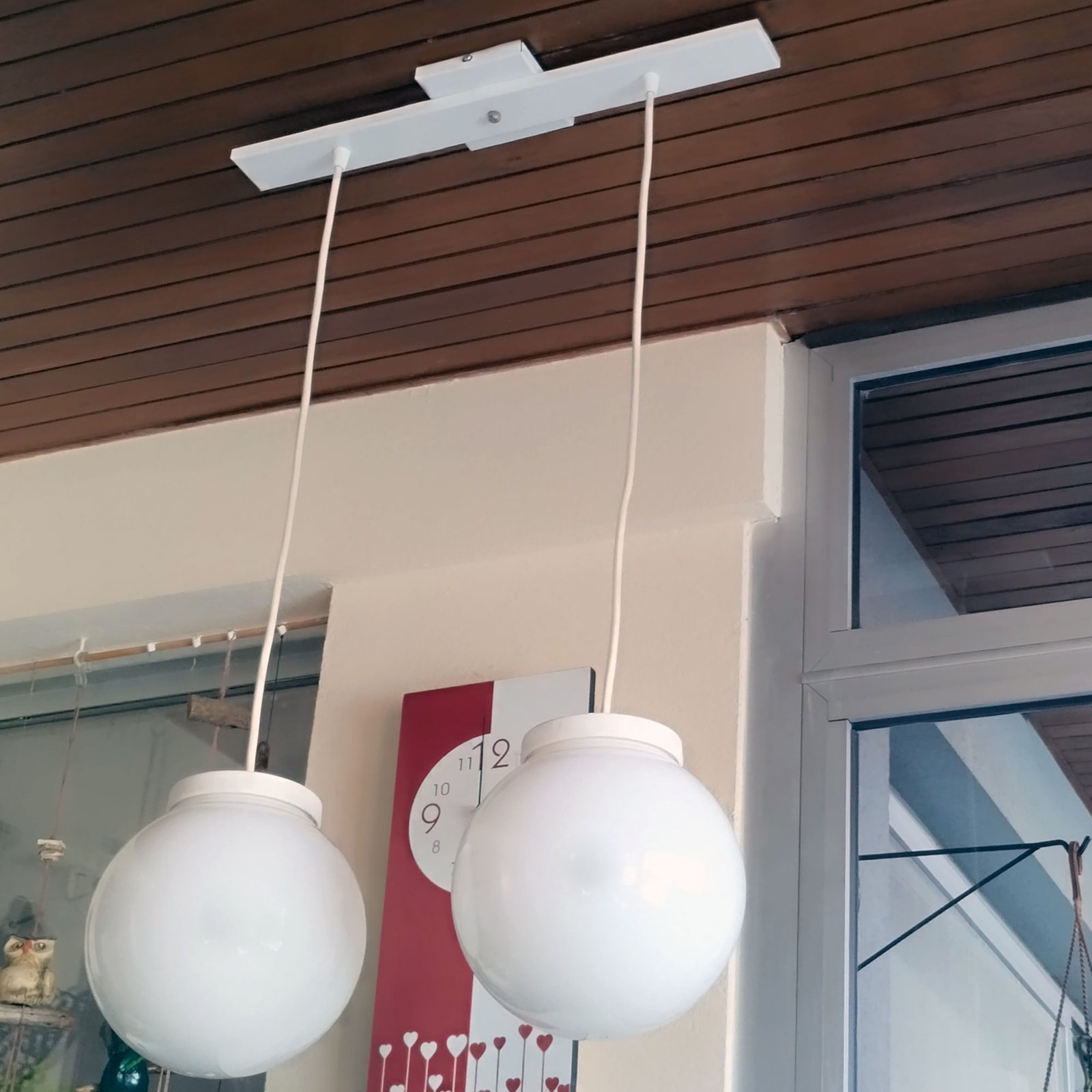 Colgante Globo 2 Luces PVC Antivandalismo Opal ó Transparente 20 Cm Base Rectangular – Apto Led (E27) – Colores: Blanco, Negro.