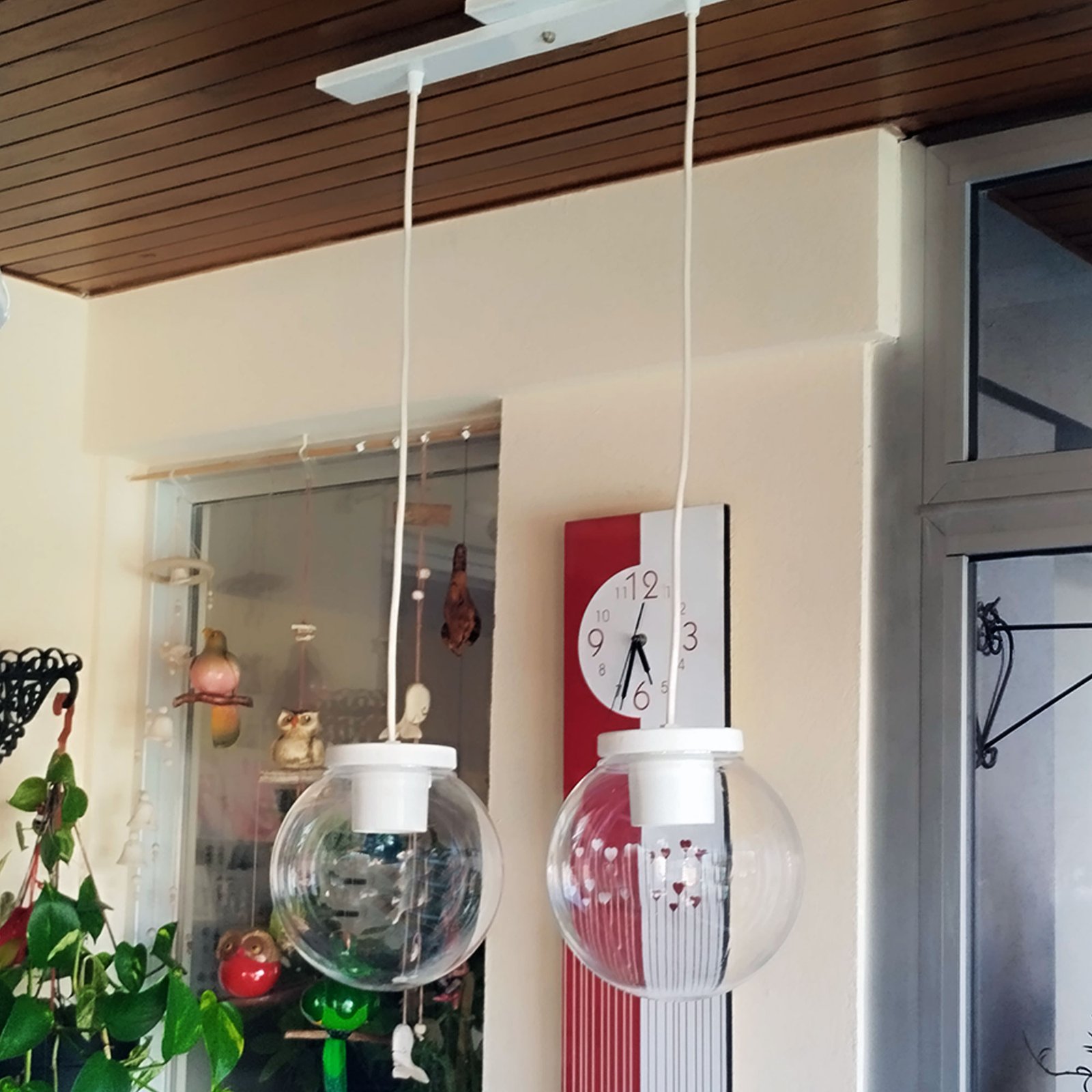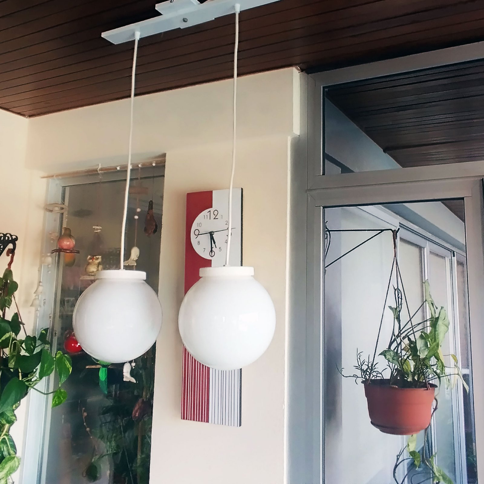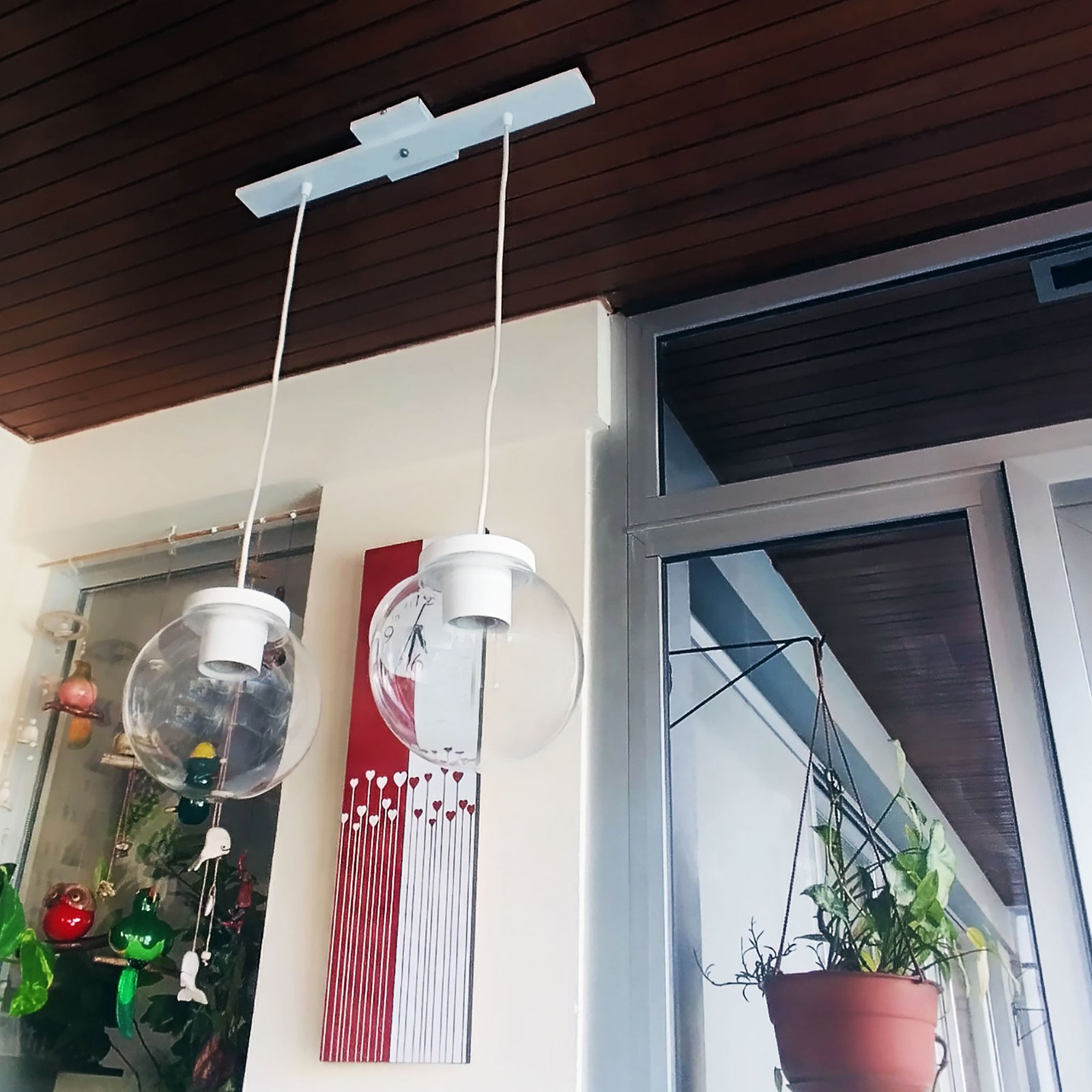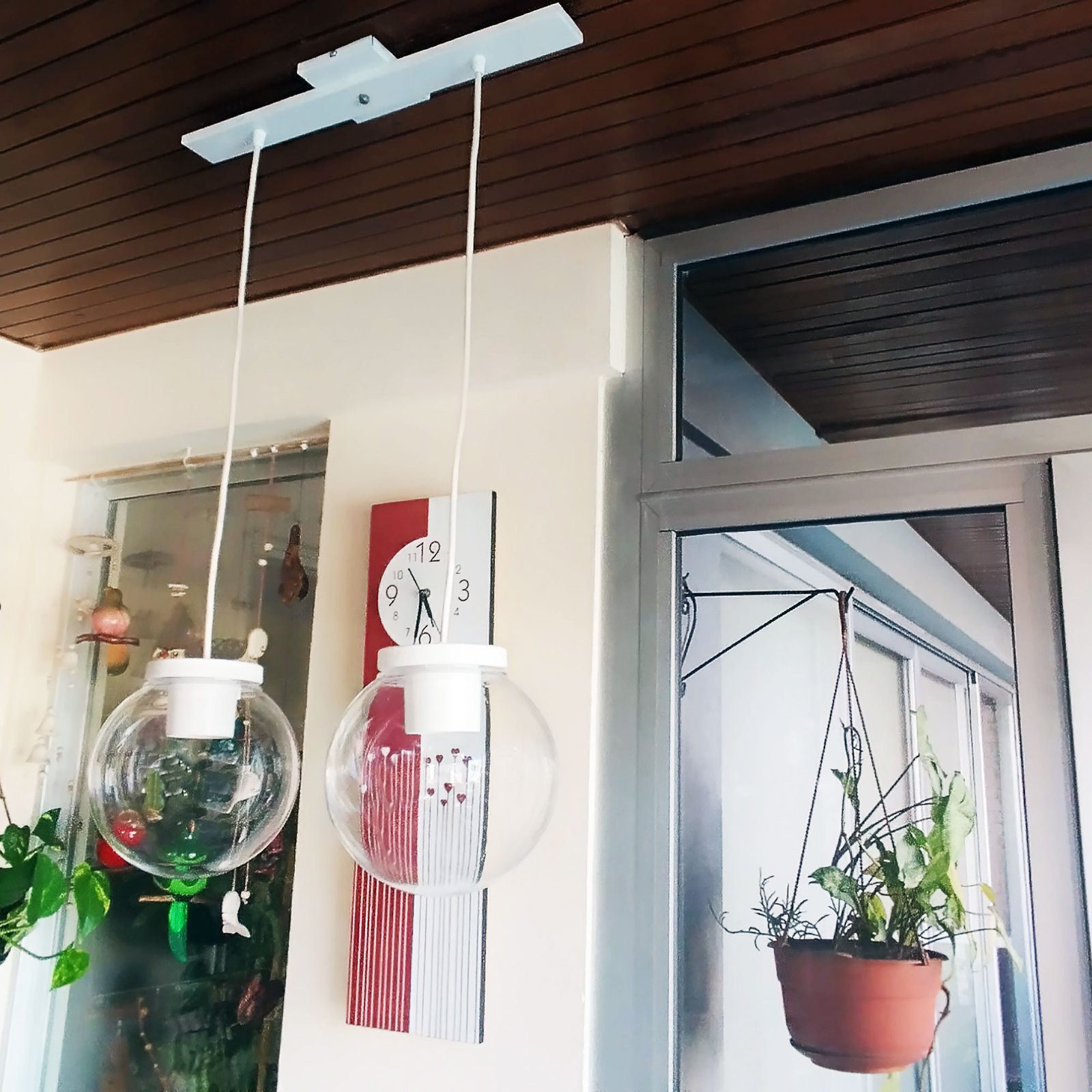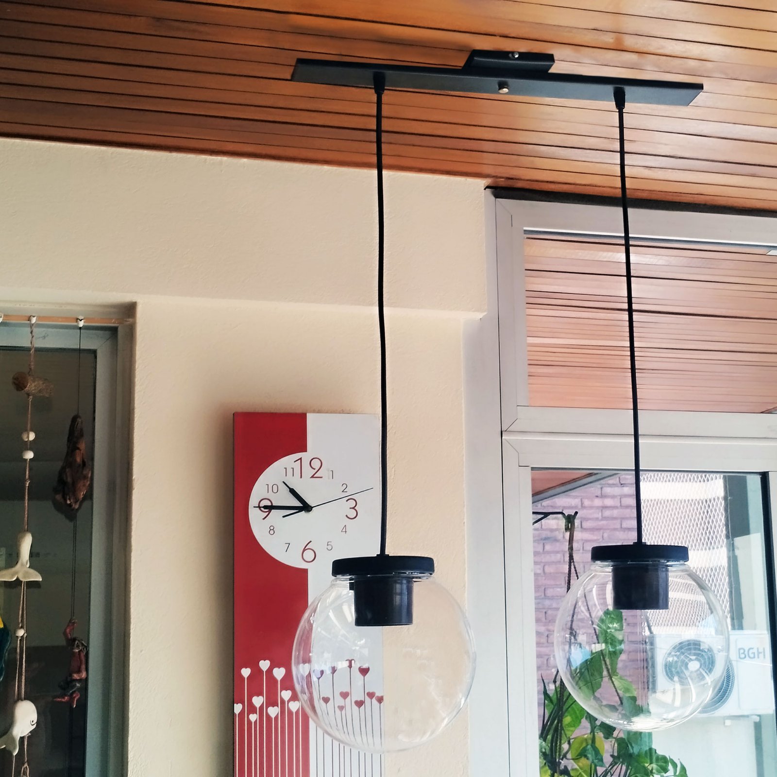 Colgante Globo 2 Luces PVC Antivandalismo Opal ó Transparente 20 Cm Base Rectangular – Apto Led (E27) – Colores: Blanco, Negro.