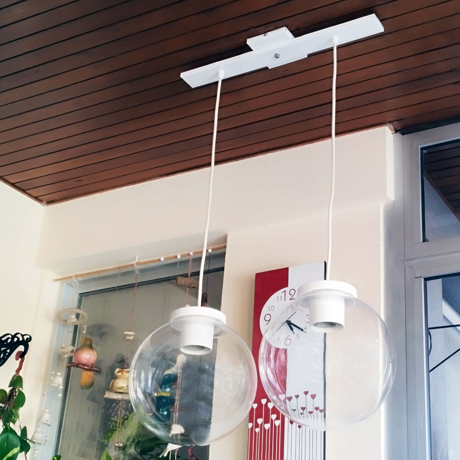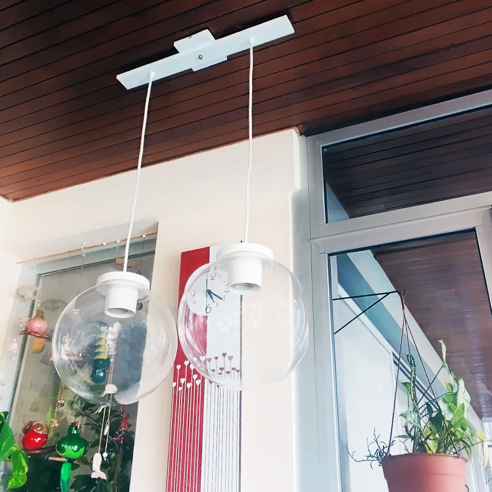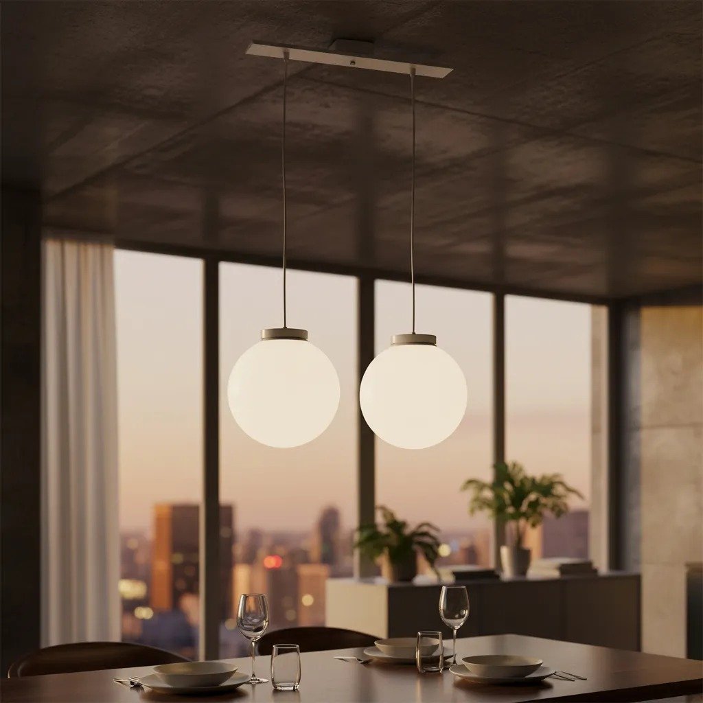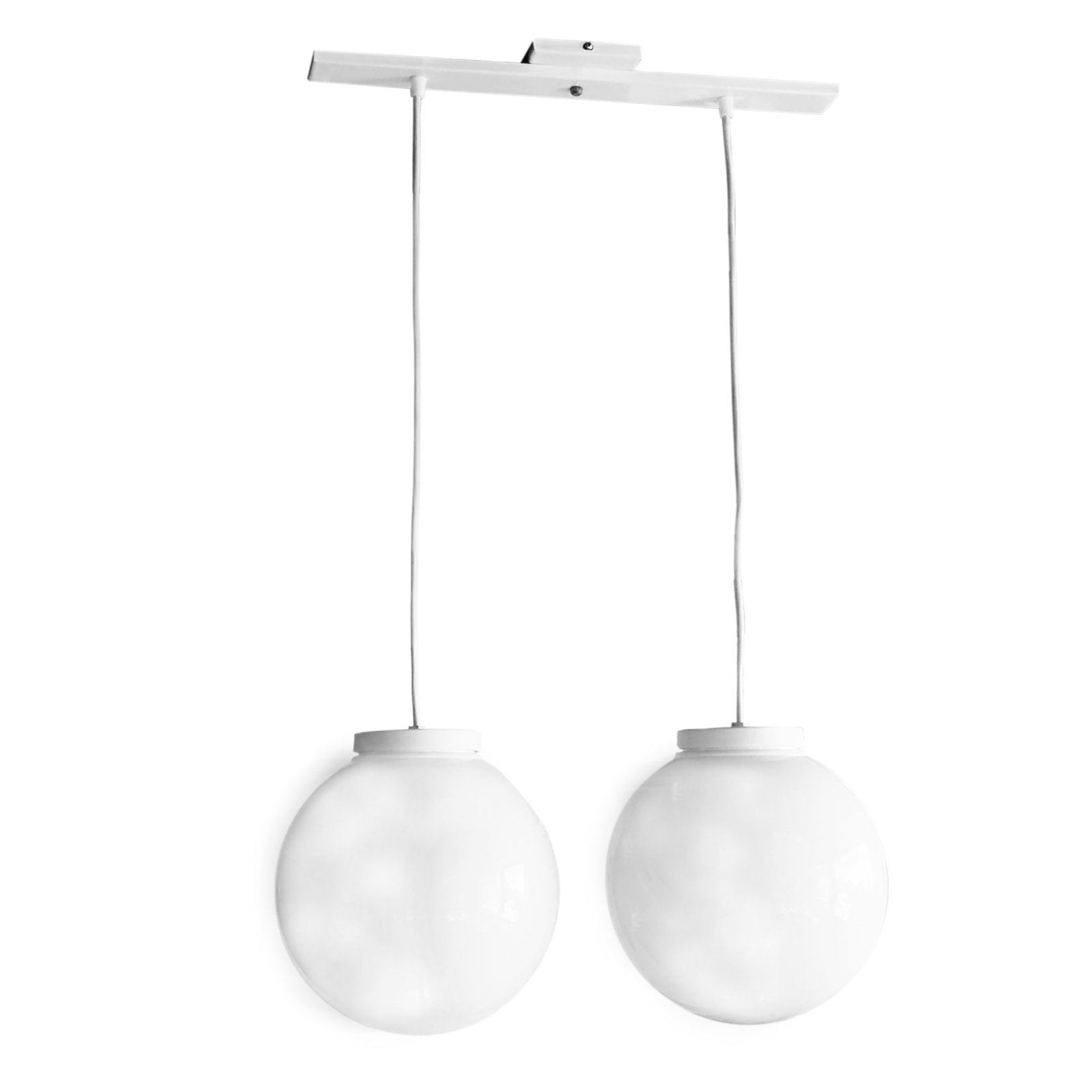 Colgante Globo 2 Luces PVC Antivandalismo Opal ó Transparente 25 Cm Base Rectangular – Apto Led (E27) – Colores: Blanco, Negro.