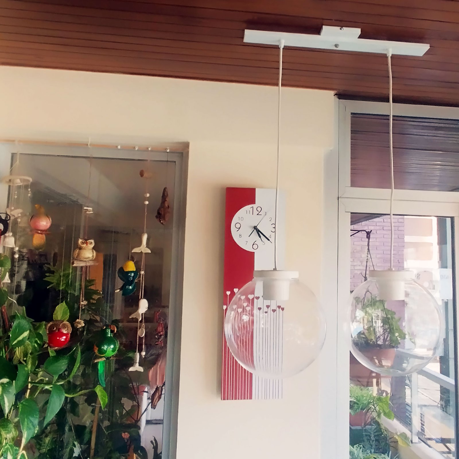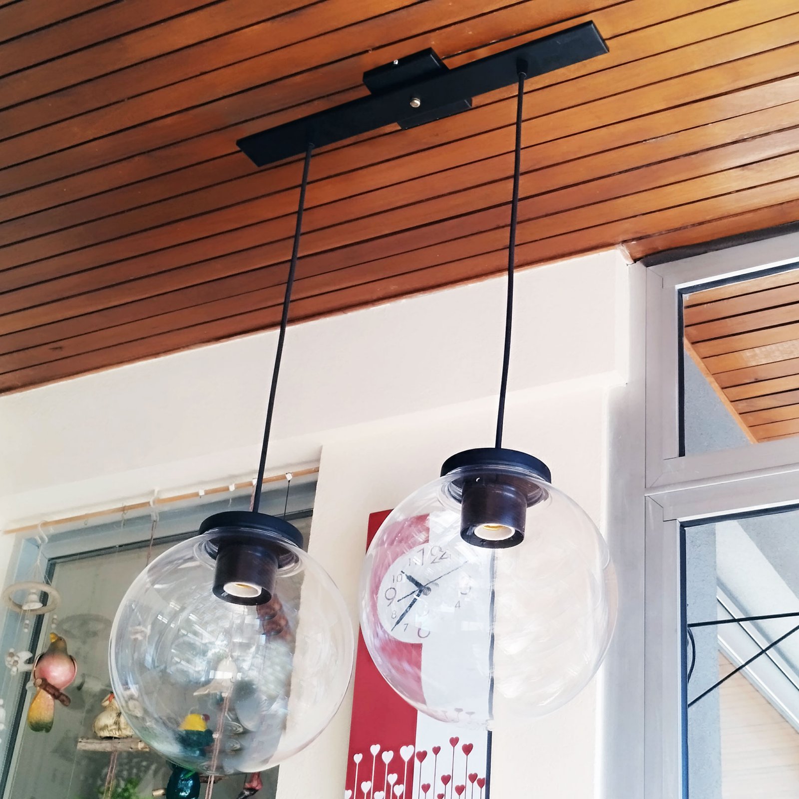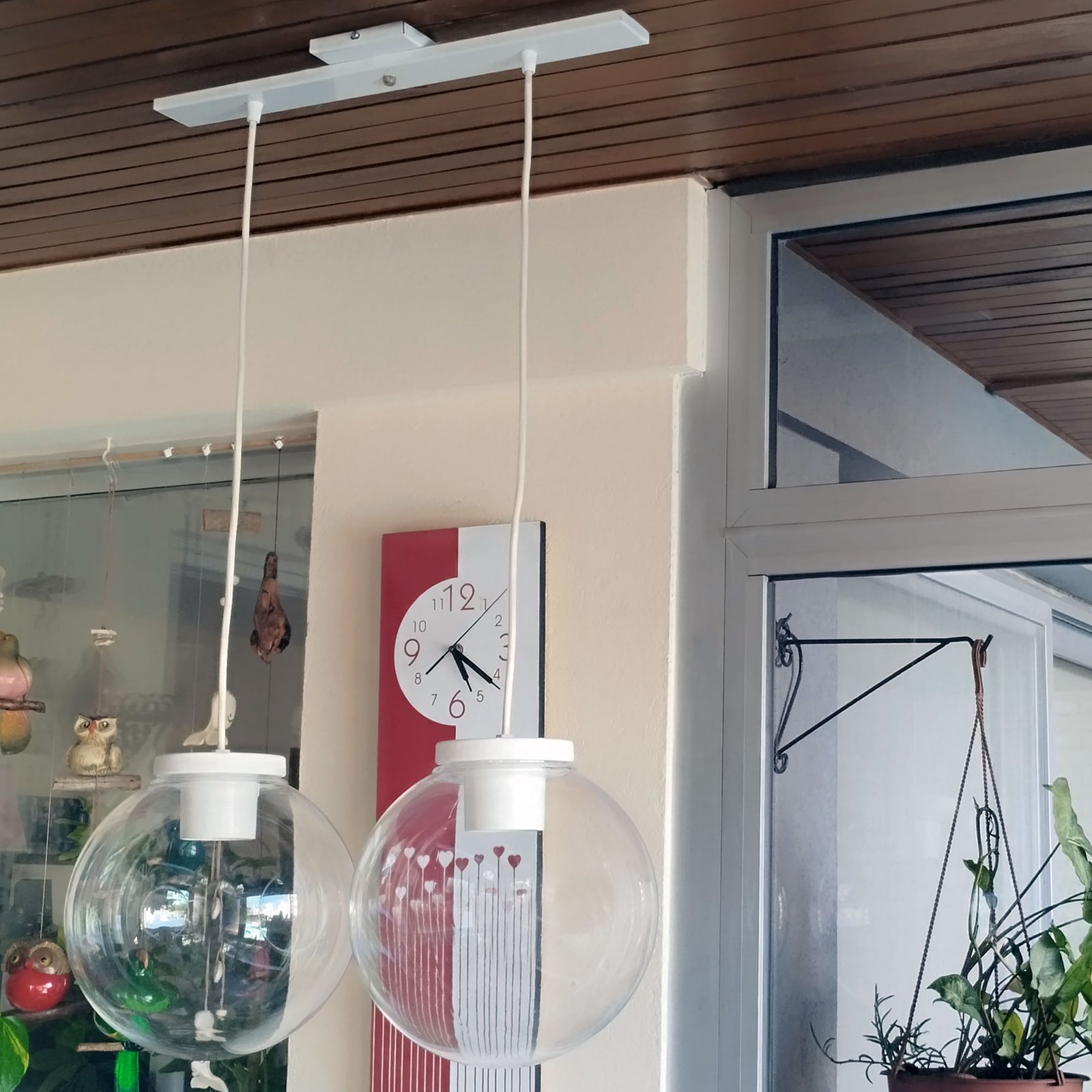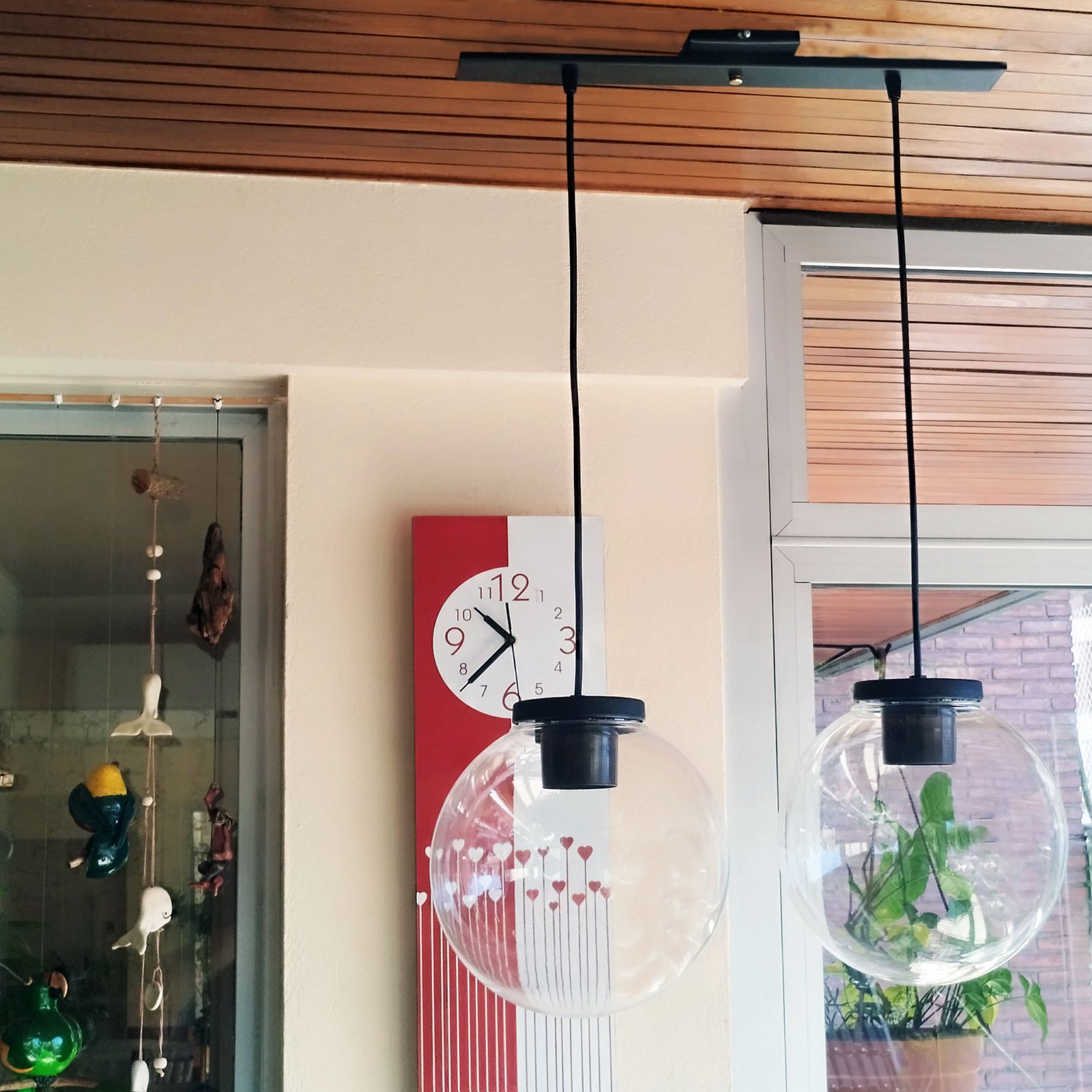 Colgante Globo 2 Luces PVC Antivandalismo Opal ó Transparente 25 Cm Base Rectangular – Apto Led (E27) – Colores: Blanco, Negro.