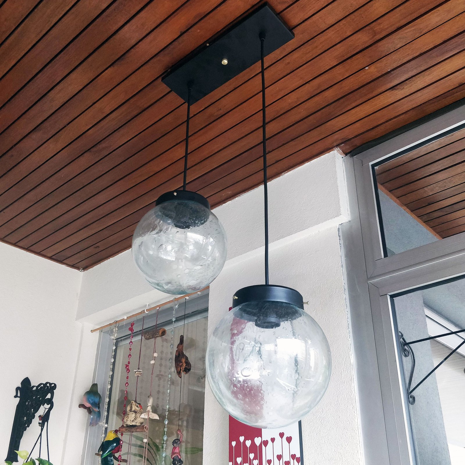 Colgante Globo de Vidrio Burbuja 10×18 2 Luces Esfera Moderno – Apto Led (E27) – Colores: Blanco, Negro.