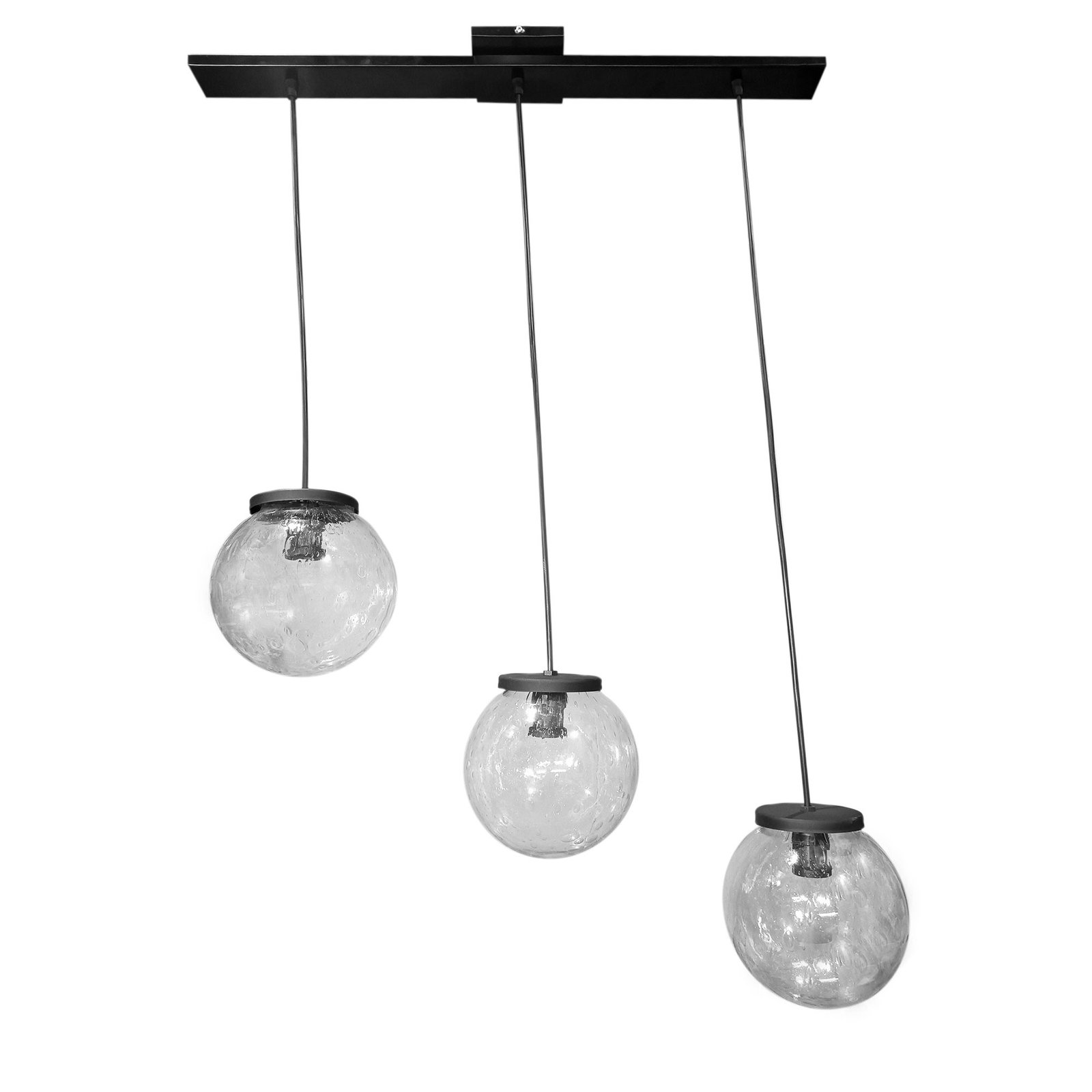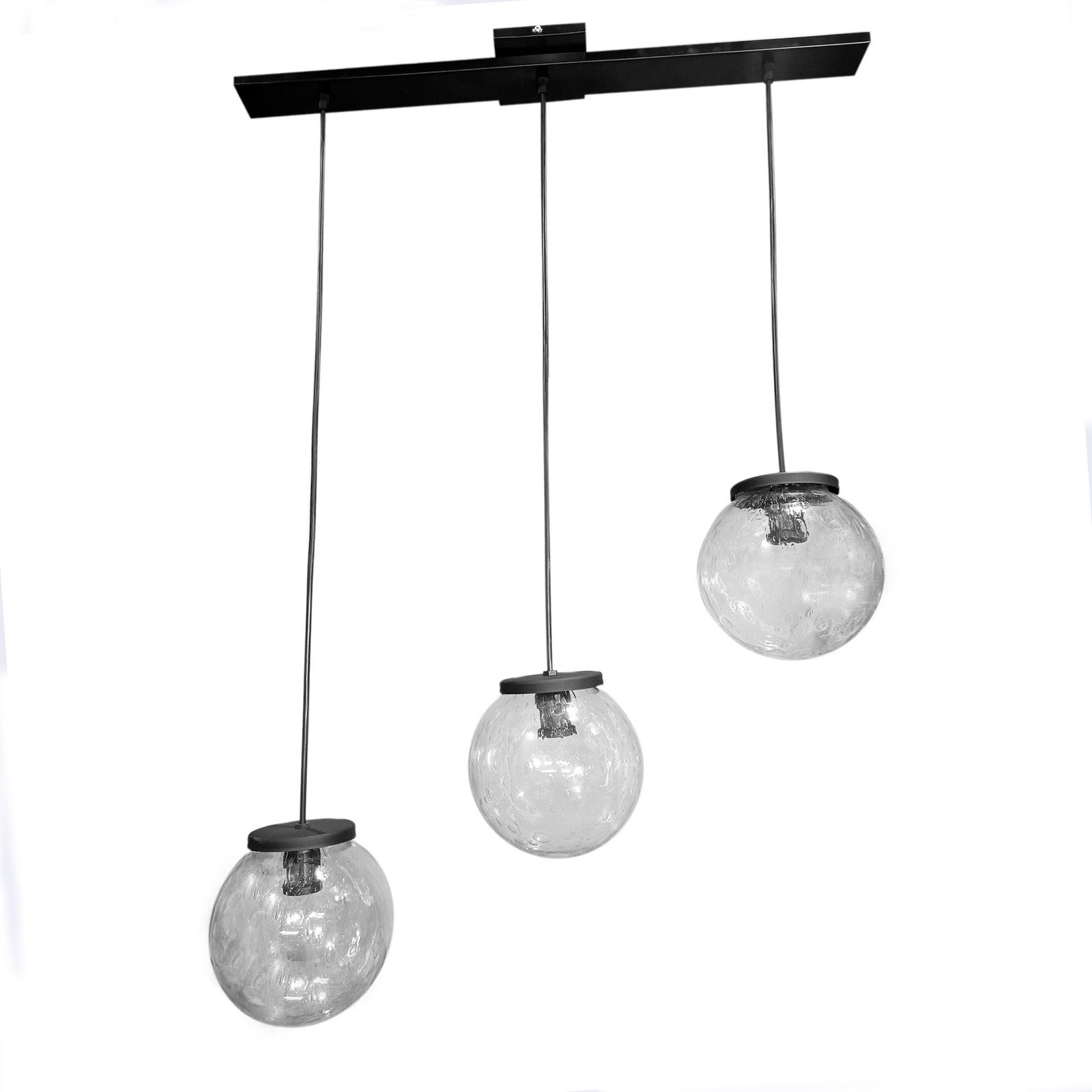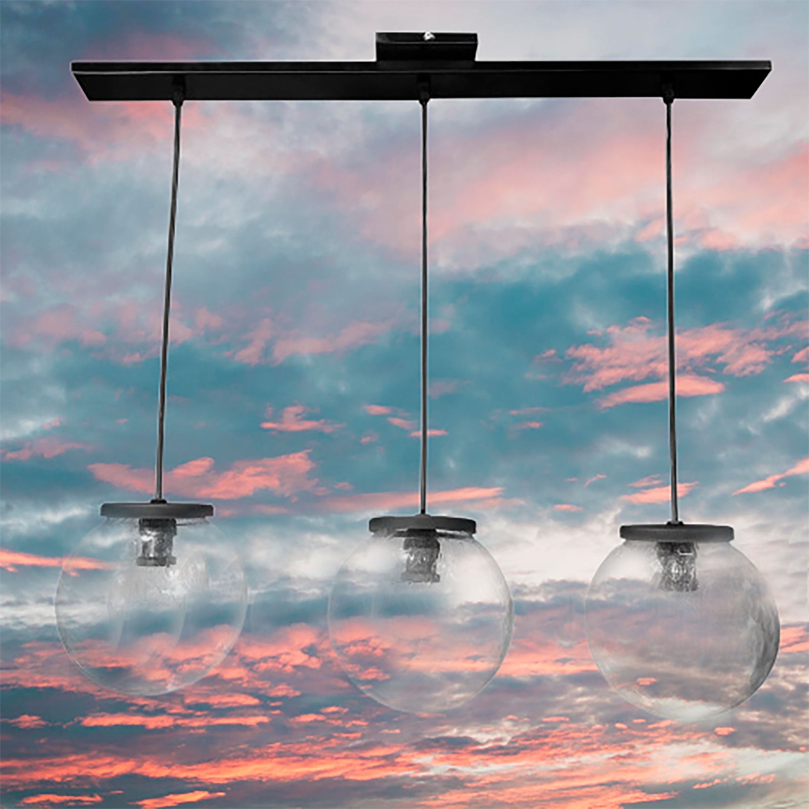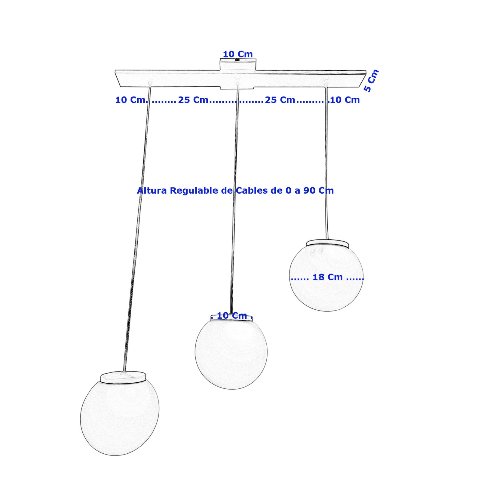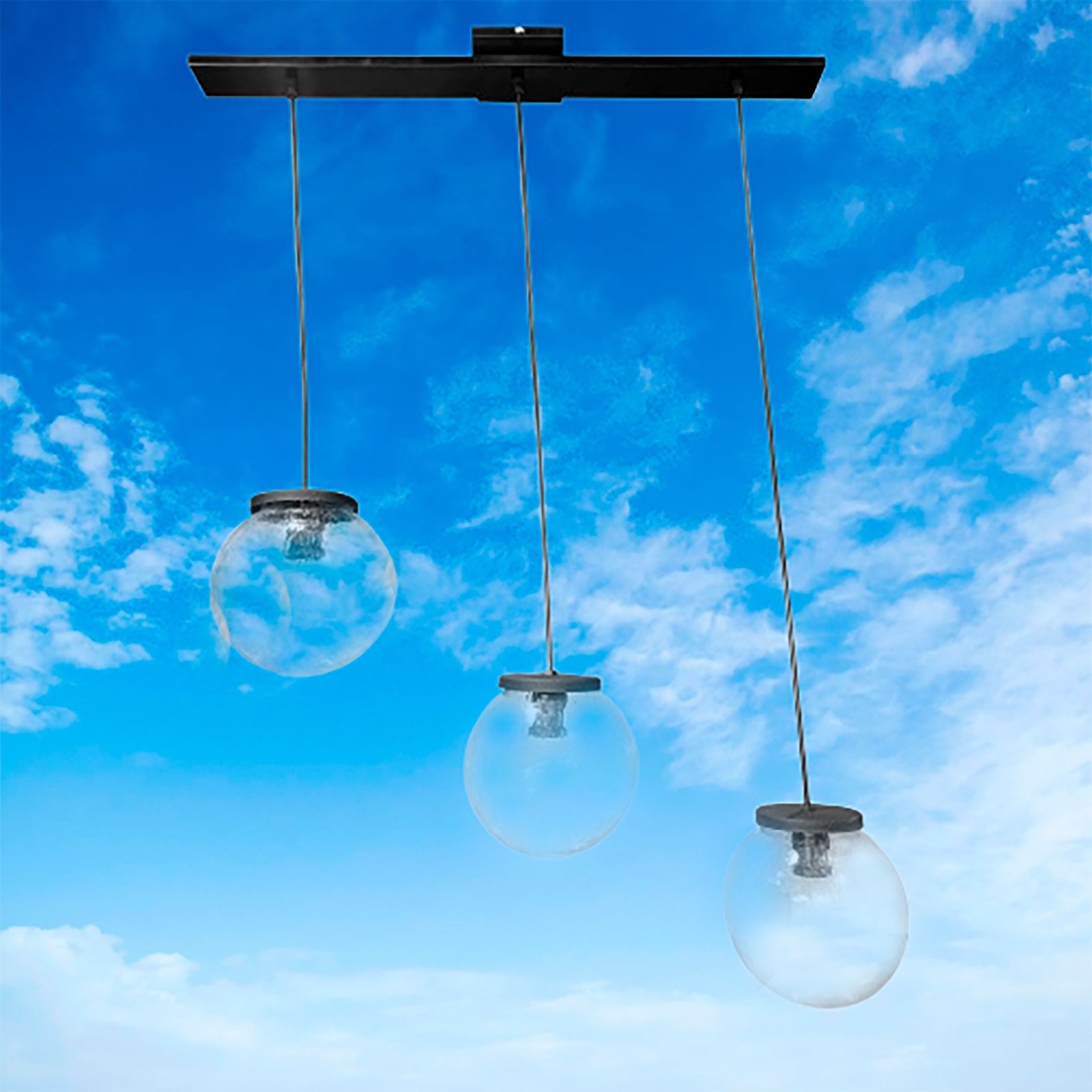 Colgante Globo Esfera de Vidrio Burbuja ó Transparente Liso 10×18 Cm Soporte Rectangular – Apto Led E-27 – 3 Luces – Negro, Blanco.
