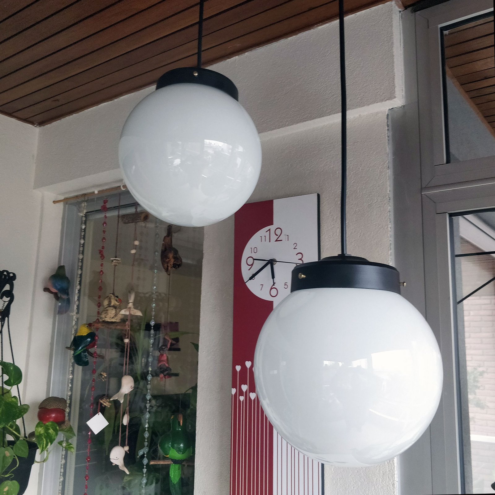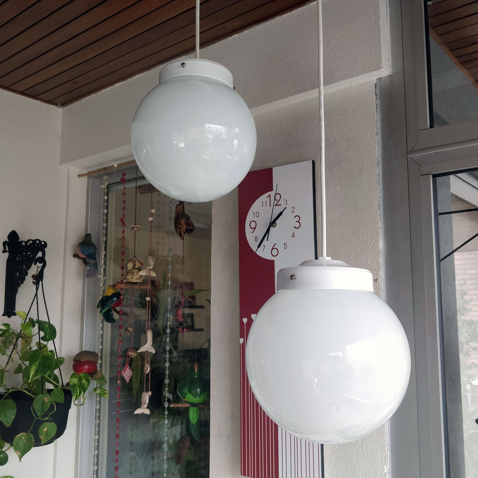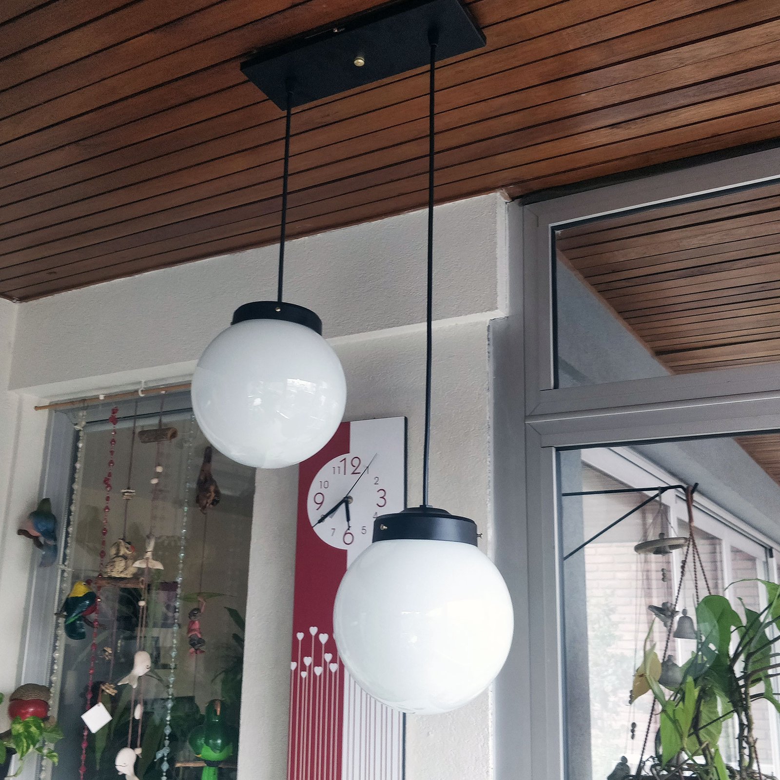 Colgante Globo de Vidrio Opal Satinado ú Opal Brillante 10×18 2 Luces Esfera Moderno – Apto Led (E27) – Colores: Blanco y Negro.
