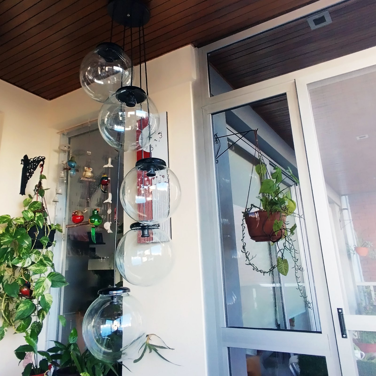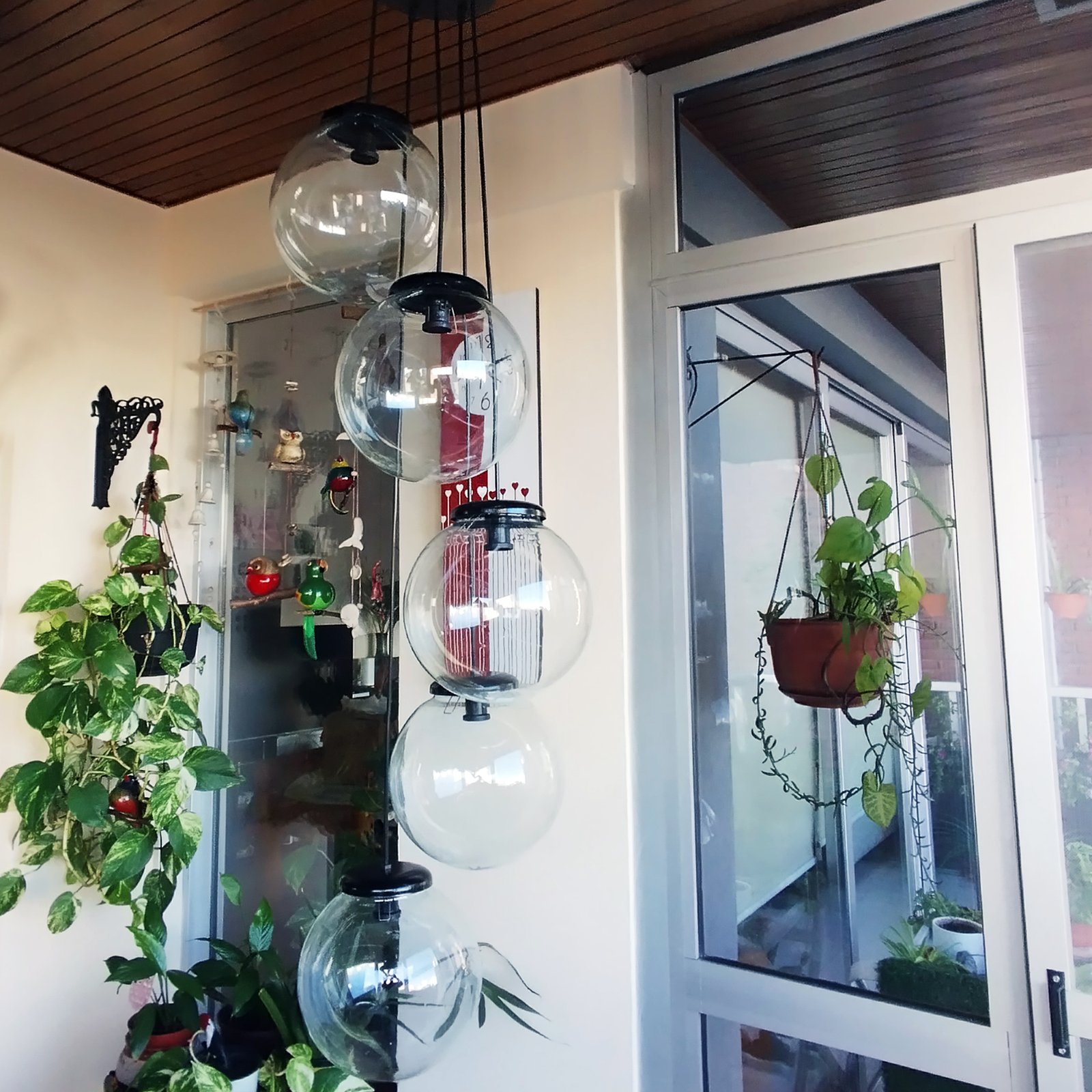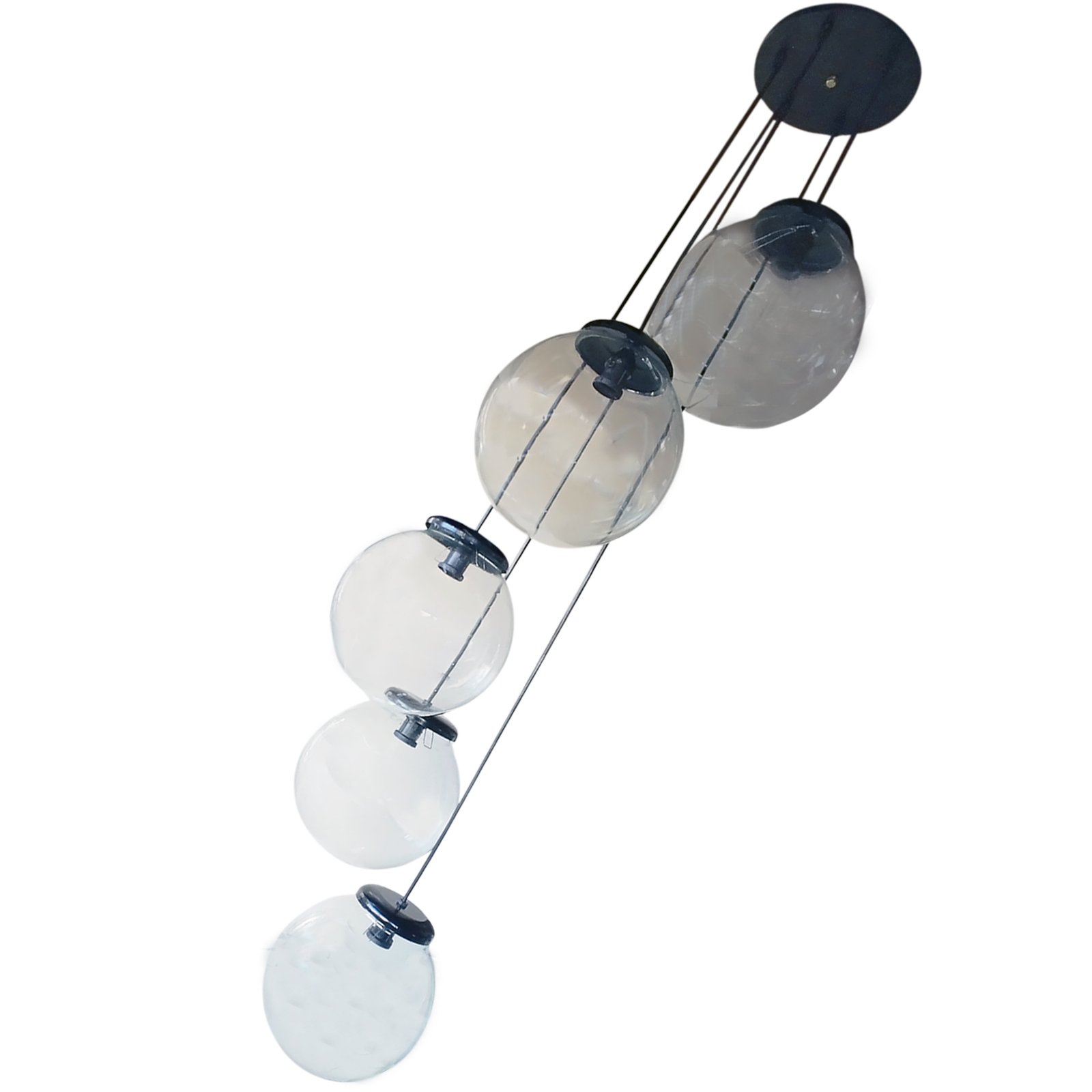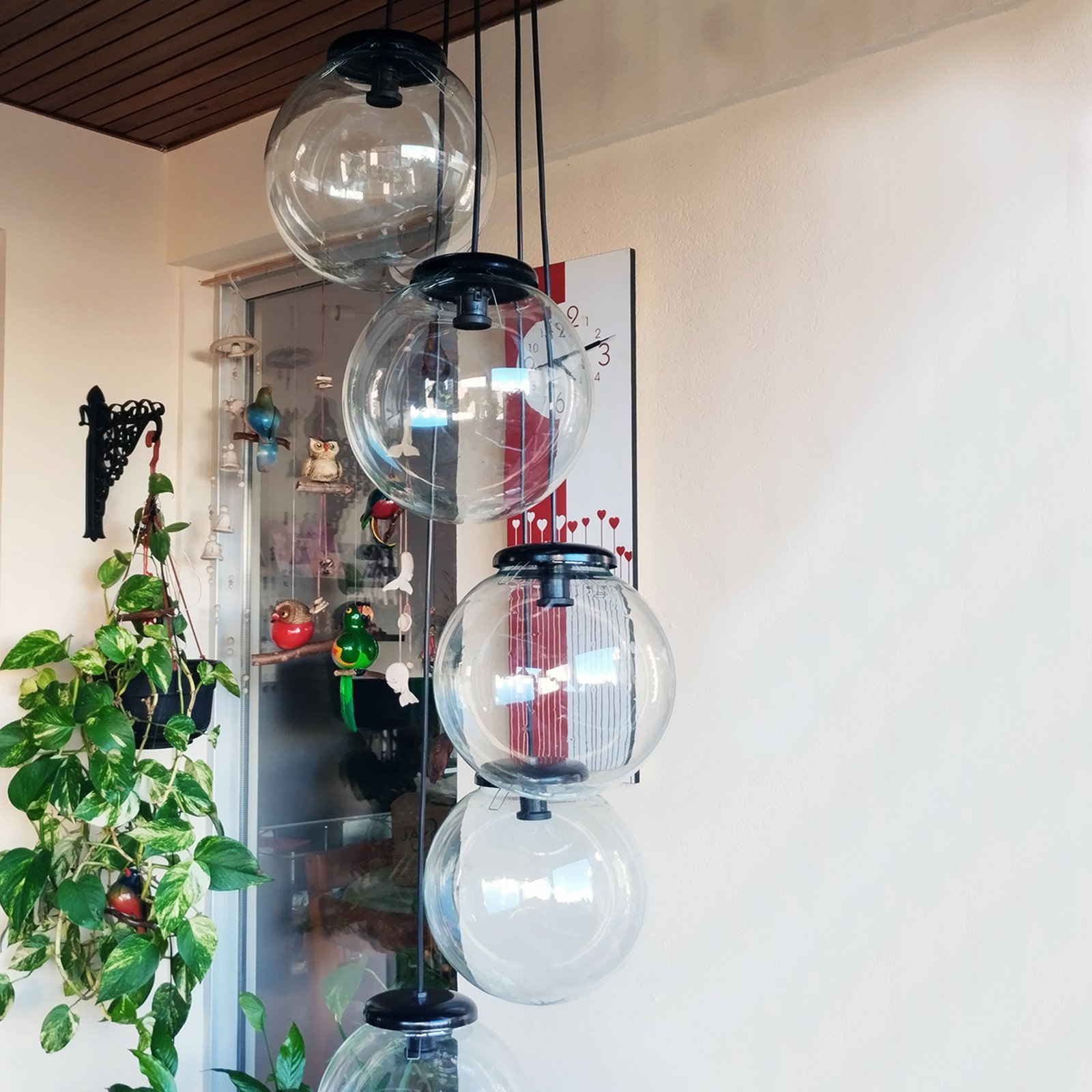 Colgante Globo de Vidrio Transparente 12×25 5 Luces Soporte Redondo Esfera Moderno – Apto Led (E27) – Colores: Blanco, Negro.