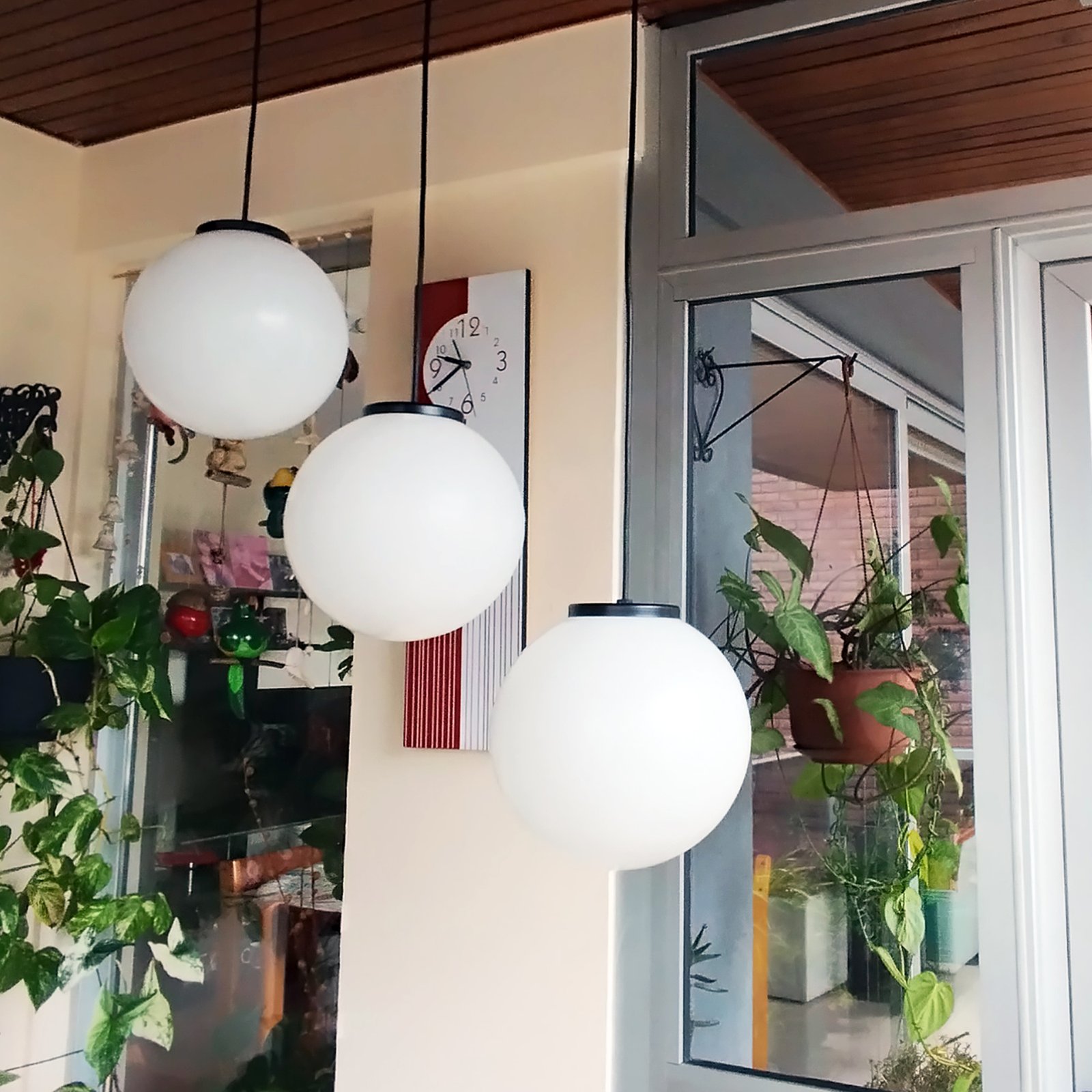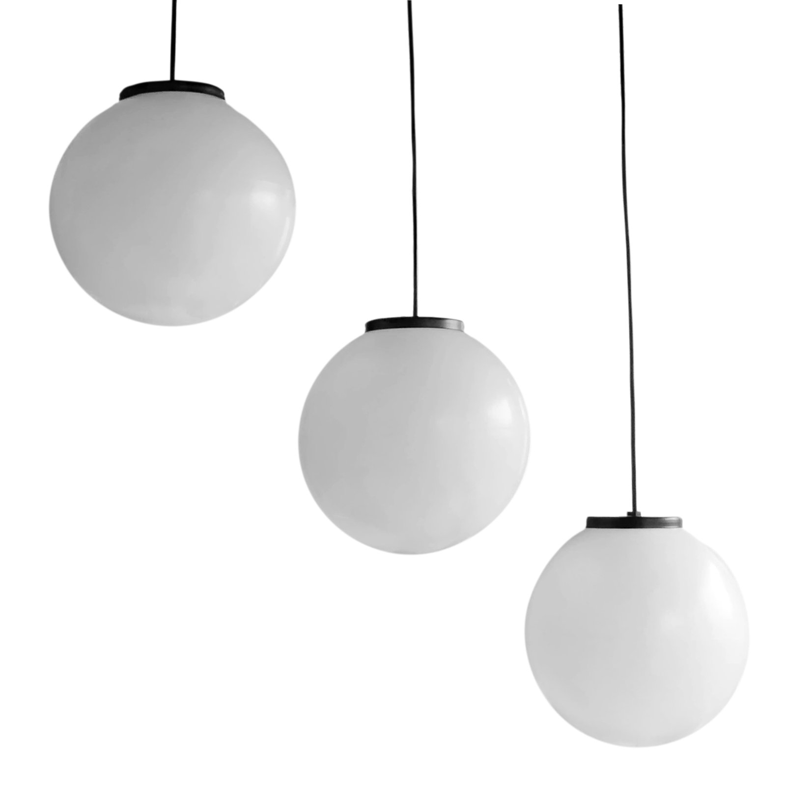 Colgante Globo 3 Luces PVC Antivandalismo 25 Cm Base Rectangular – Apto Led (E27) – Colores: Blanco, Negro.
