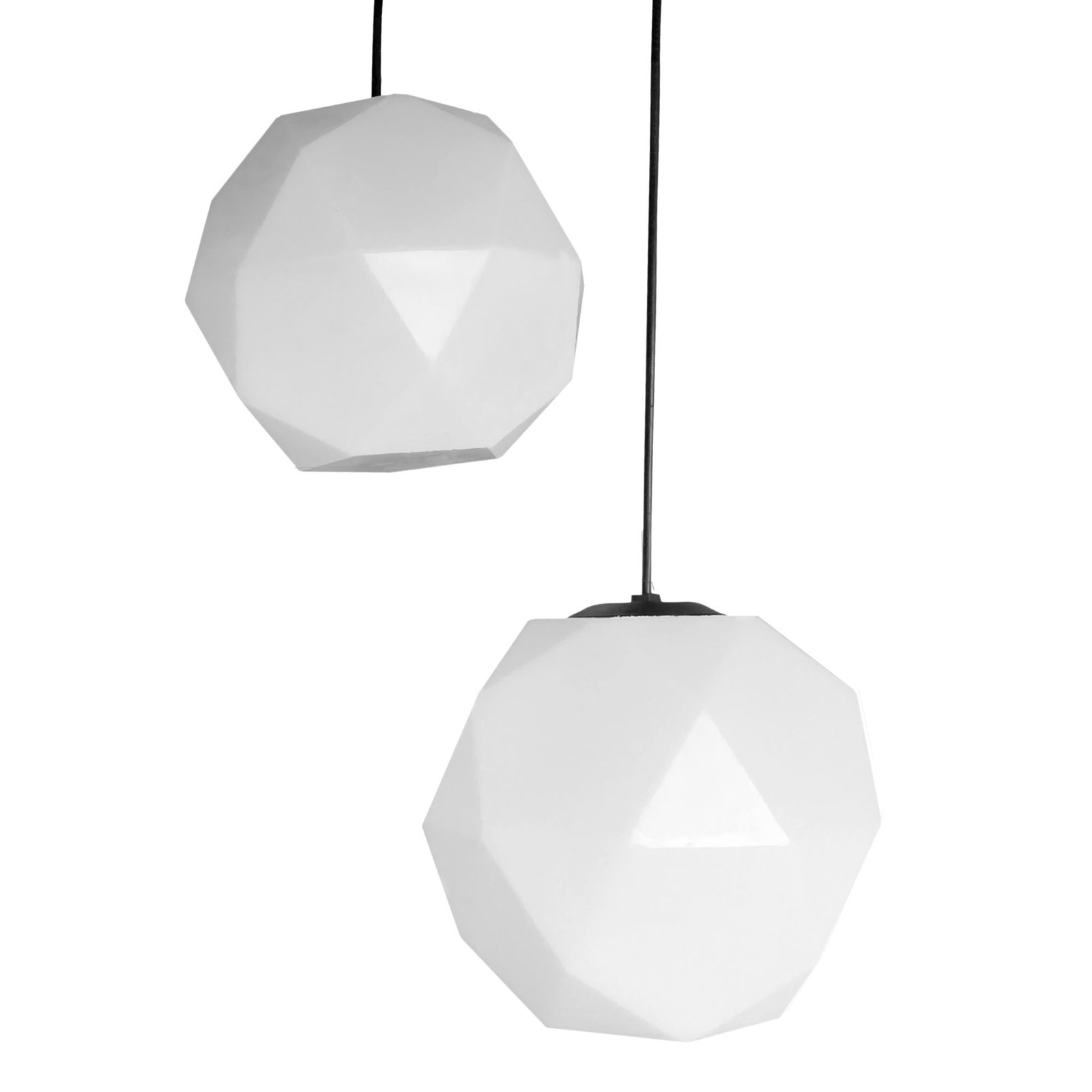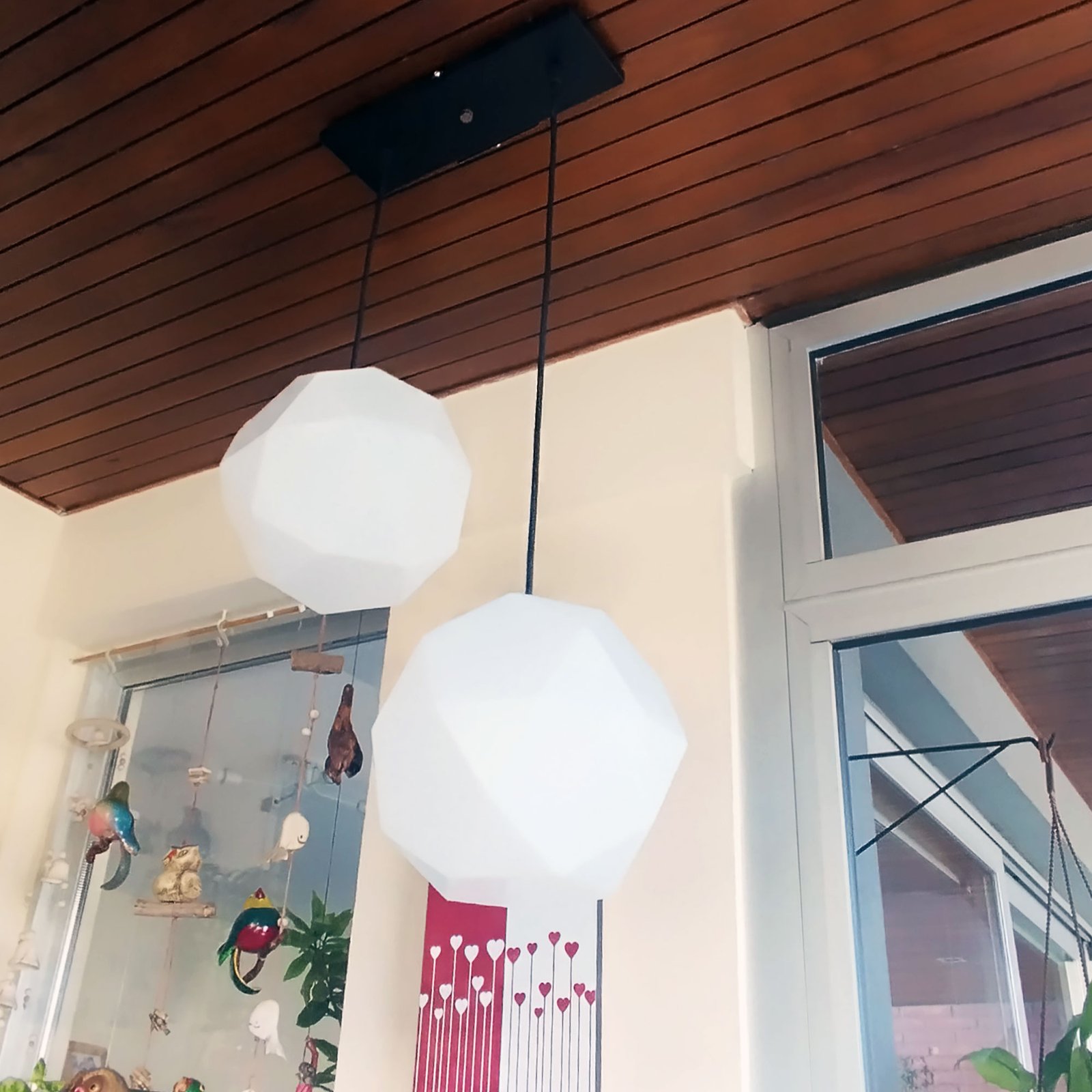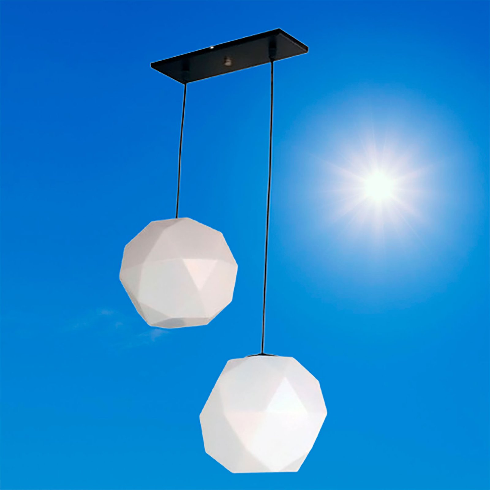 Colgante Prisma Esfera PVC Opal Antivandalismo 2 Luces – Apto Led (E27) – Colores: Blanco, Negro.