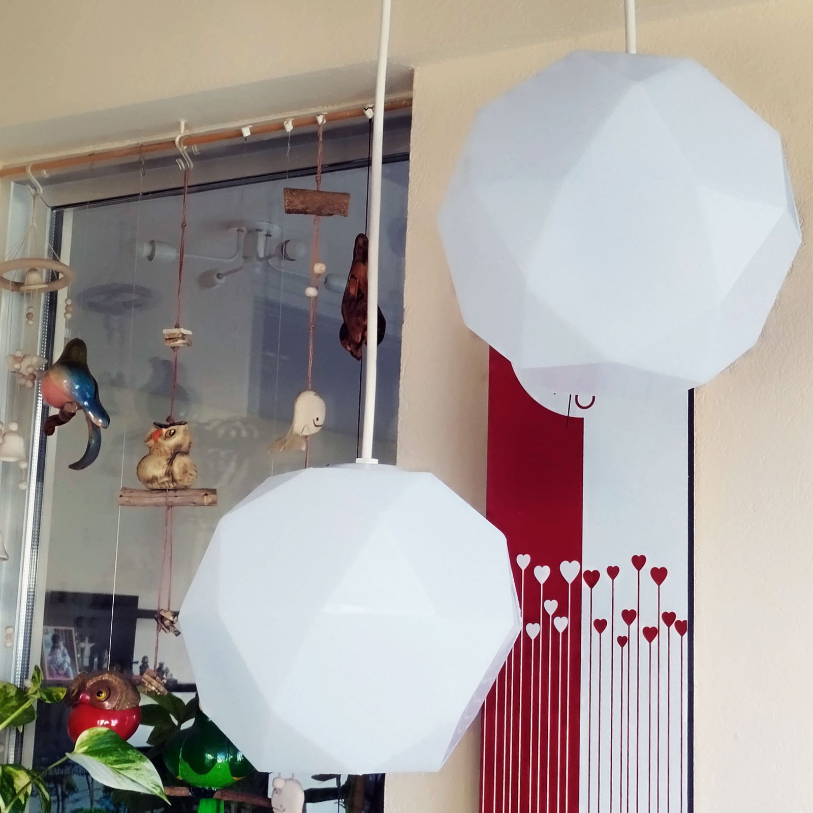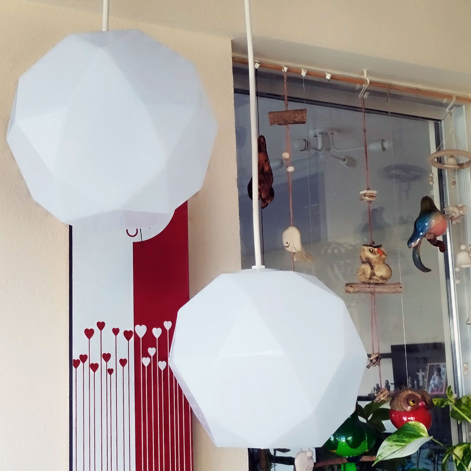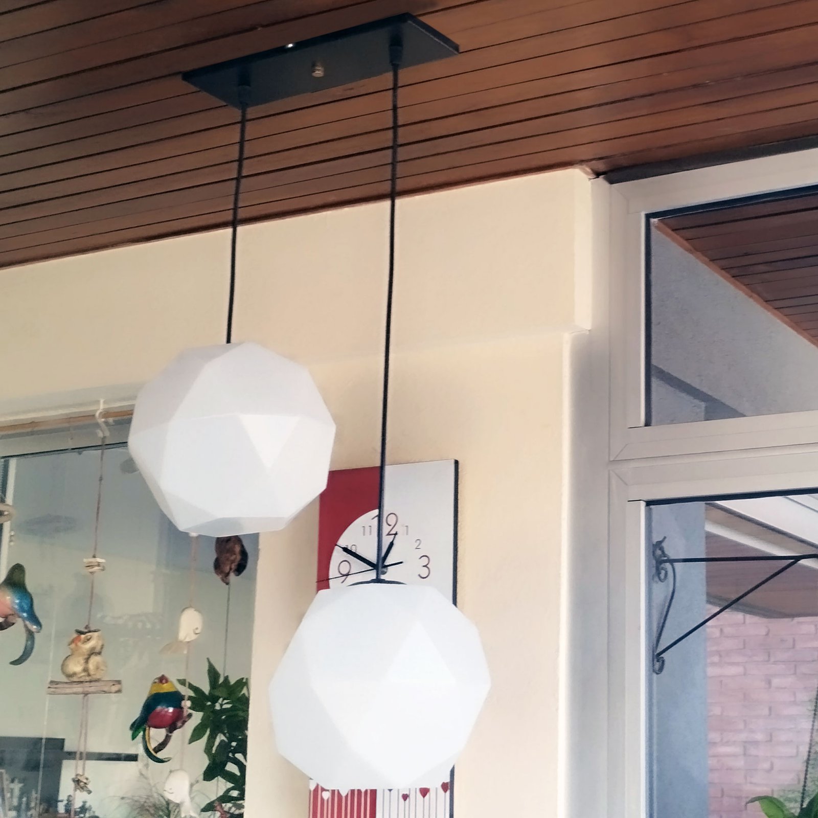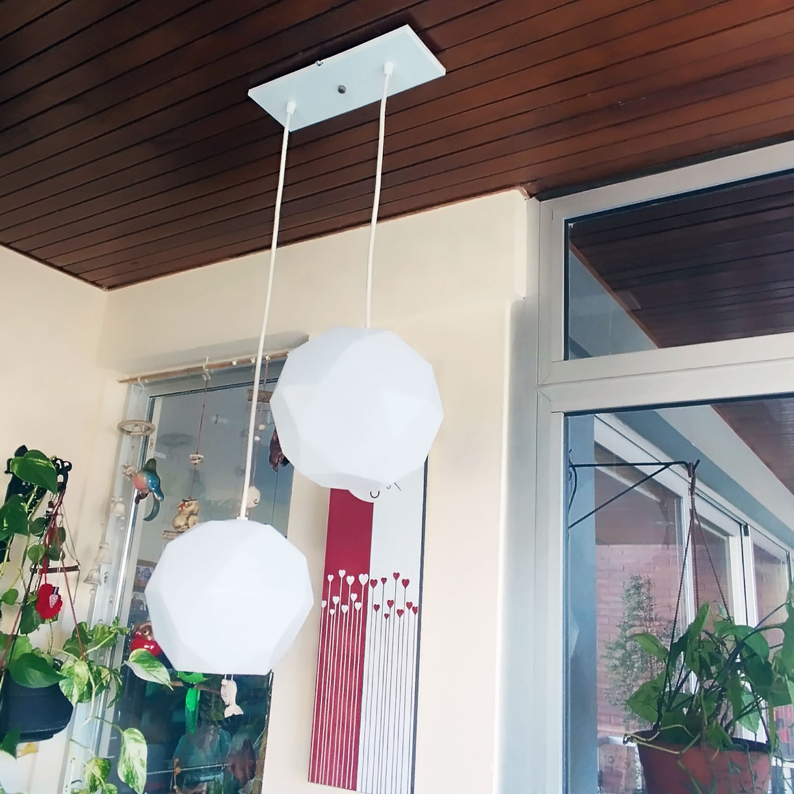 Colgante Prisma Esfera PVC Opal Antivandalismo 2 Luces – Apto Led (E27) – Colores: Blanco, Negro.