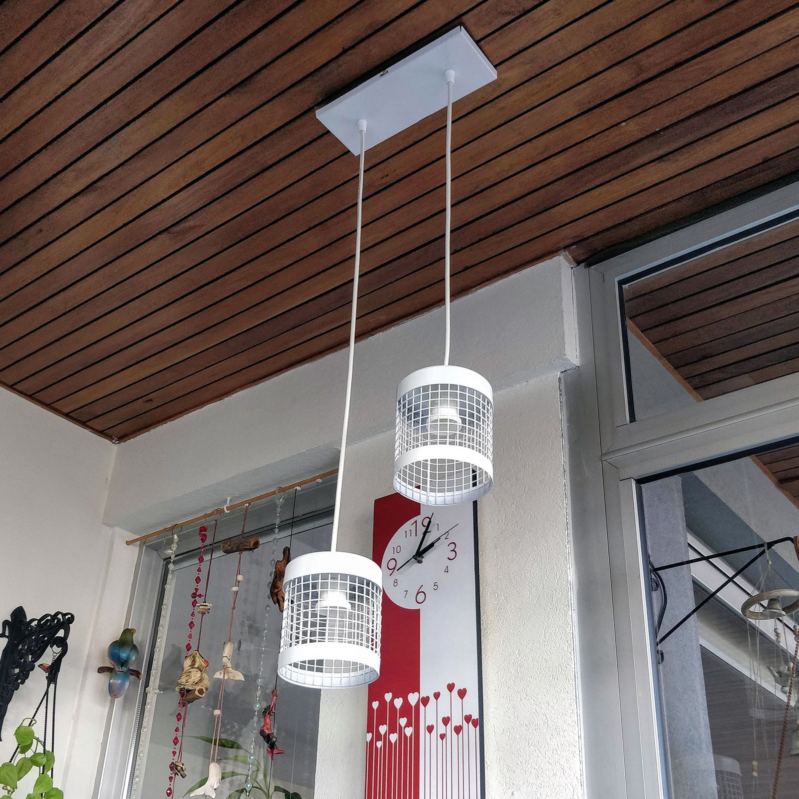 Colgante Rejilla Moderno 2 Luces Retro Vintage – Apto Led (E27) – Colores: Blanco, Negro.