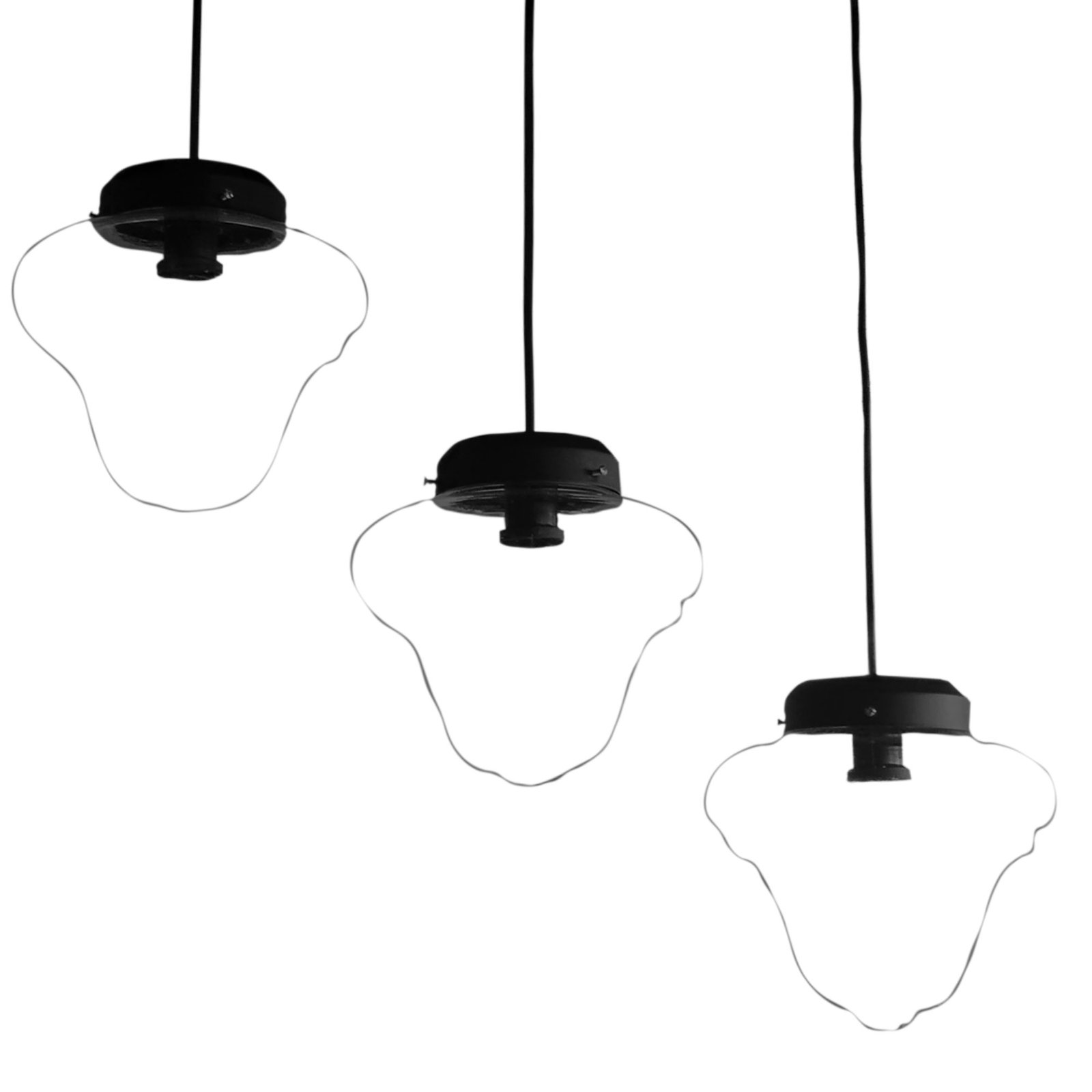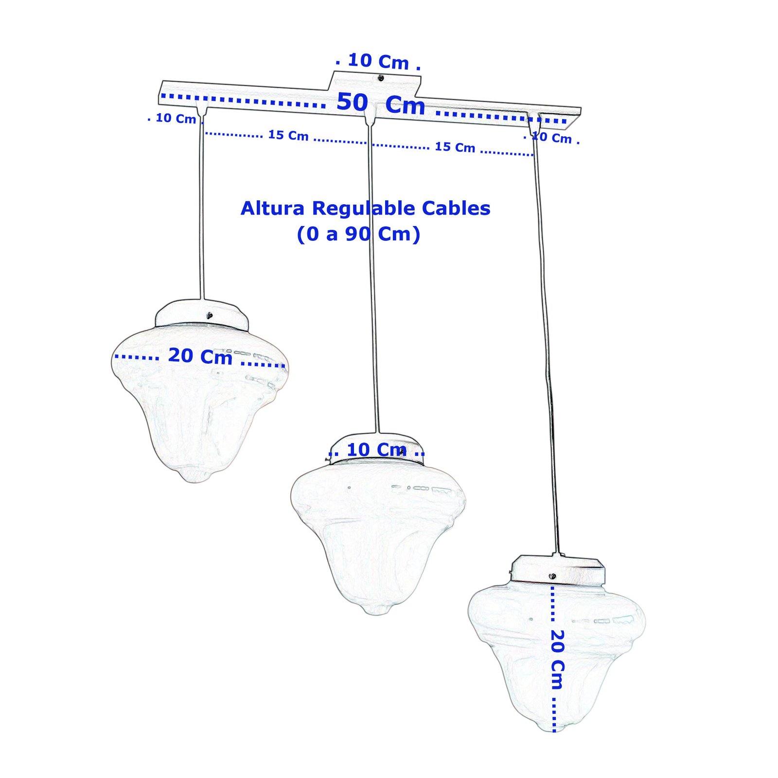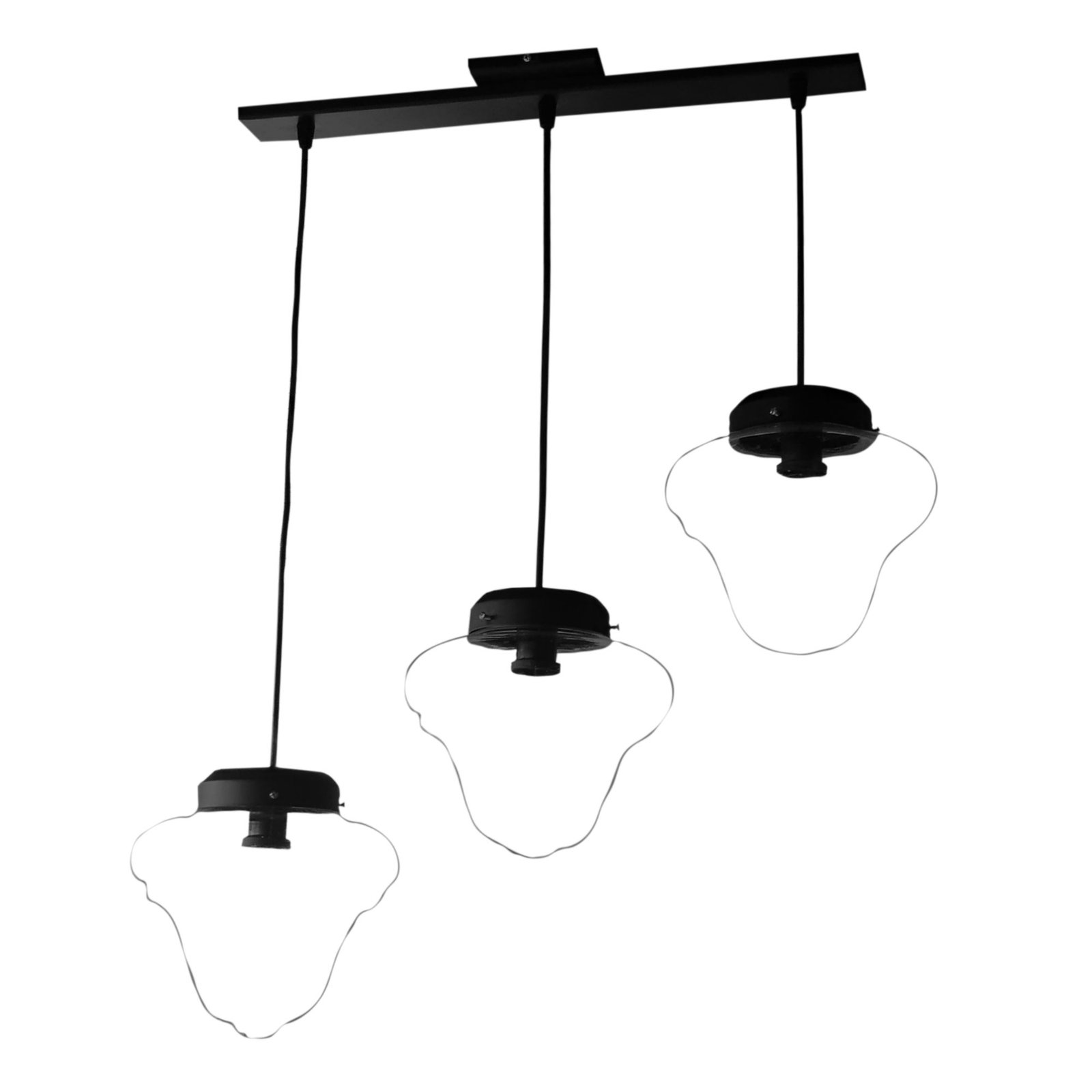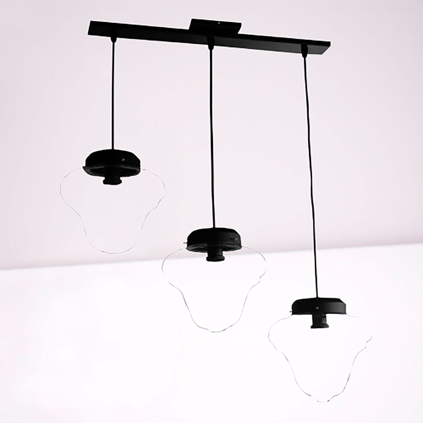 Colgante Trompo 2 de Vidrio 3 Luces Base Rectangular Moderno – Apto Led (E27) – Colores: Blanco, Negro. – Vidrio Opal Brillante ó Transparente.