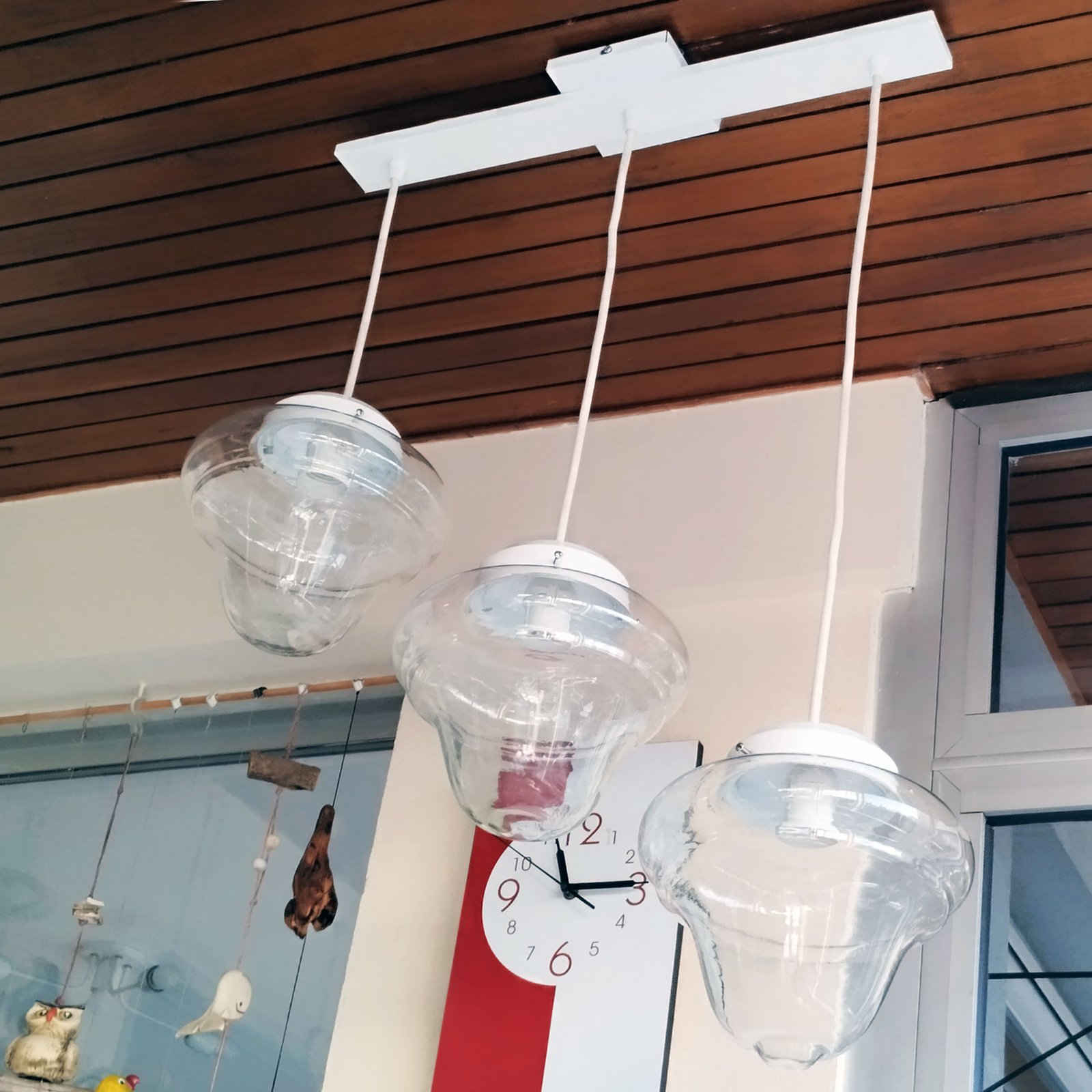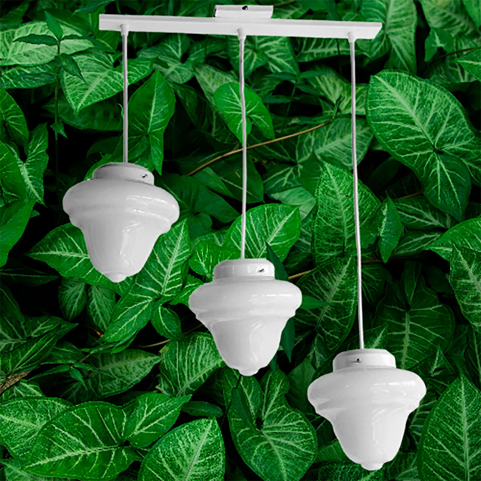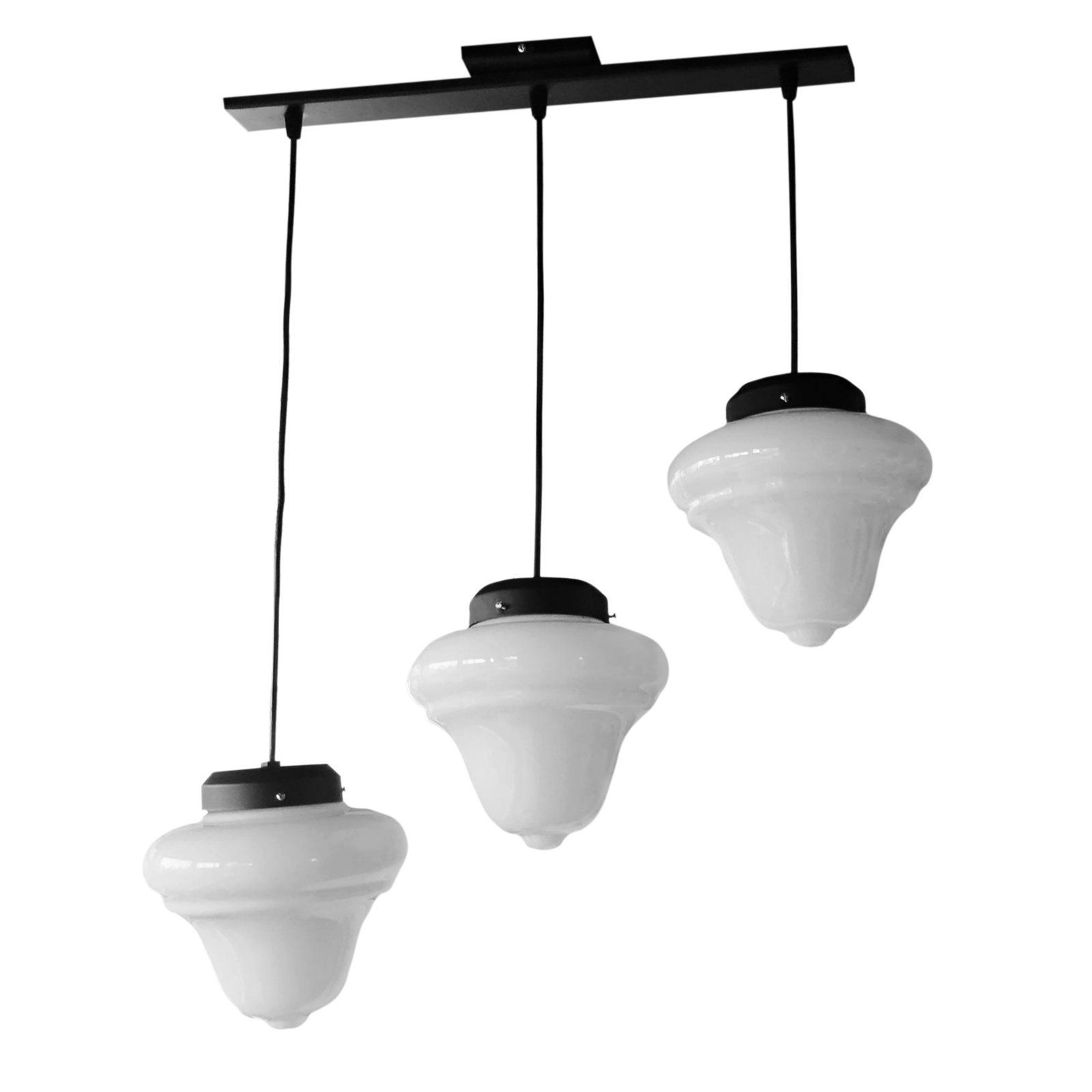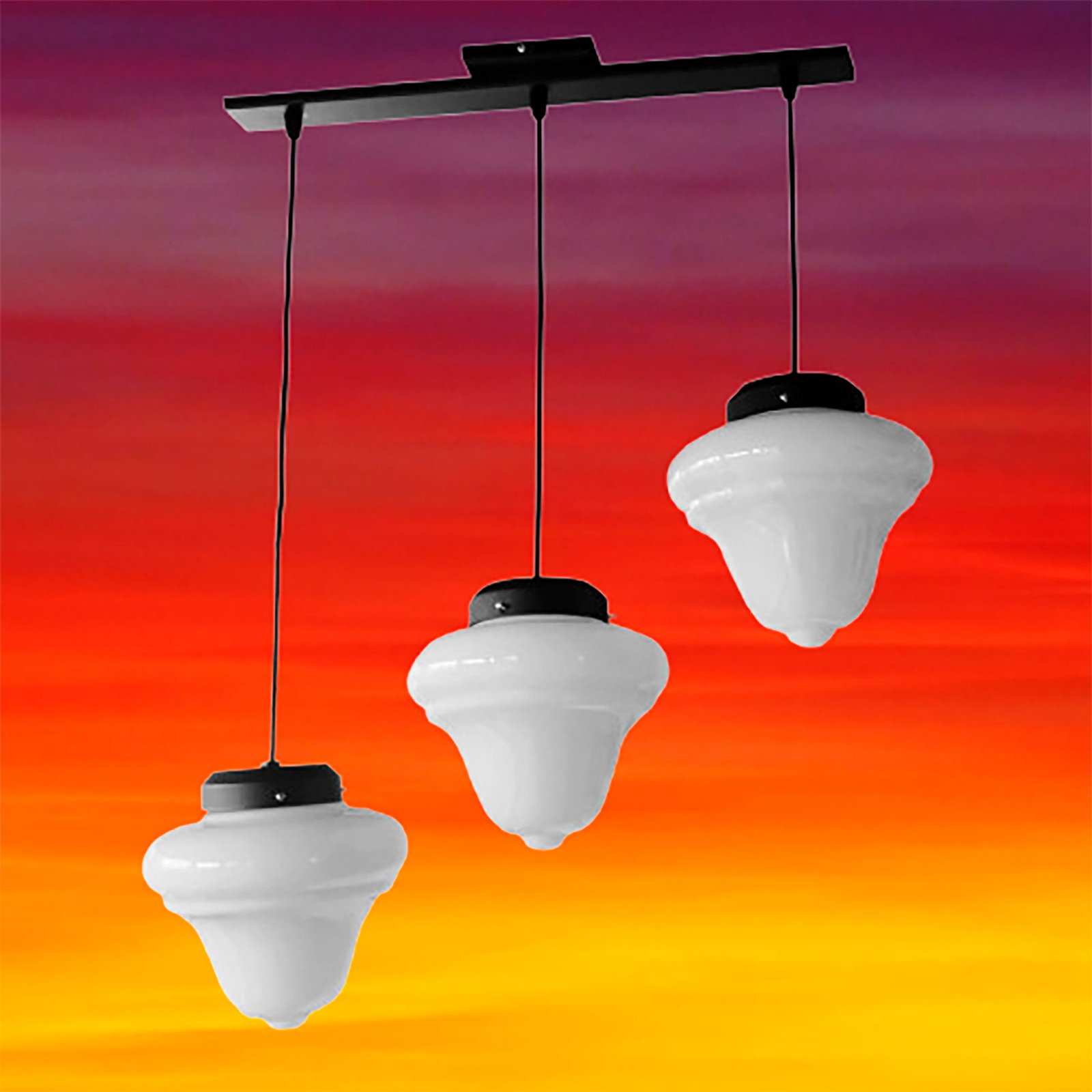 Colgante Trompo 2 de Vidrio 3 Luces Base Rectangular Moderno – Apto Led (E27) – Colores: Blanco, Negro. – Vidrio Opal Brillante ó Transparente.