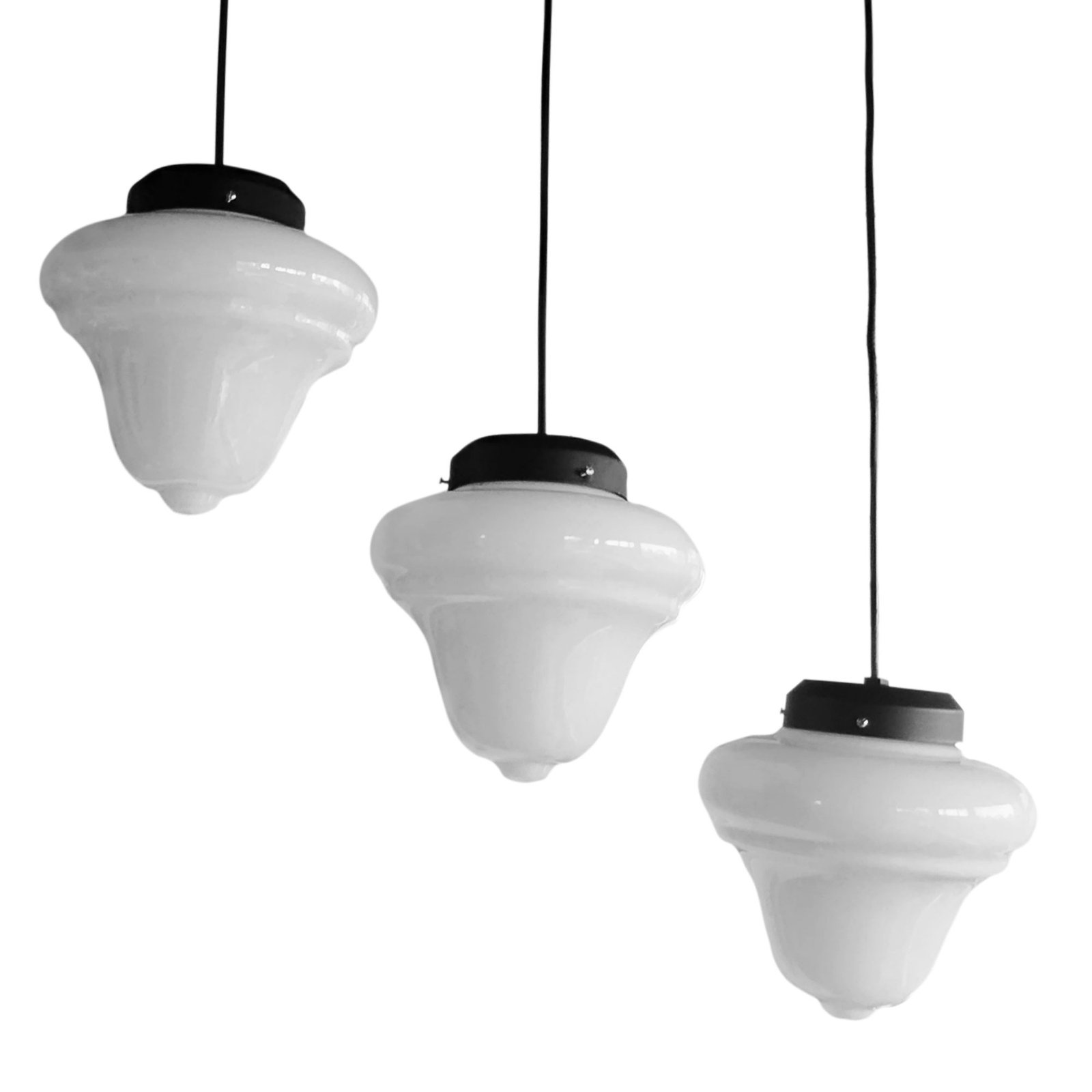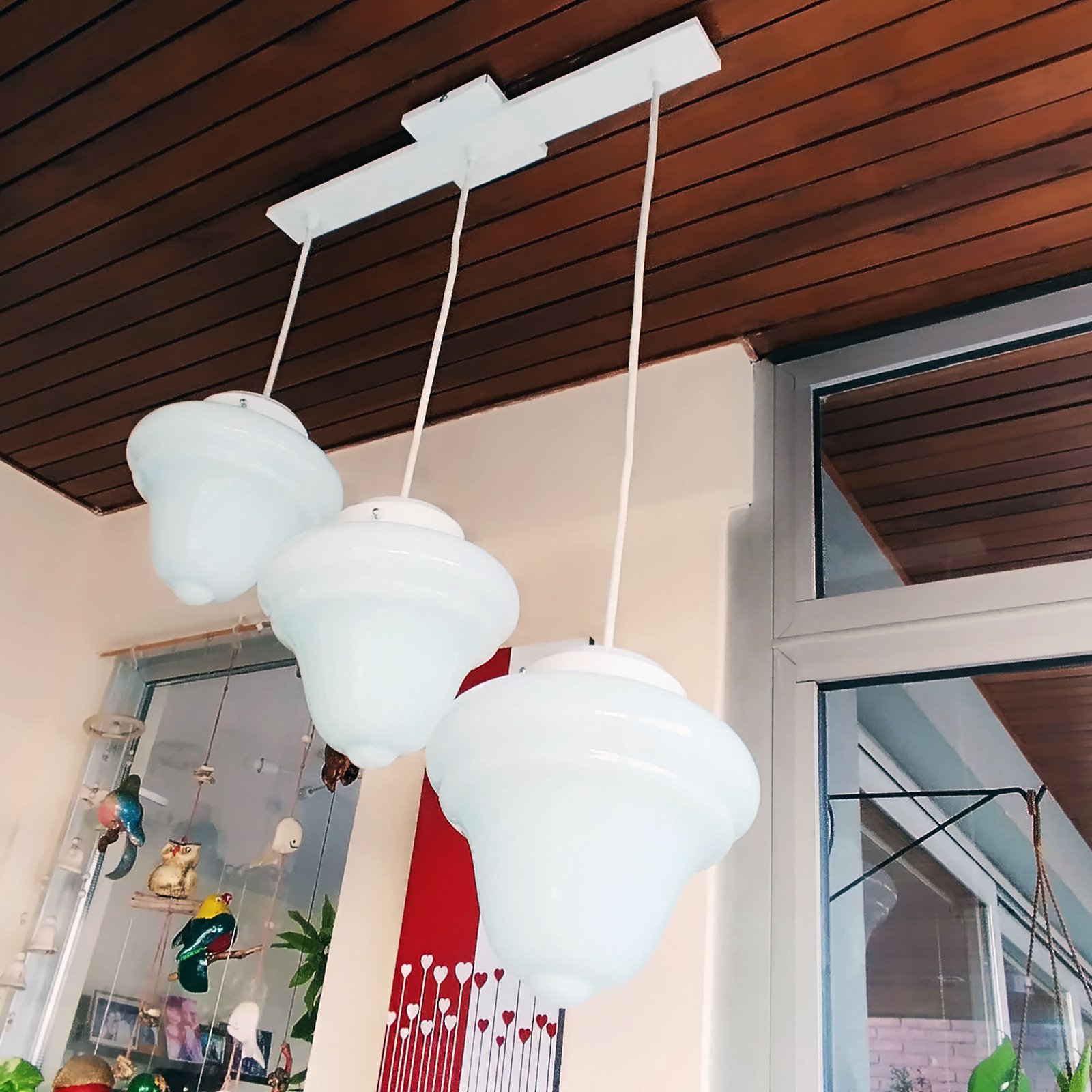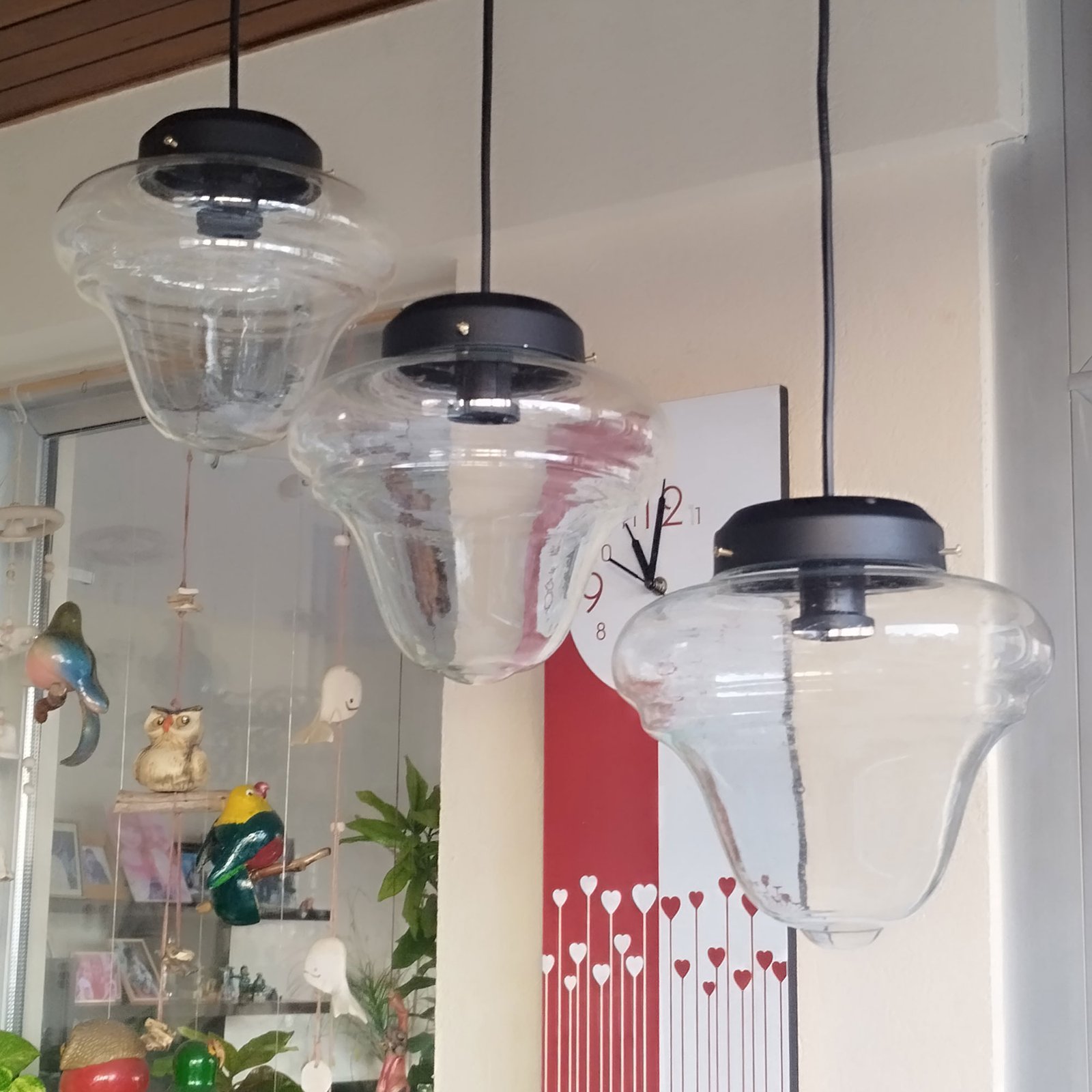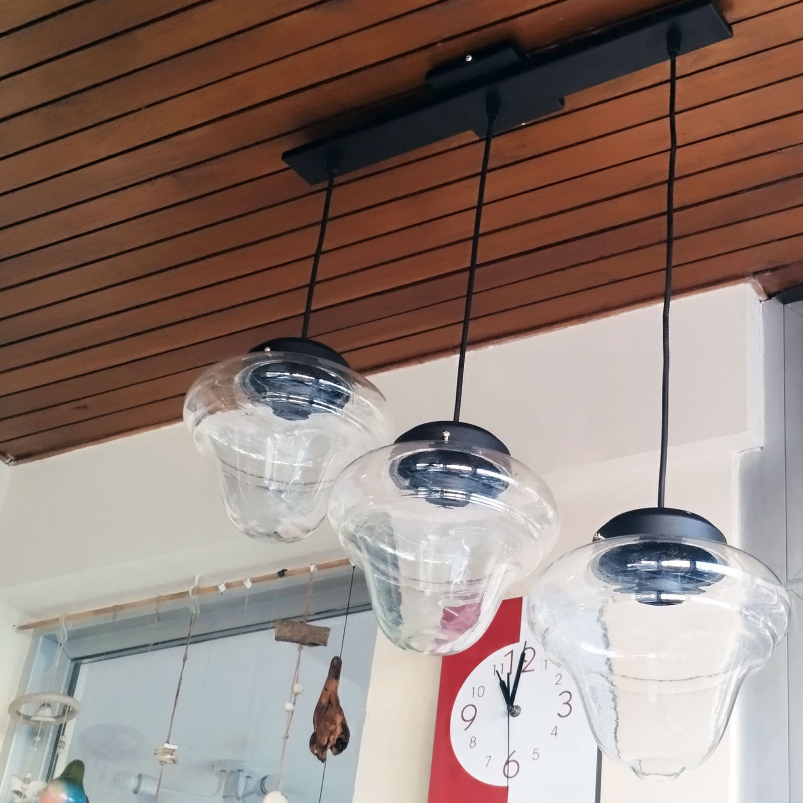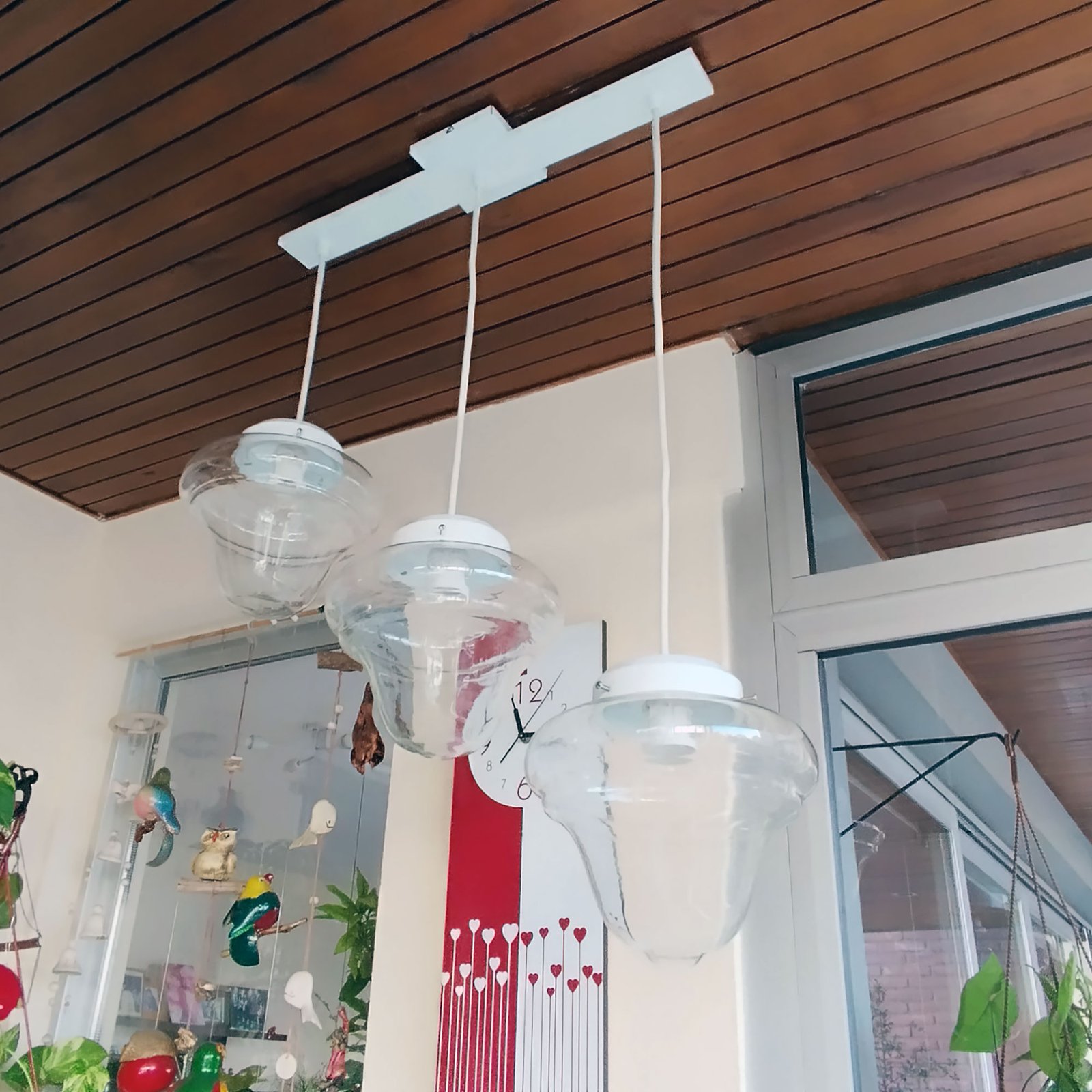 Colgante Trompo 2 de Vidrio 3 Luces Base Rectangular Moderno – Apto Led (E27) – Colores: Blanco, Negro. – Vidrio Opal Brillante ó Transparente.