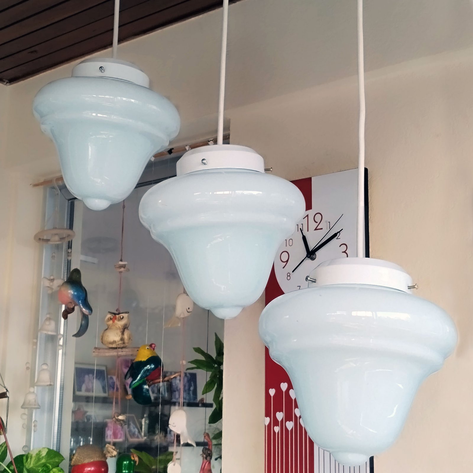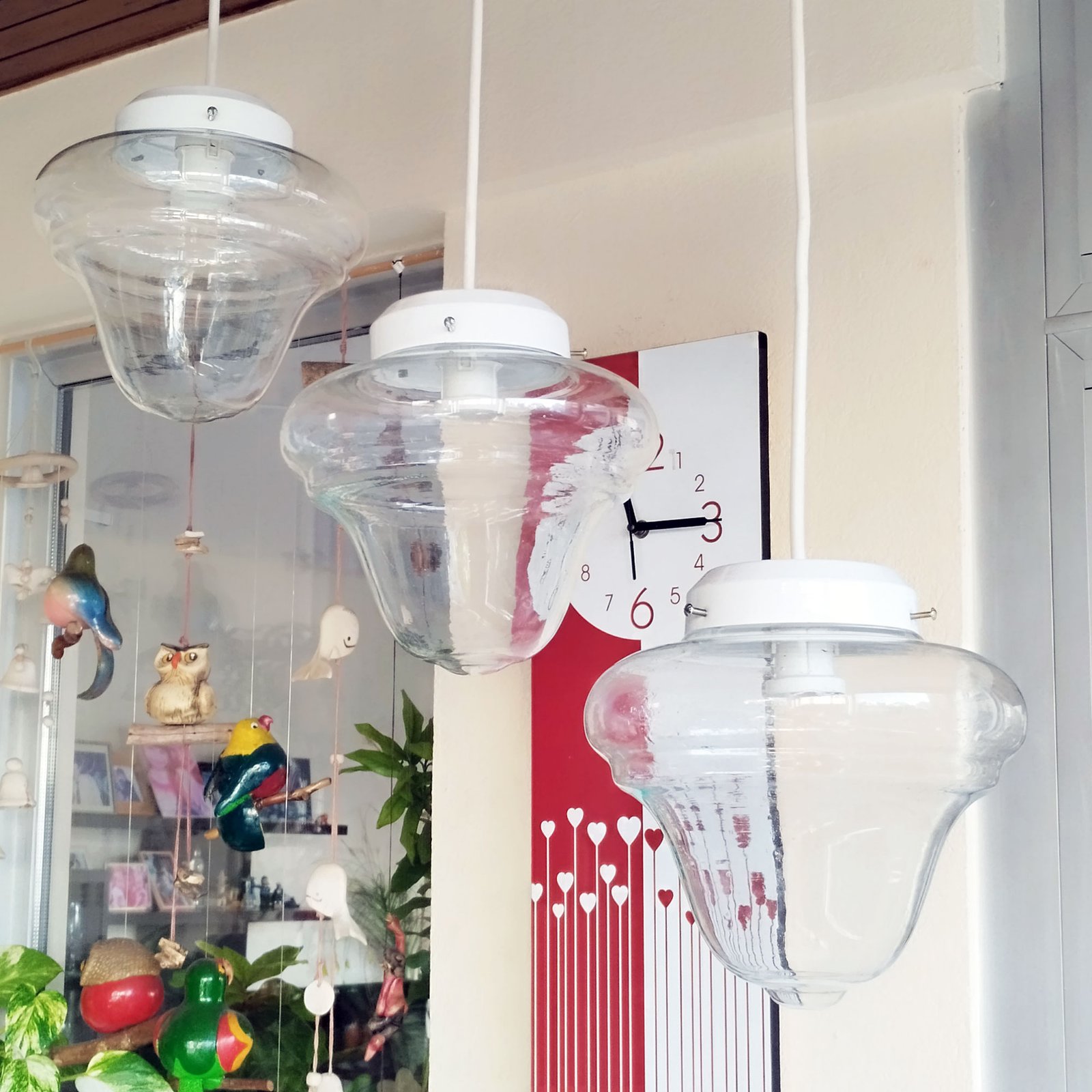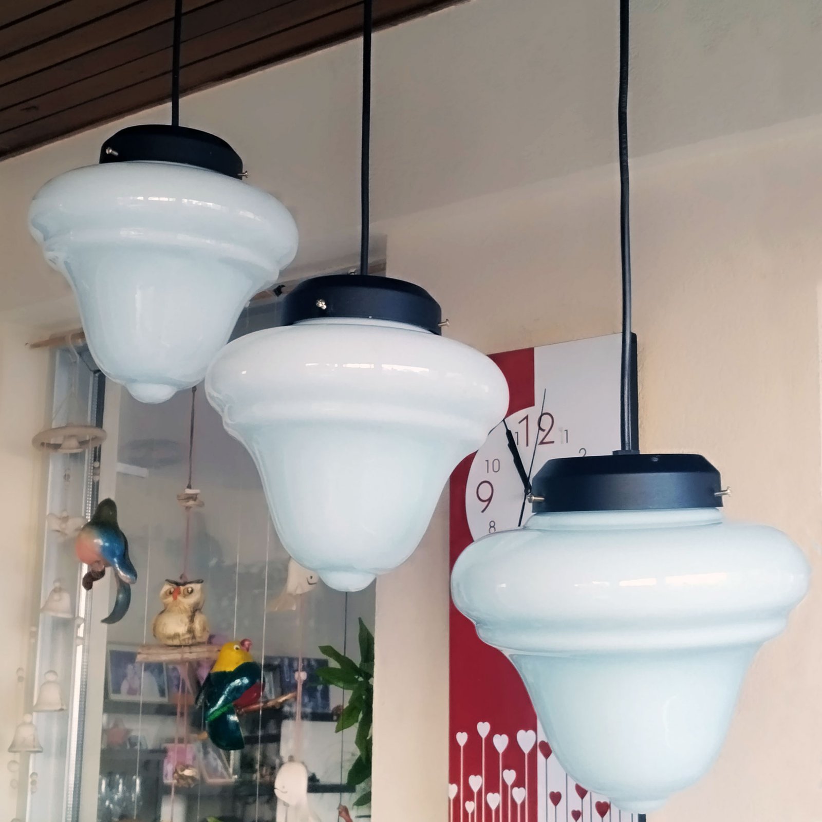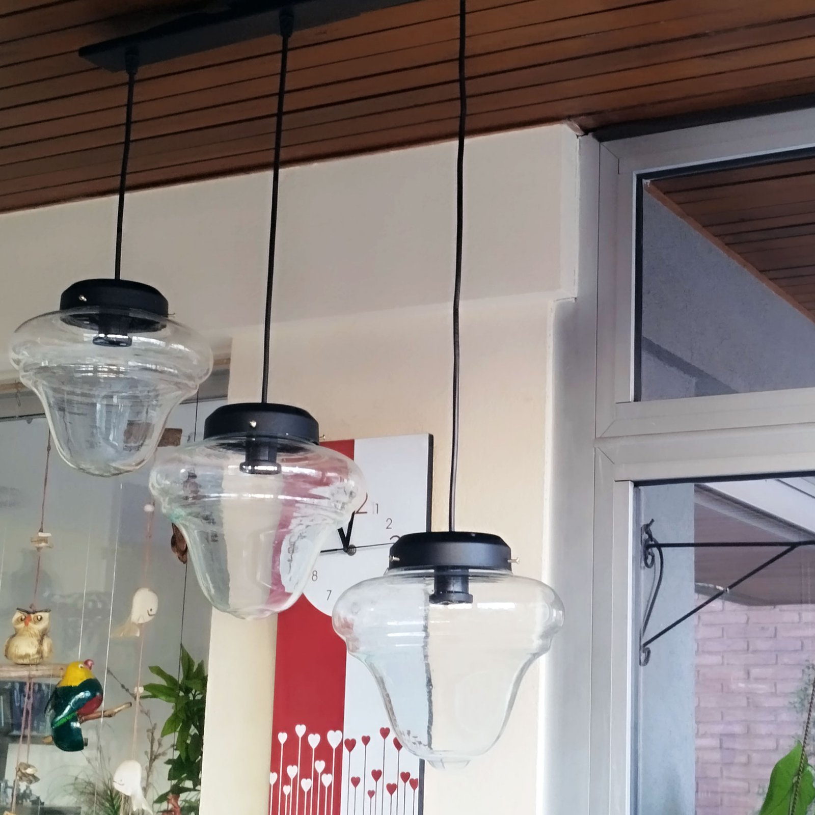 Colgante Trompo 2 de Vidrio 3 Luces Base Rectangular Moderno – Apto Led (E27) – Colores: Blanco, Negro. – Vidrio Opal Brillante ó Transparente.