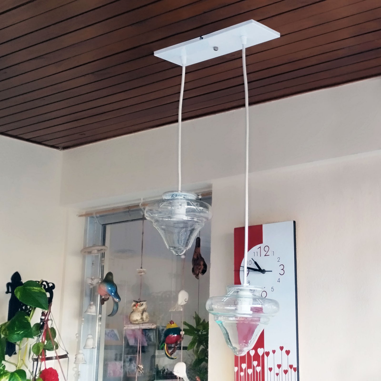 Colgante Trompo 1 de Vidrio 2 Luces Moderno – Apto Led (E27) – Opal Brillante ó Transparente.