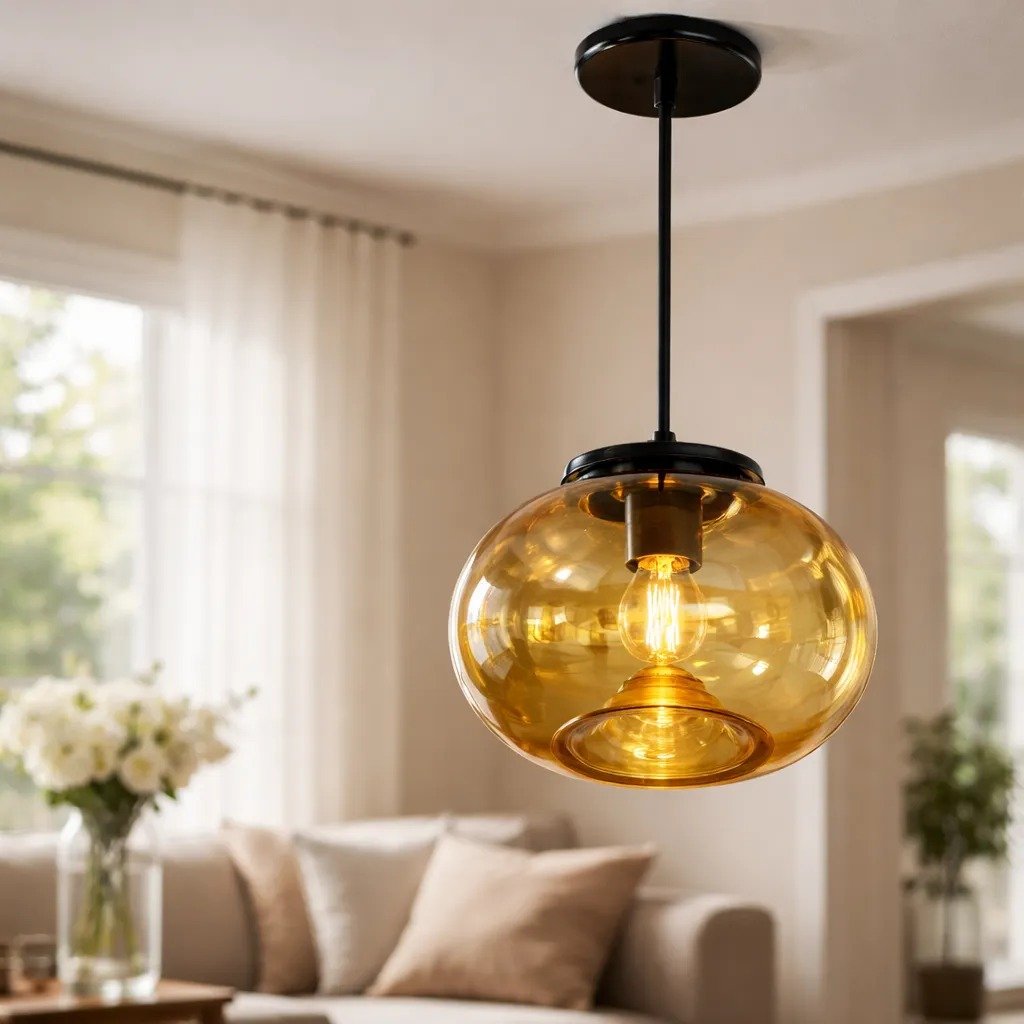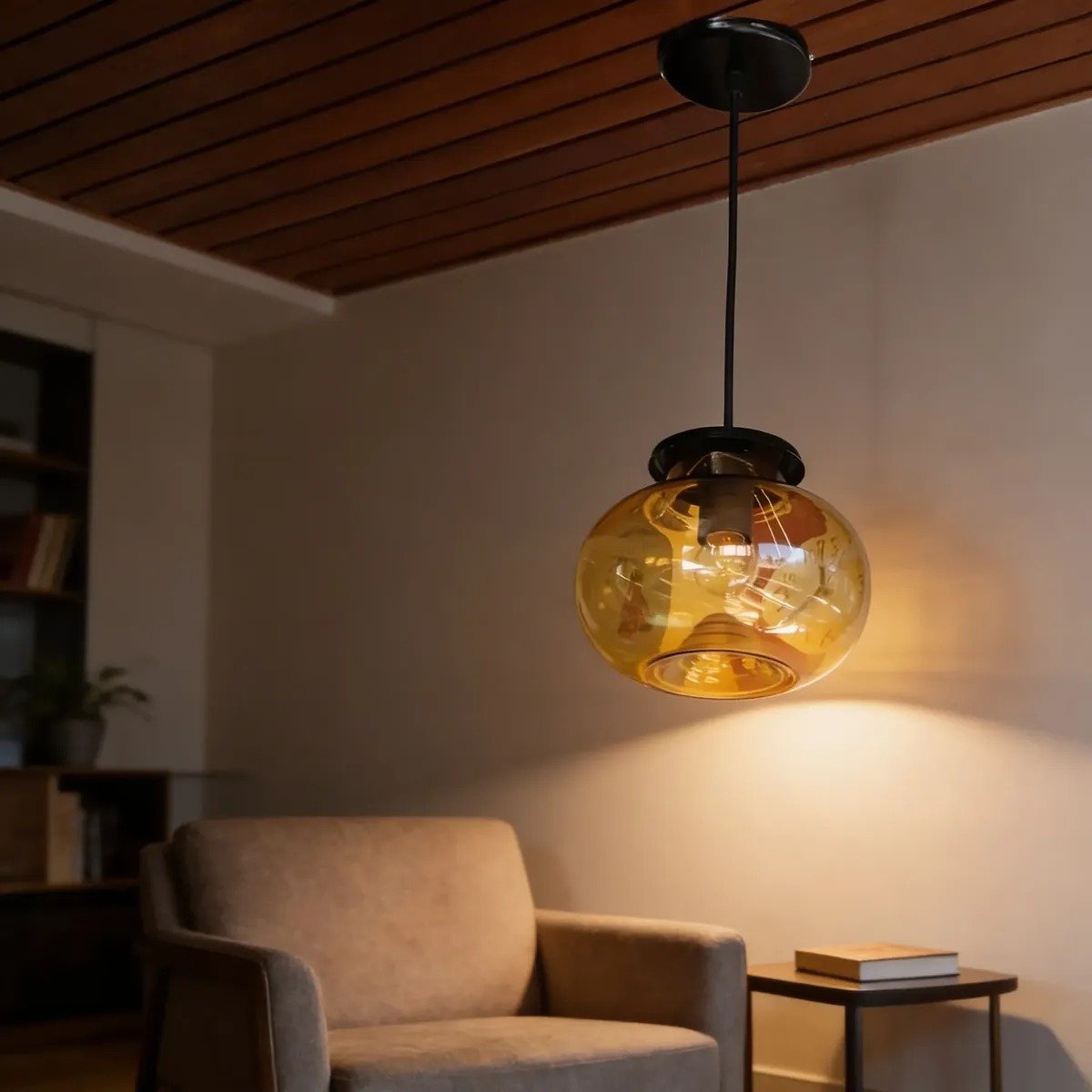 Colgante Vidrio Globo Decorado Liso Ámbar Vintage con Lámpara 1 Luz – Apto Led (E27) – Colores: Blanco, Negro.