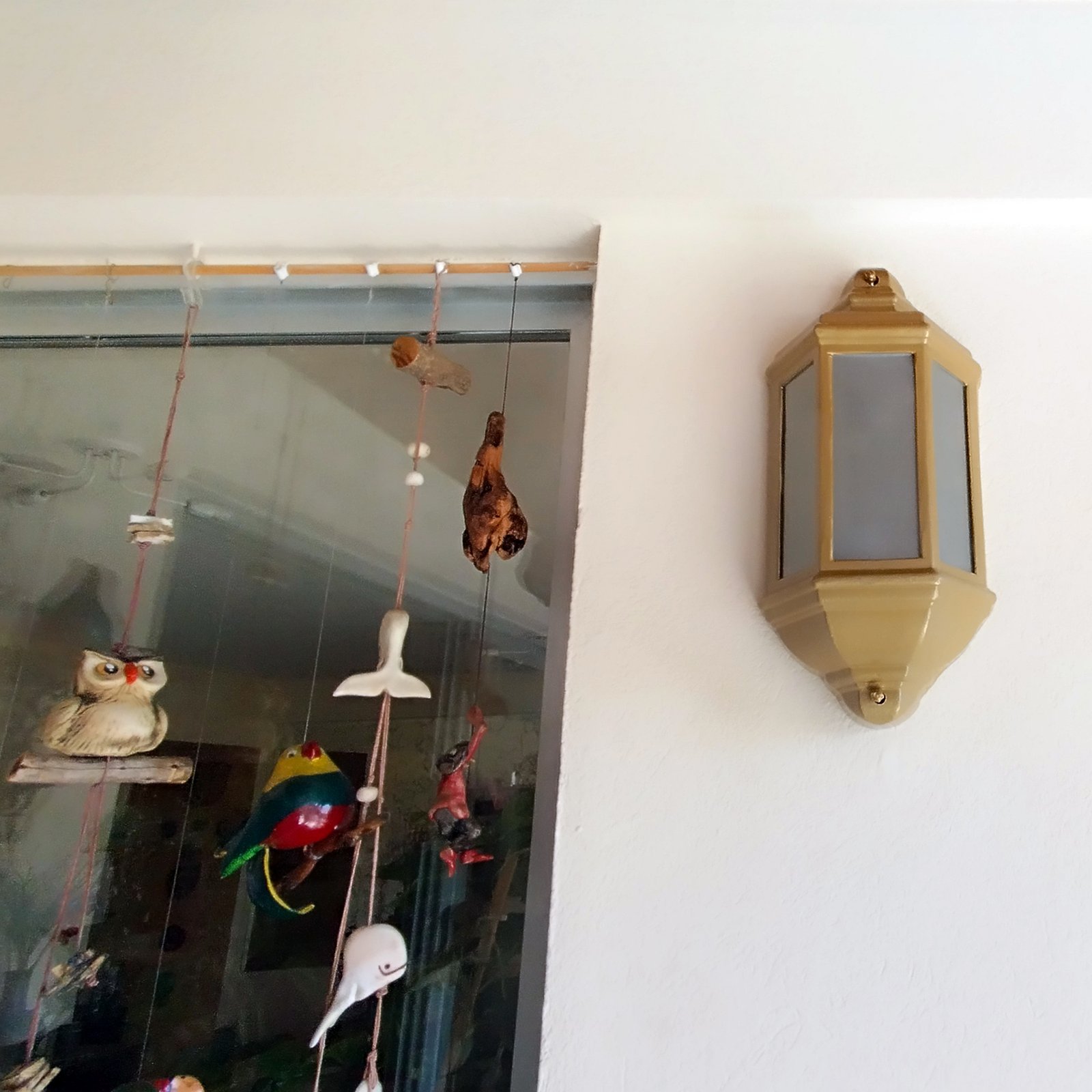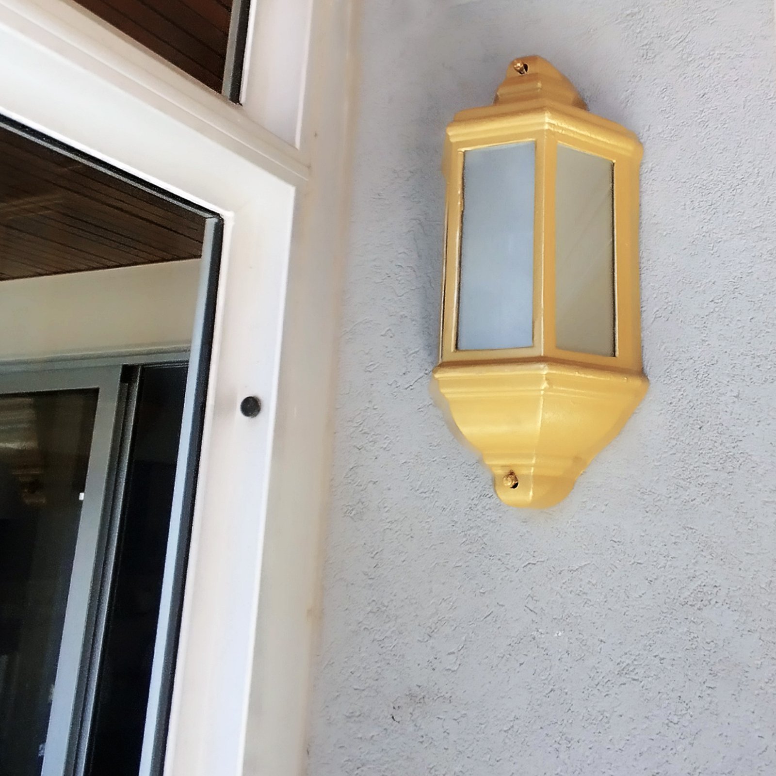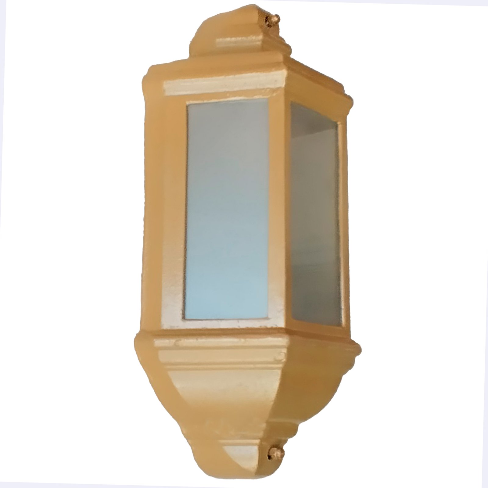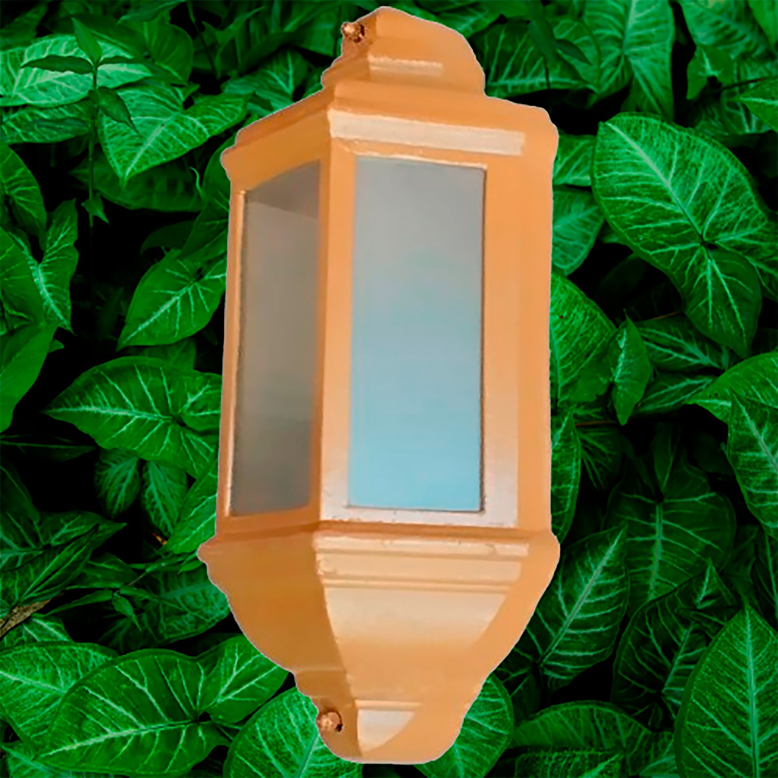 Farol Colonial de Fundición de Aluminio 2 Luces Vidrio Translúcido – Apto Led – E27 – Color: Dorado