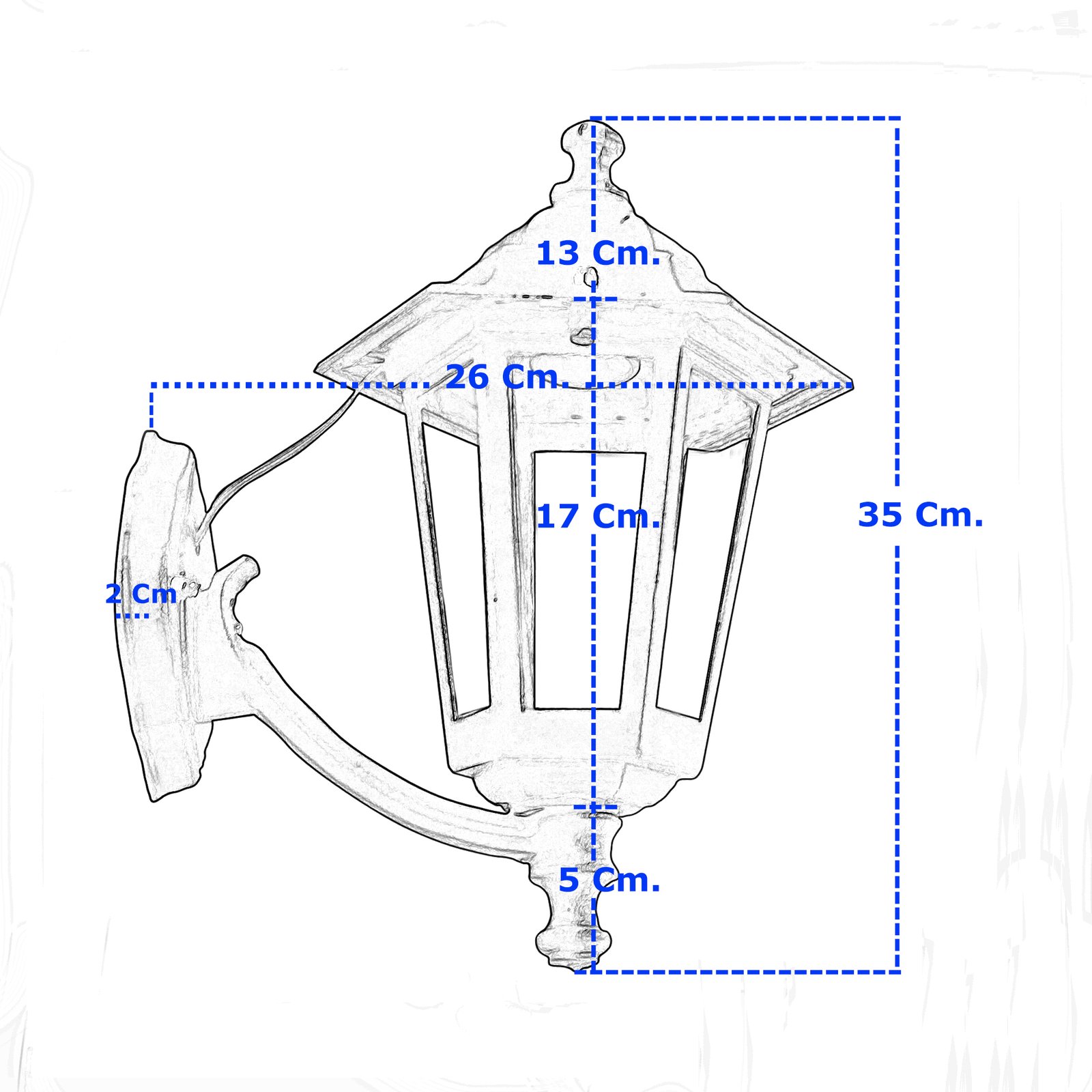 Farol Colonial Fundición Aluminio para Intemperie 6 Caras Chico Vidrio Translúcido con Ménsula Inferior – Apto Led (E27) – Colores: Blanco, Negro.