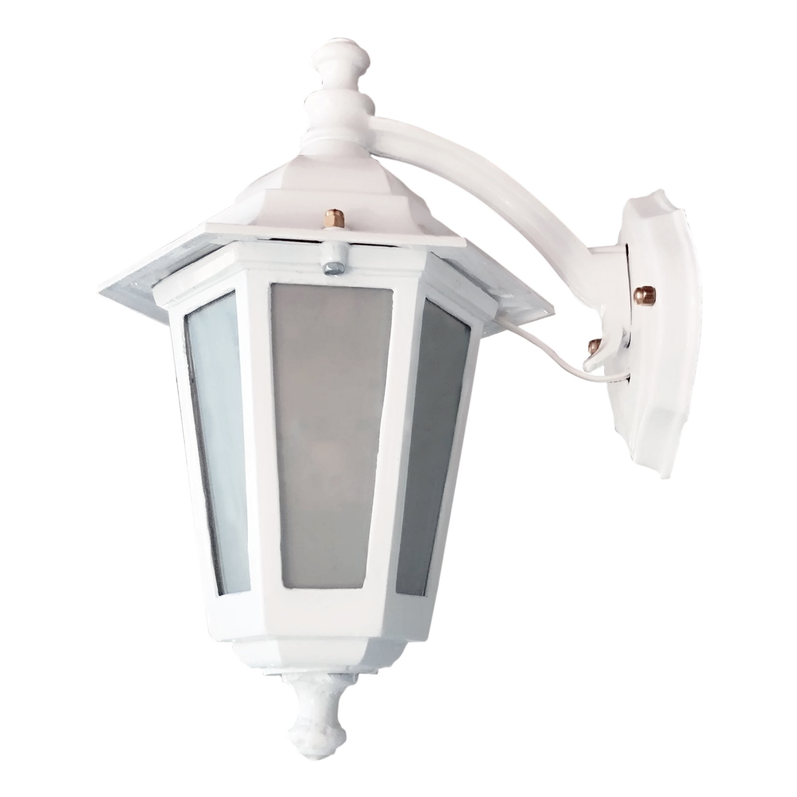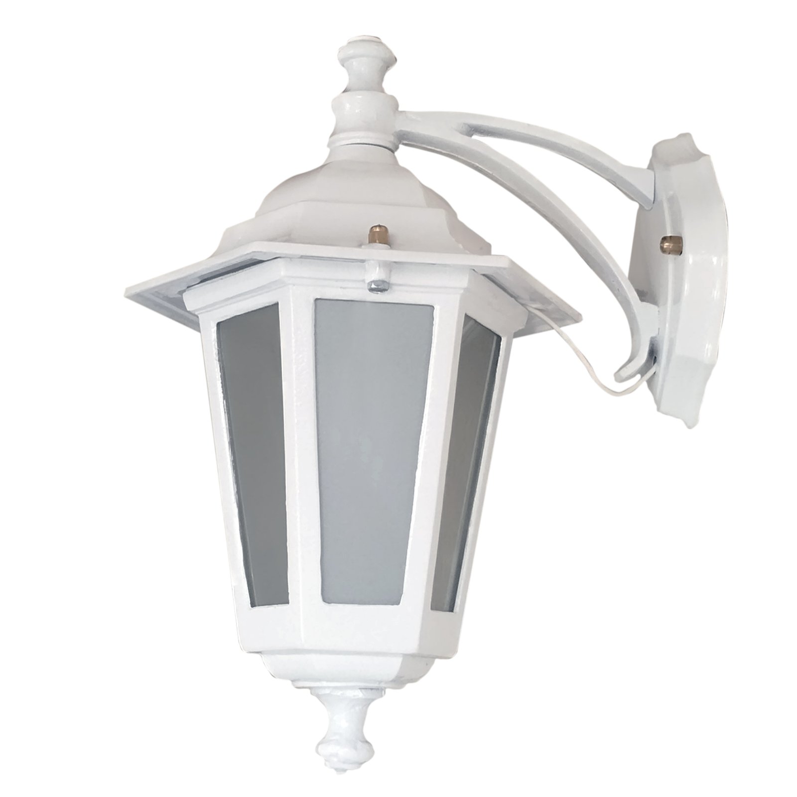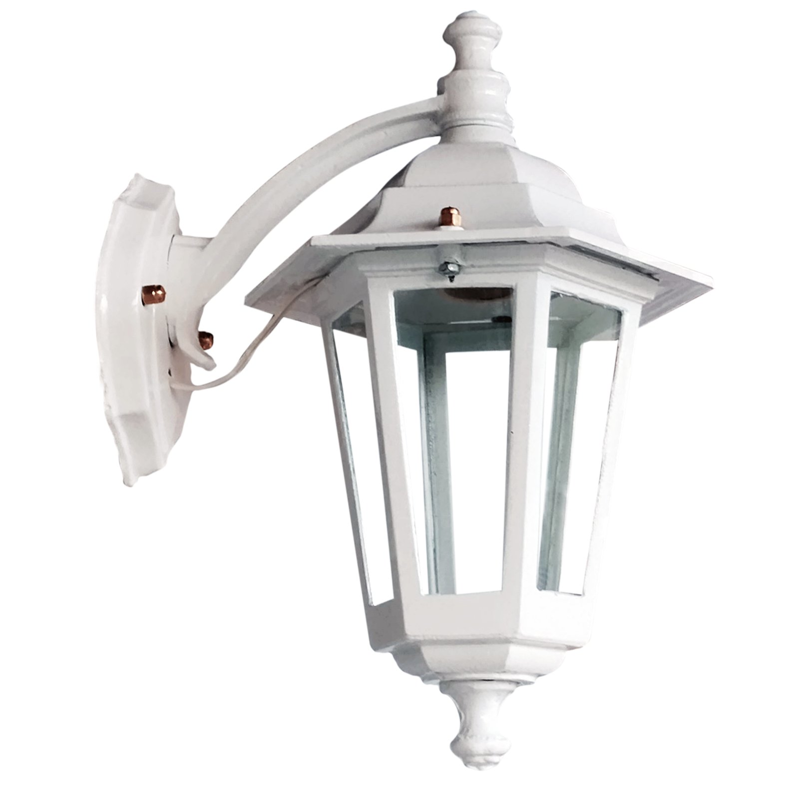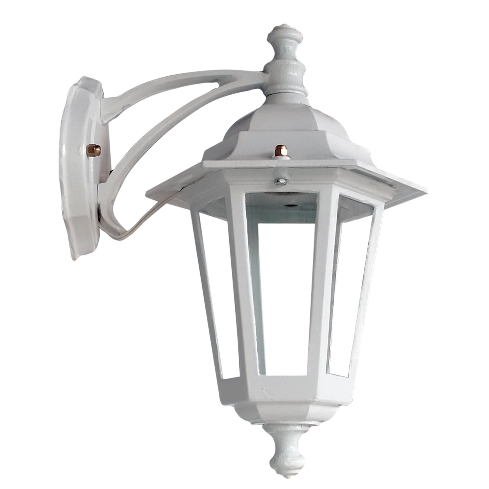 Farol Colonial Fundición Aluminio para Intemperie 6 Caras Chico Vidrio Translúcido con Ménsula Superior – Apto Led (E27) – Colores: Blanco, Negro.
