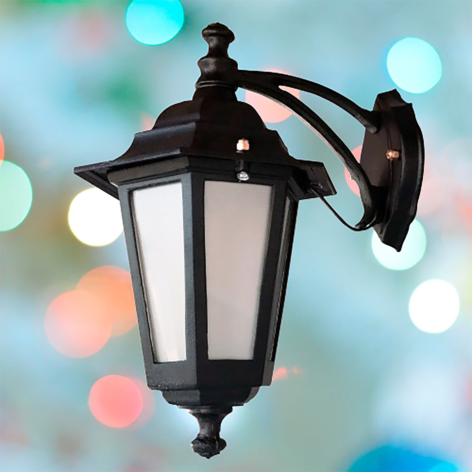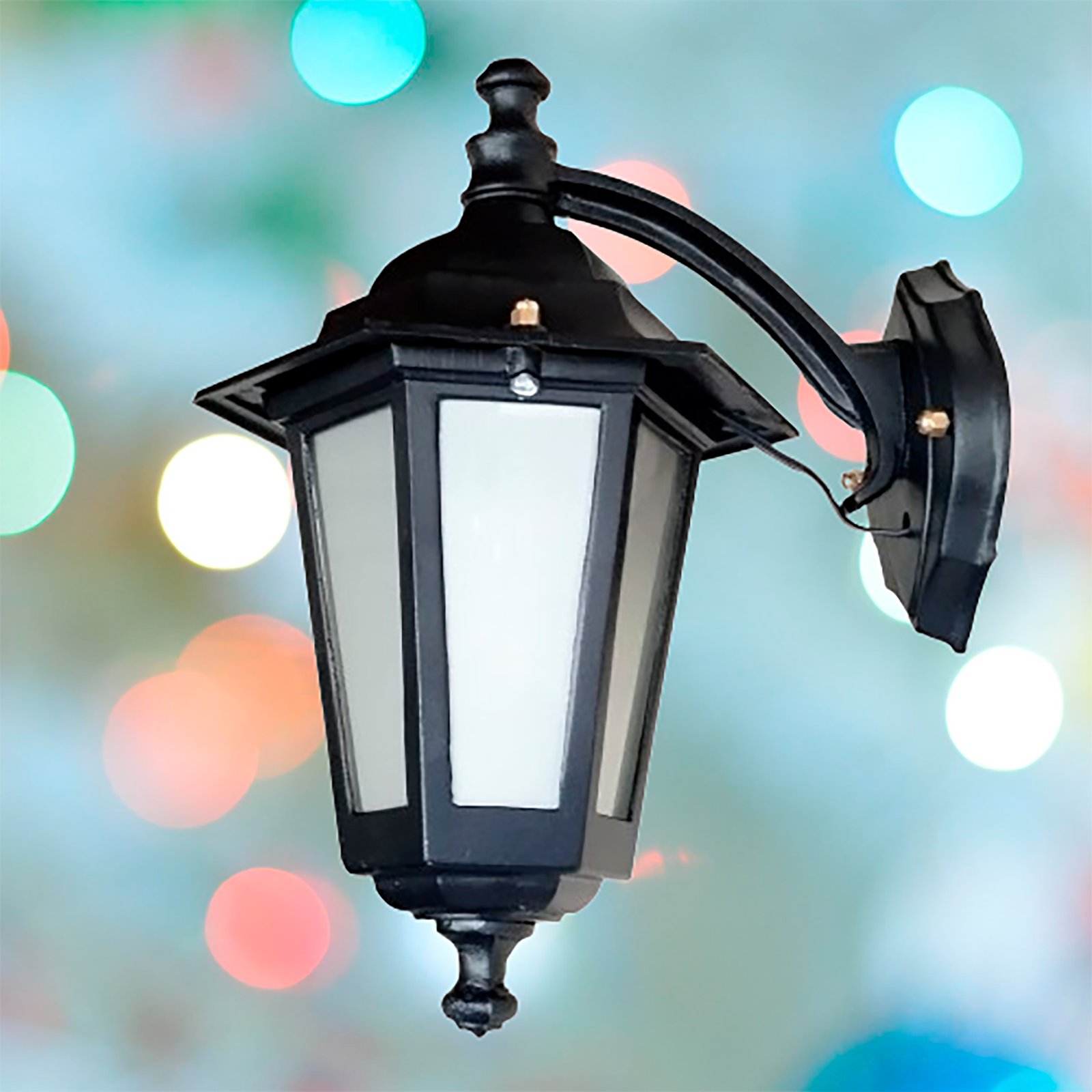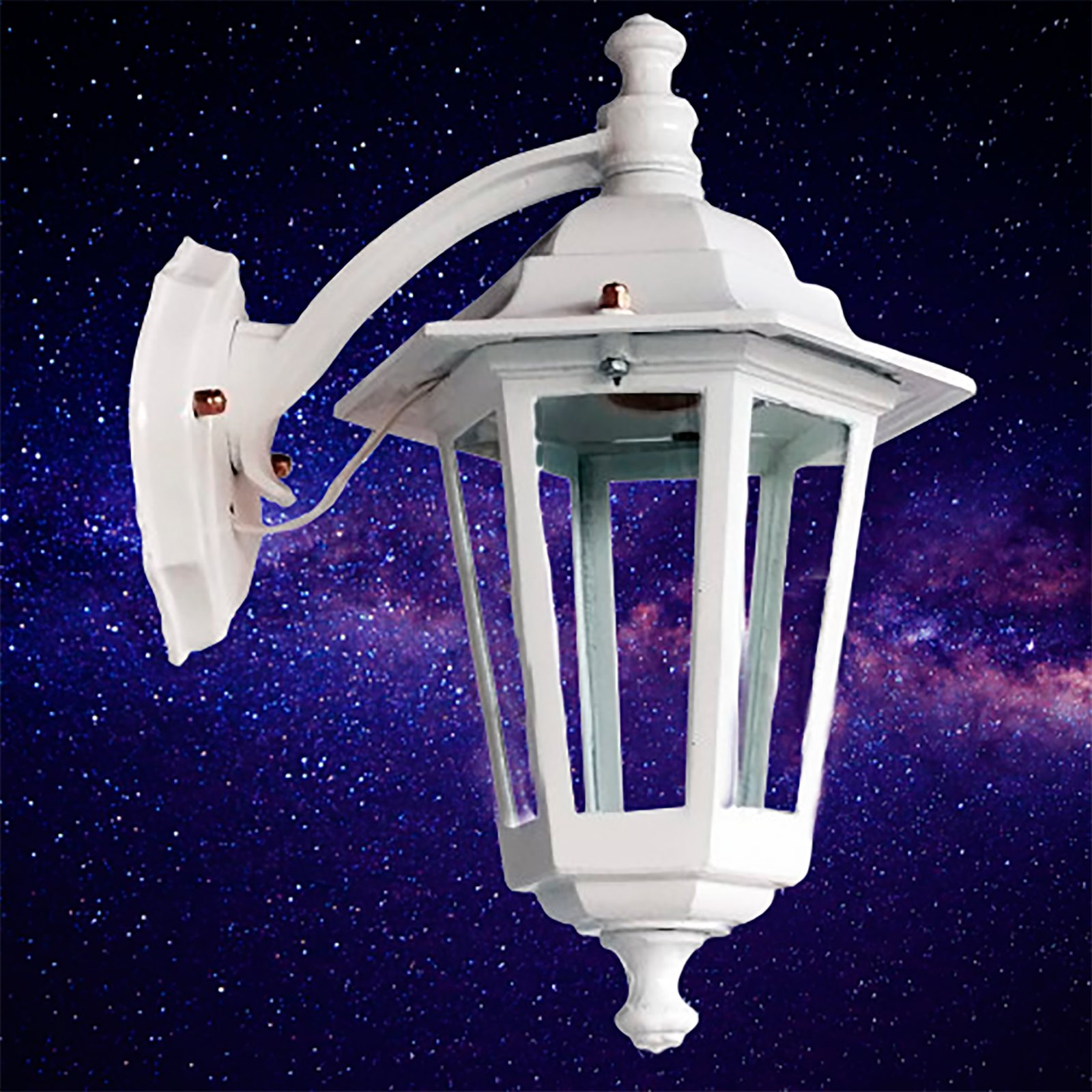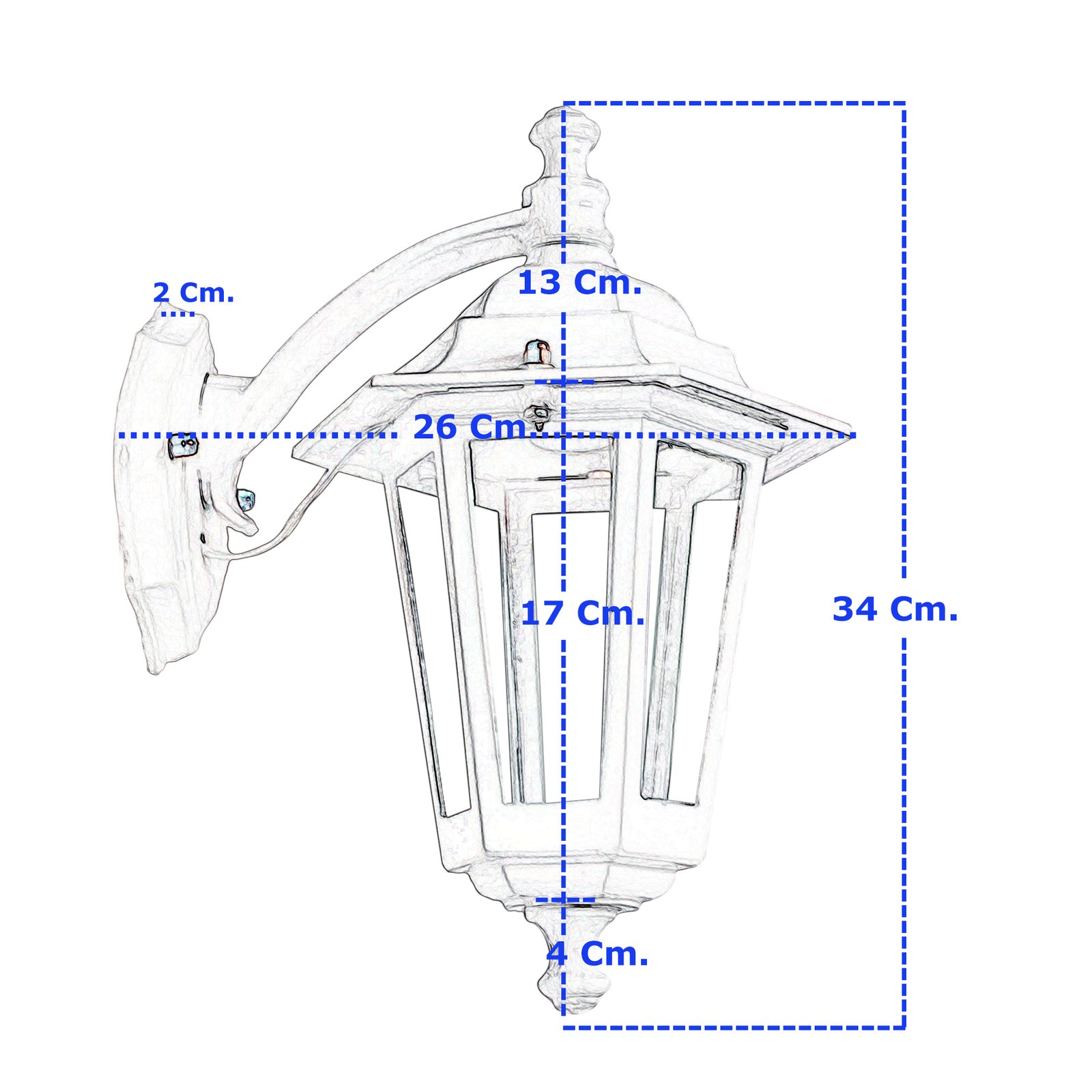 Farol Colonial Fundición Aluminio para Intemperie 6 Caras Chico Vidrio Translúcido con Ménsula Superior – Apto Led (E27) – Colores: Blanco, Negro.