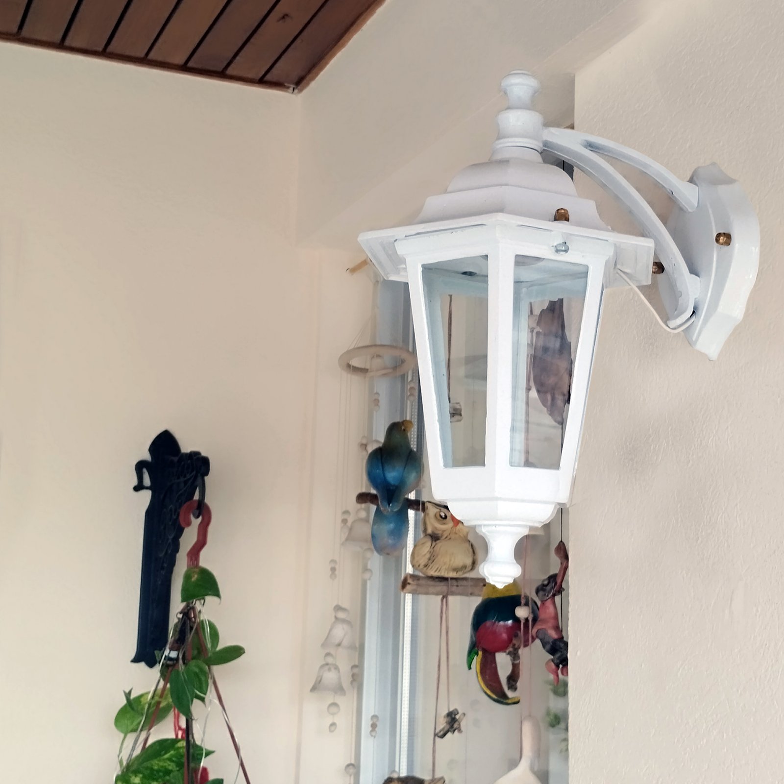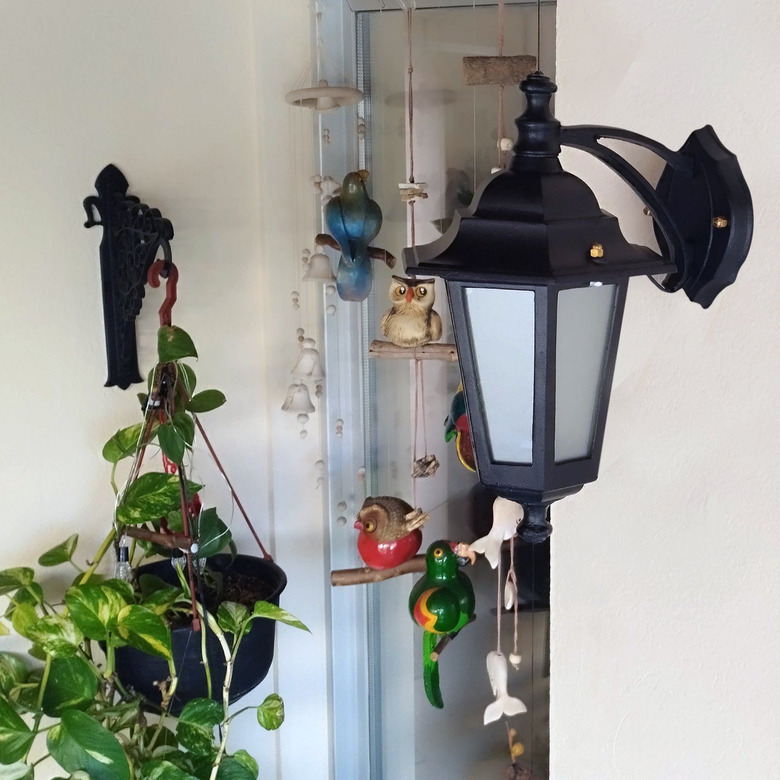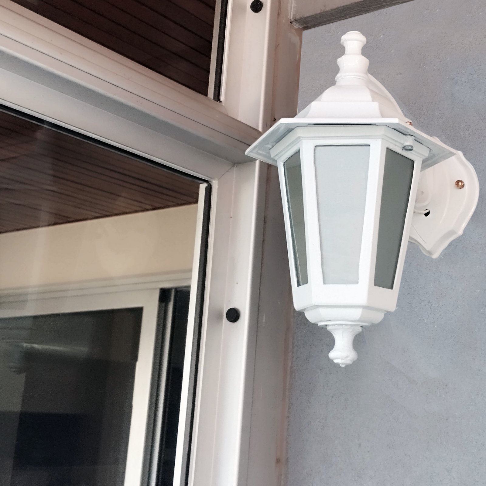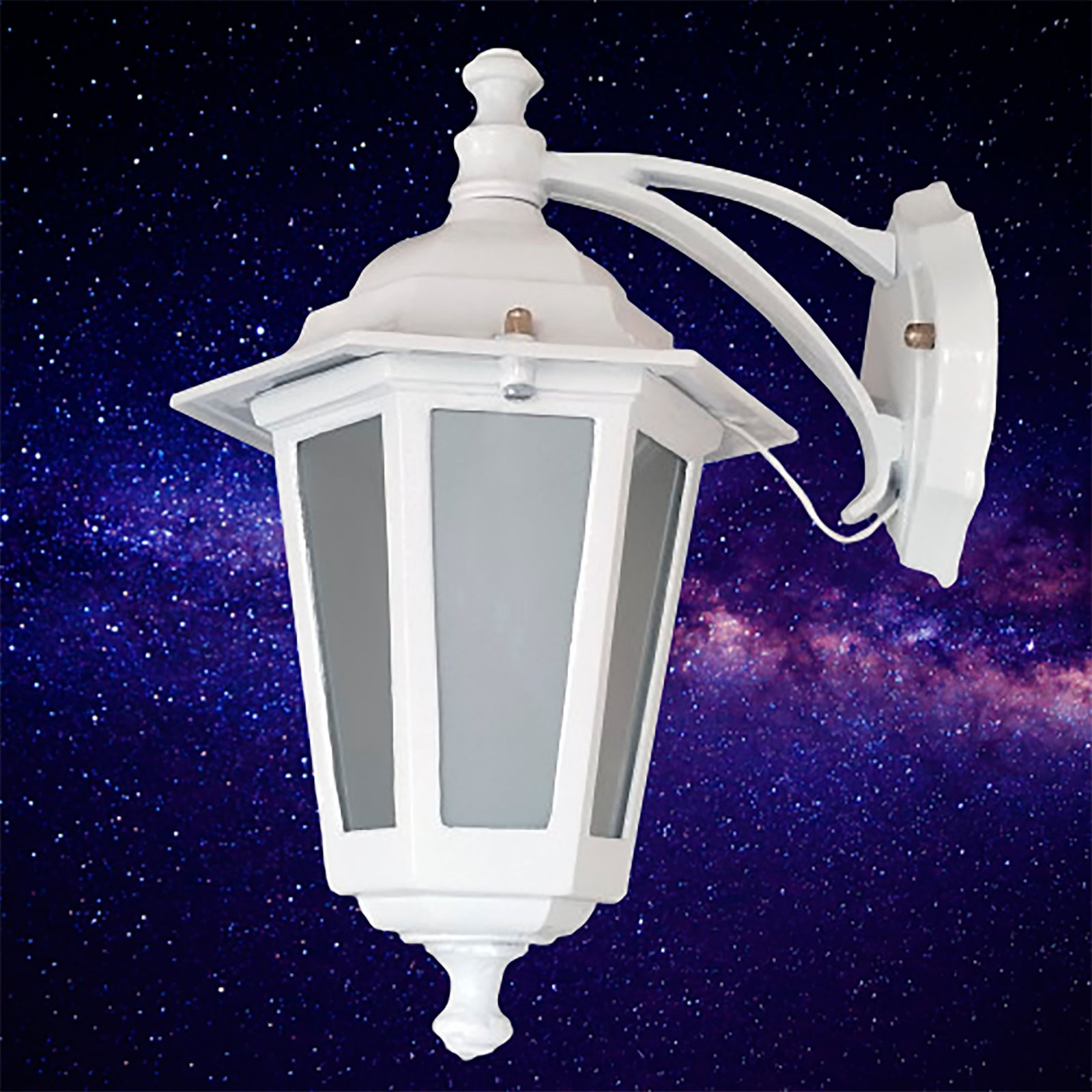 Farol Colonial Fundición Aluminio para Intemperie 6 Caras Chico Vidrio Translúcido con Ménsula Superior – Apto Led (E27) – Colores: Blanco, Negro.