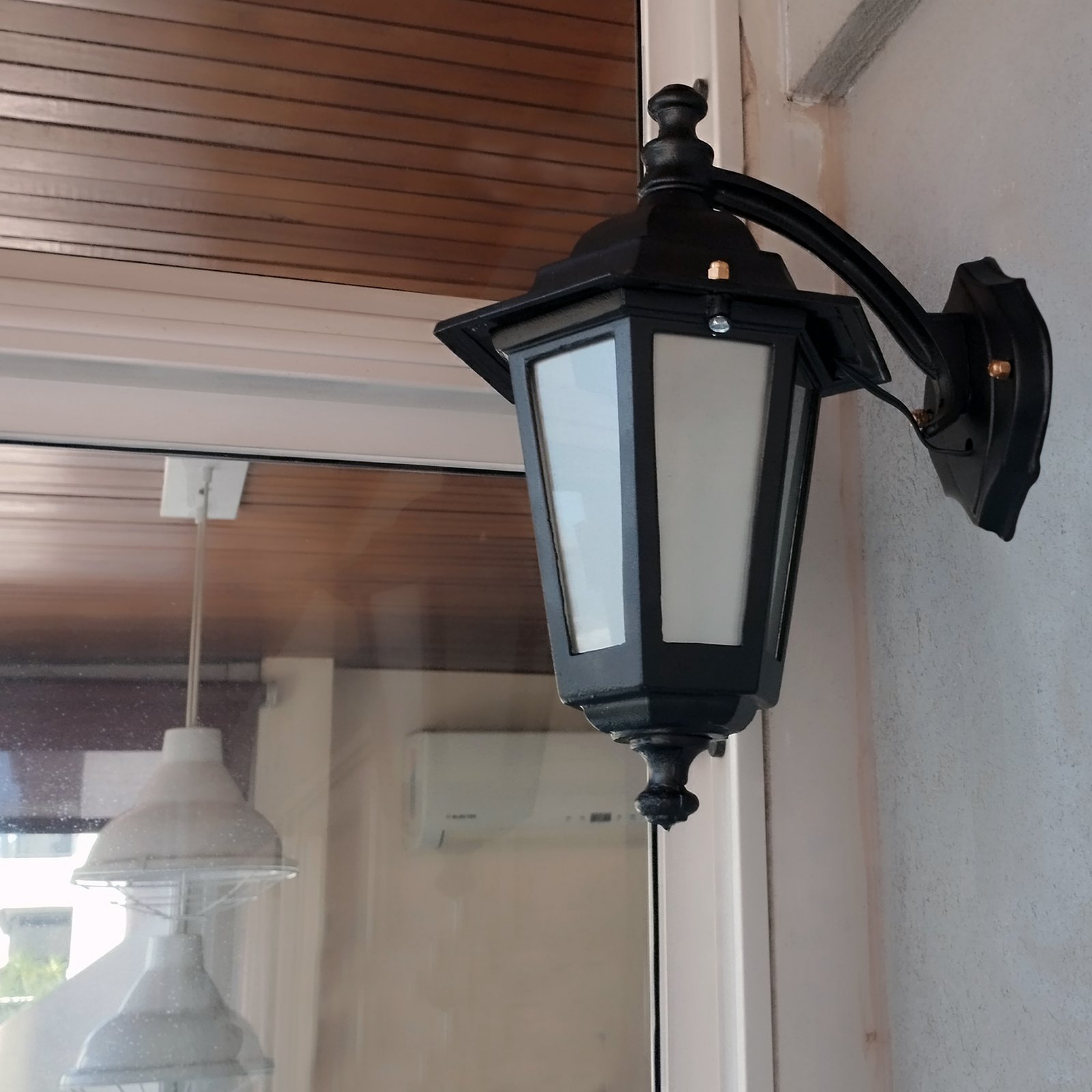 Farol Colonial Fundición Aluminio para Intemperie 6 Caras Chico Vidrio Translúcido con Ménsula Superior – Apto Led (E27)