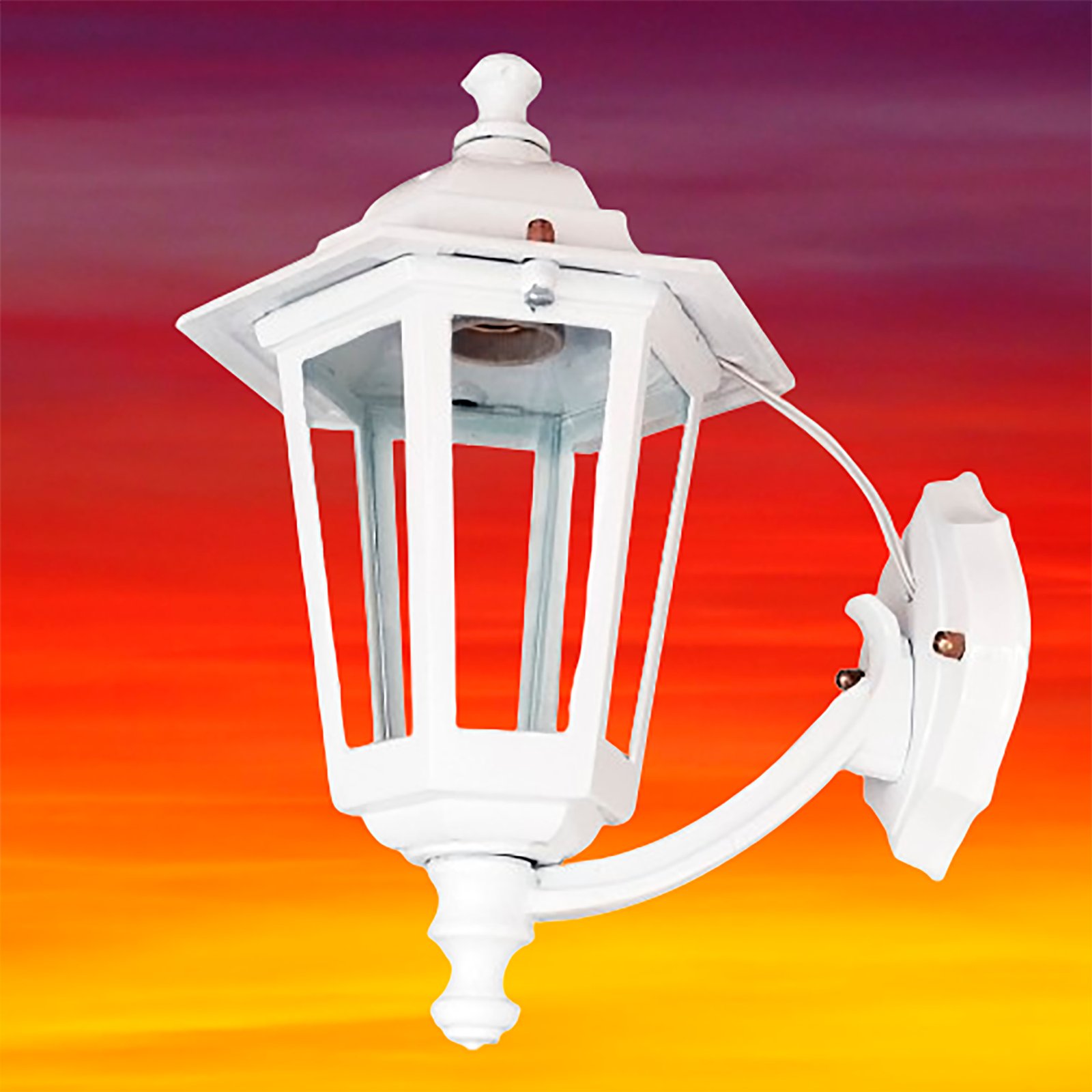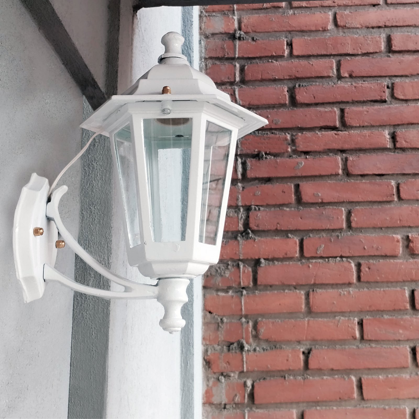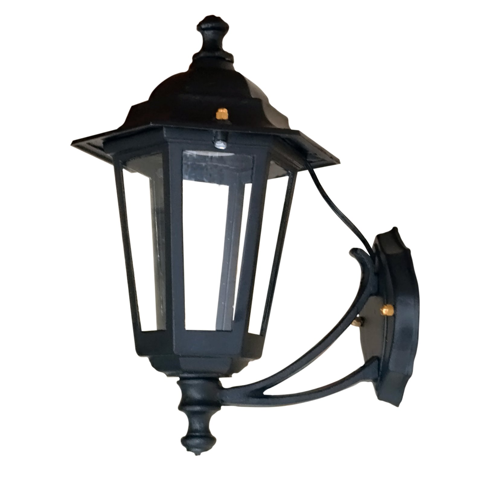 Farol Colonial Fundición Aluminio para Intemperie 6 Caras Chico Vidrio Transparente con Ménsula Inferior – Apto Led (E27) – Colores: Blanco, Negro.