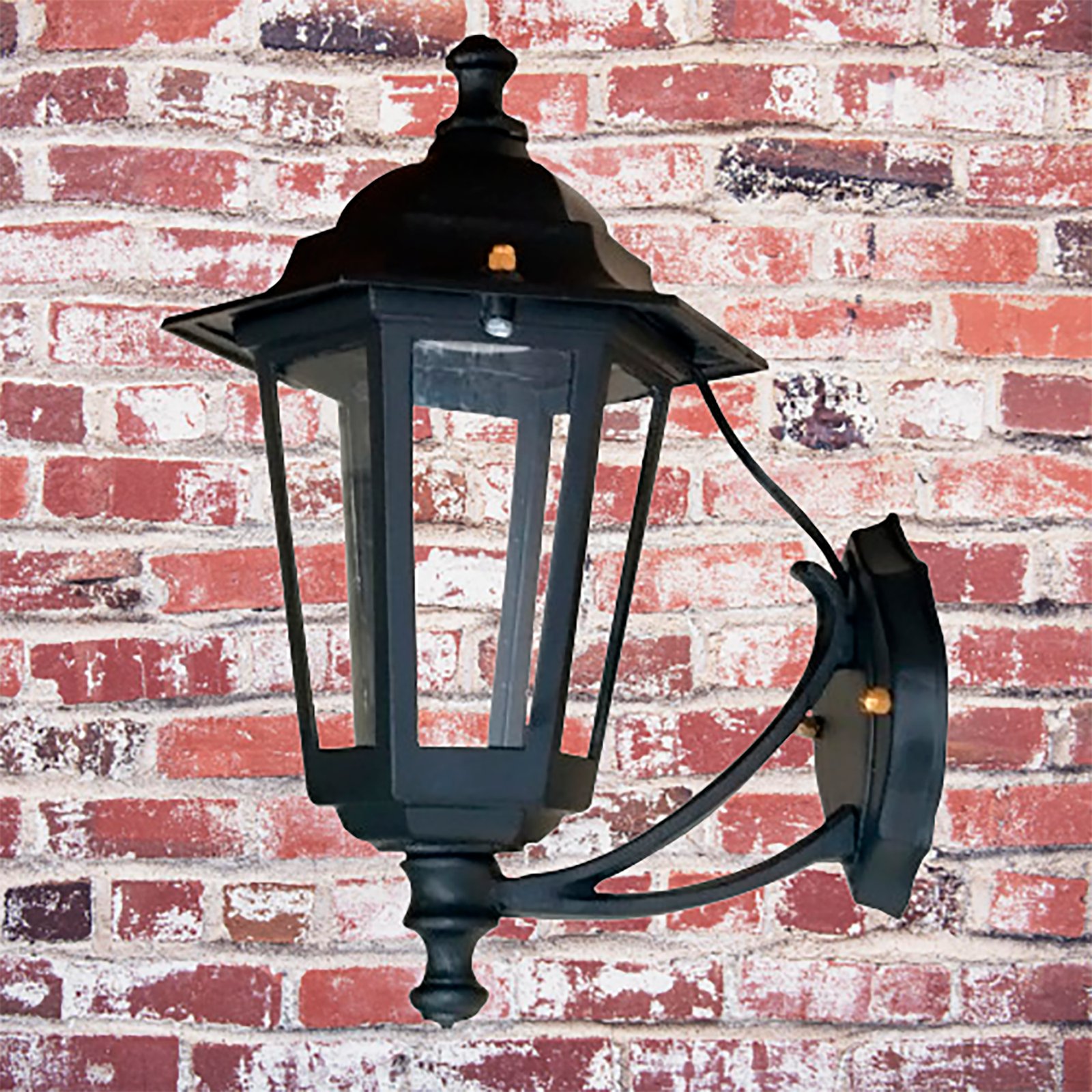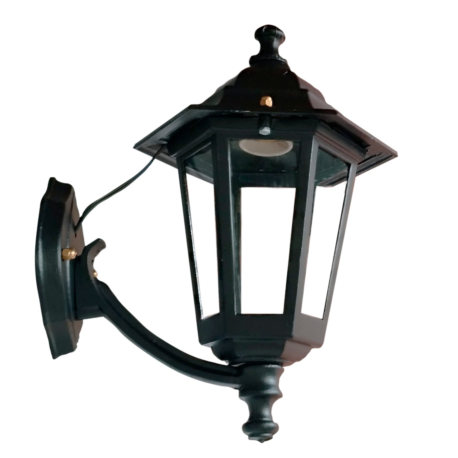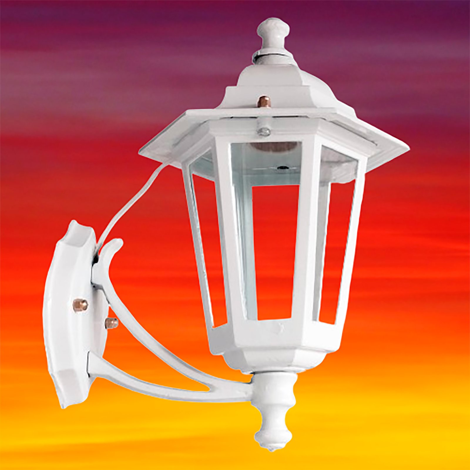 Farol Colonial Fundición Aluminio para Intemperie 6 Caras Chico Vidrio Transparente con Ménsula Inferior – Apto Led (E27) – Colores: Blanco, Negro.