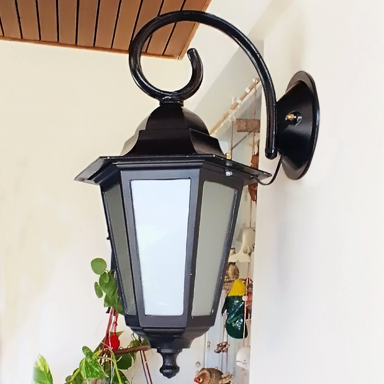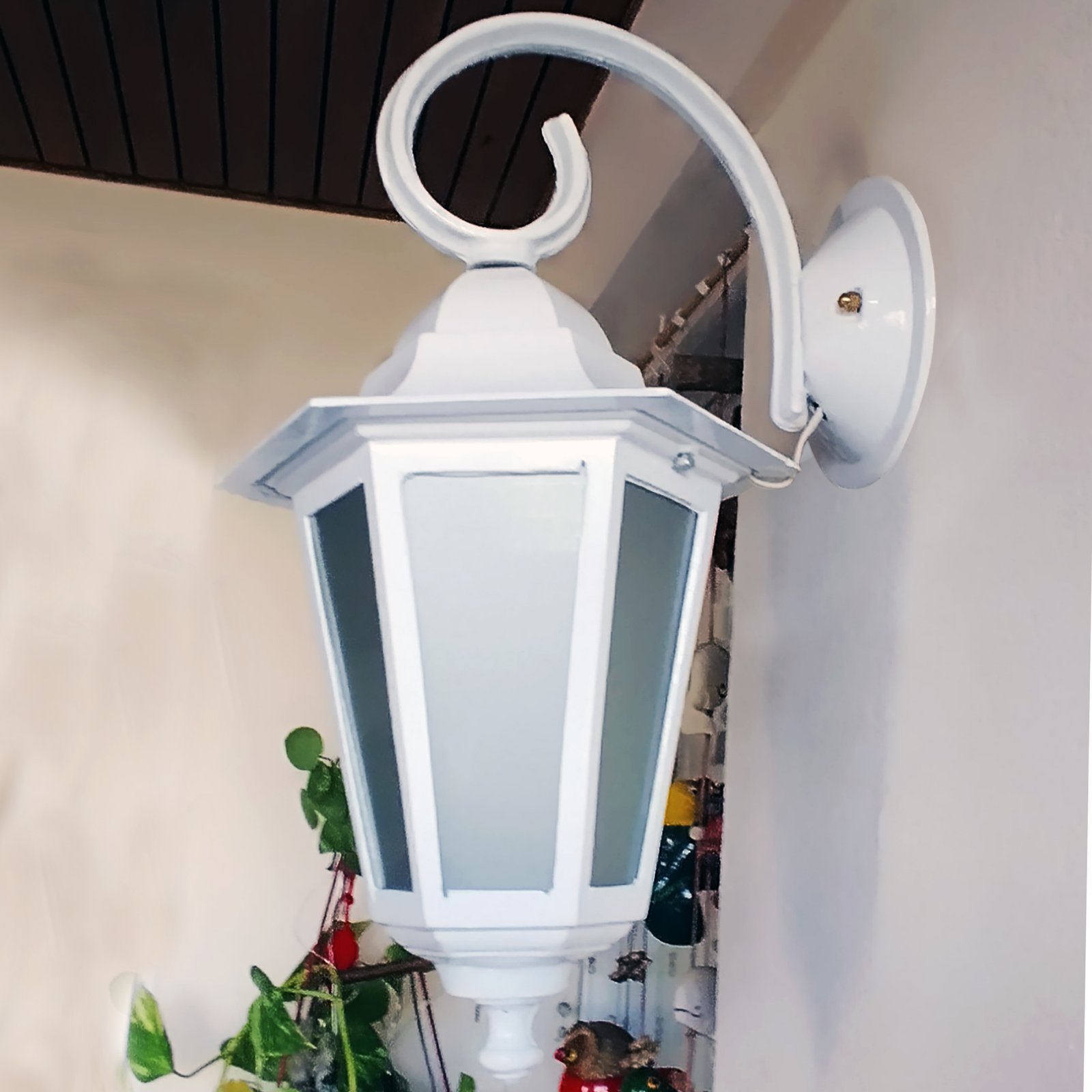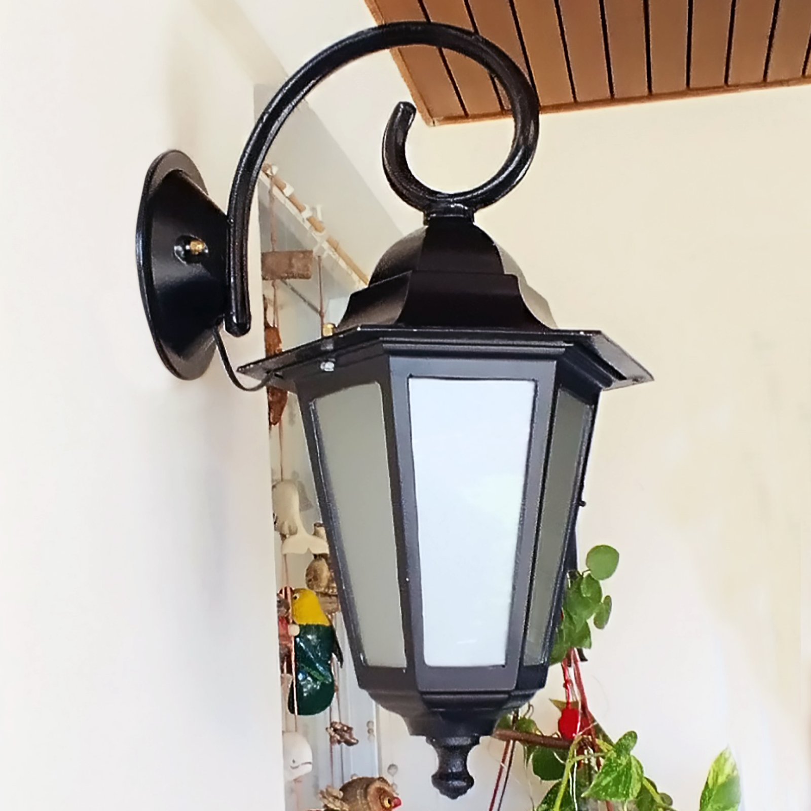 Farol Colonial Fundición Aluminio para Intemperie 6 Caras Vidrio Translúcido con Ménsula Superior – Apto Led (E27) – Colores: Blanco, Negro.