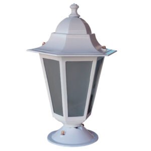 Farol Colonial Fundición Aluminio para Pilar 6 Caras Vidrio Translúcido – Apto Led (E27) – Colores: Blanco, Negro.