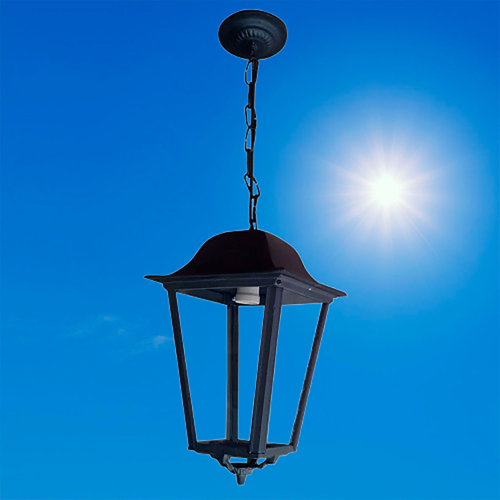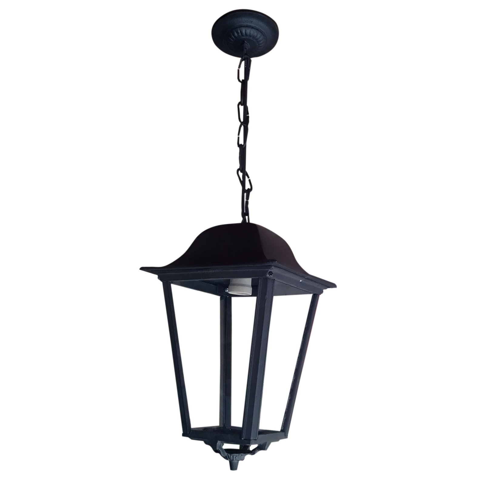 Farol Colonial Mediano de Fundición de Aluminio con Colgante (B210C) – Apto Led (E27) – Color Negro.