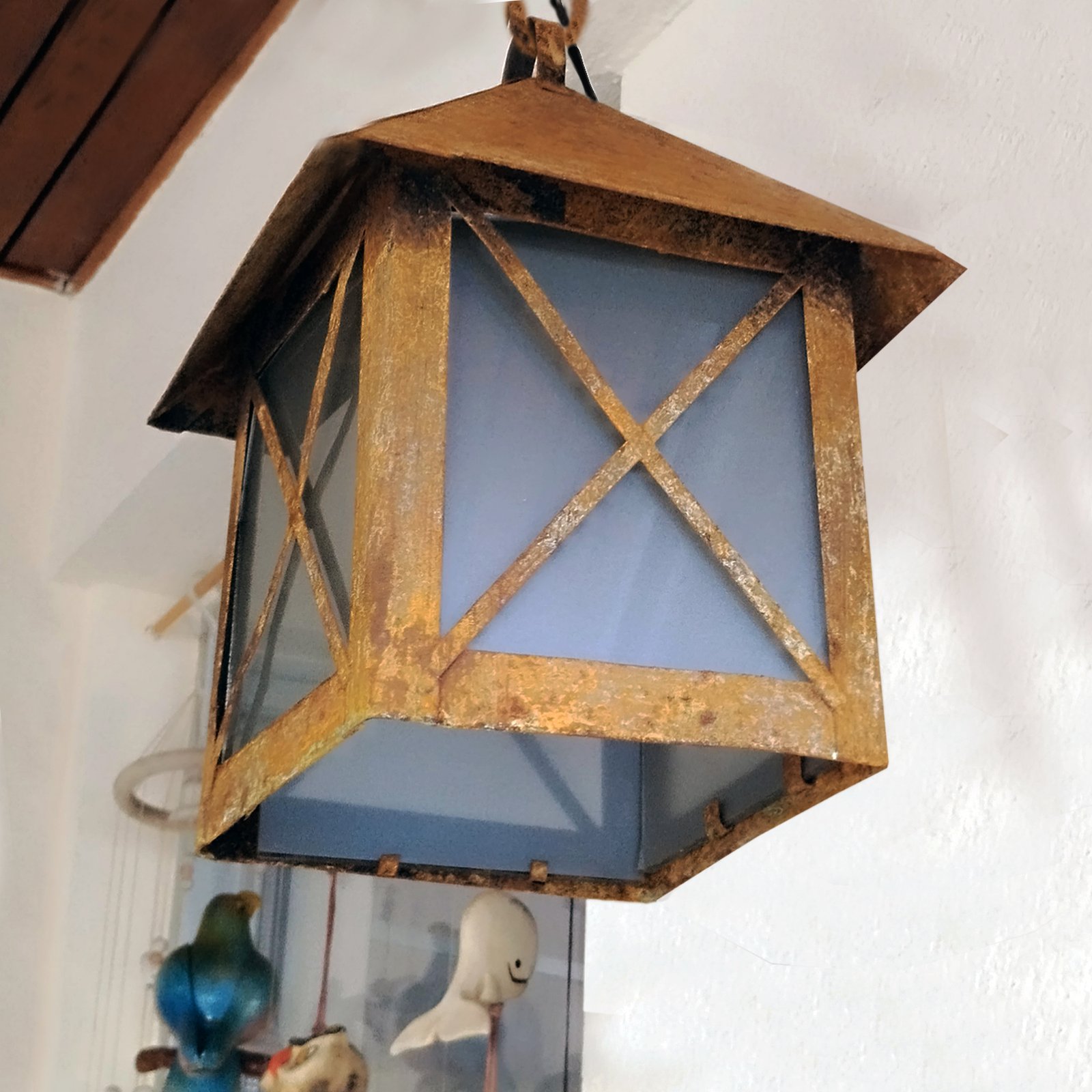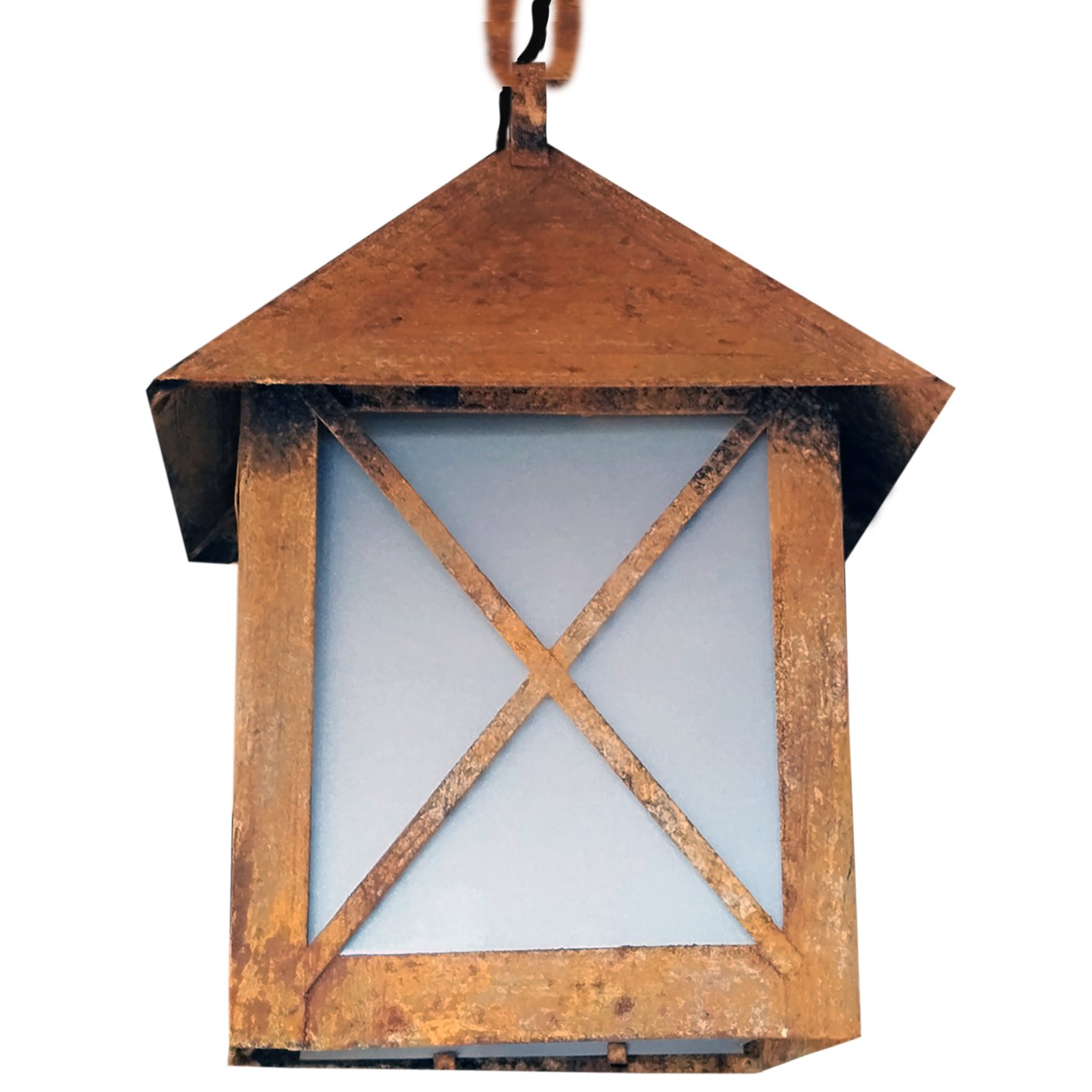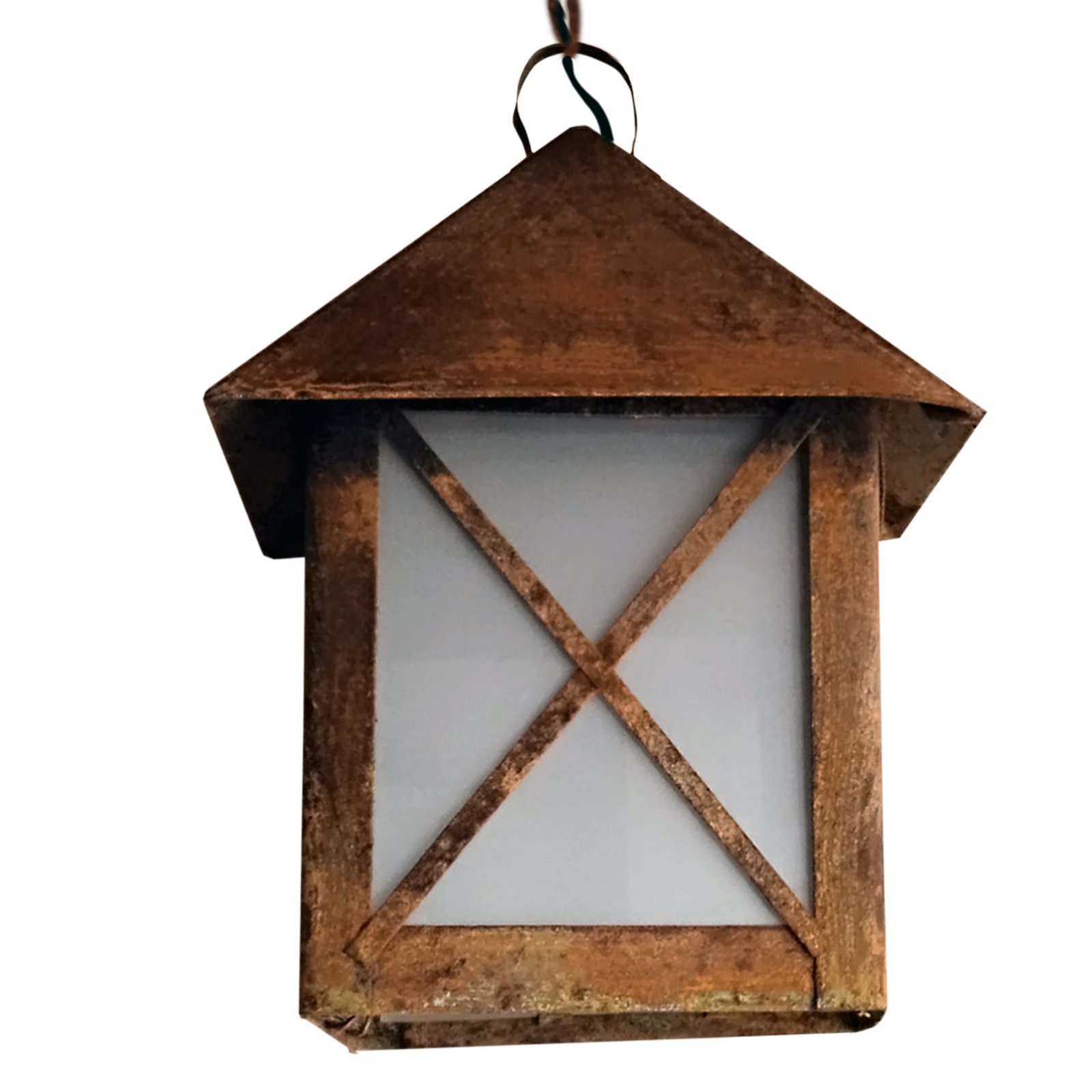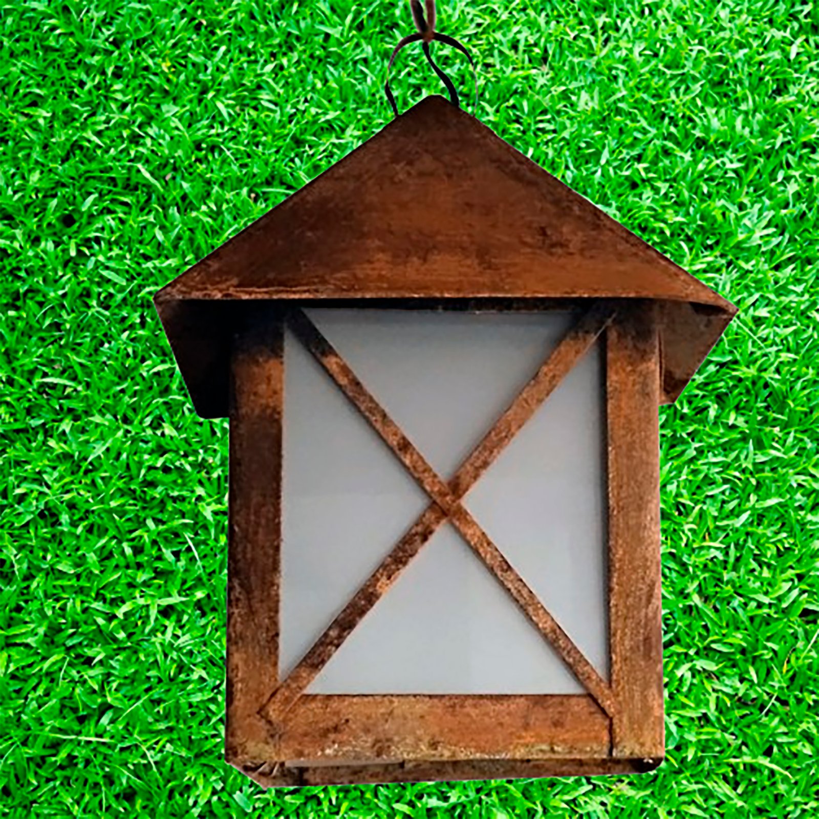 Farol de Chapa Colonial Casita Chico (3) Colgante Vidrio Translúcido Símil Óxido – Apto Led (E27)