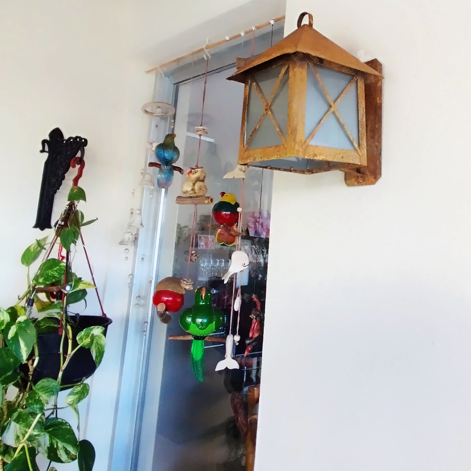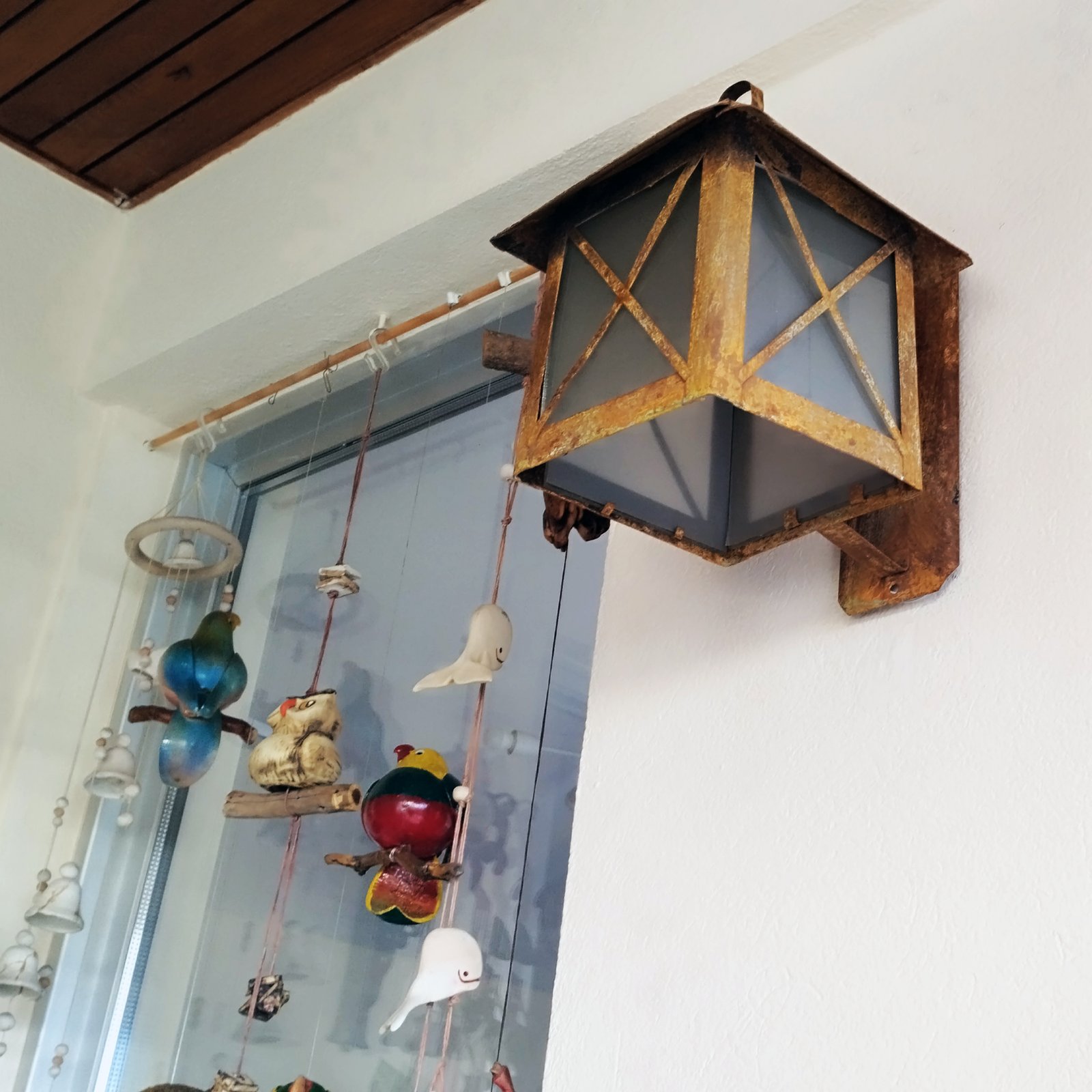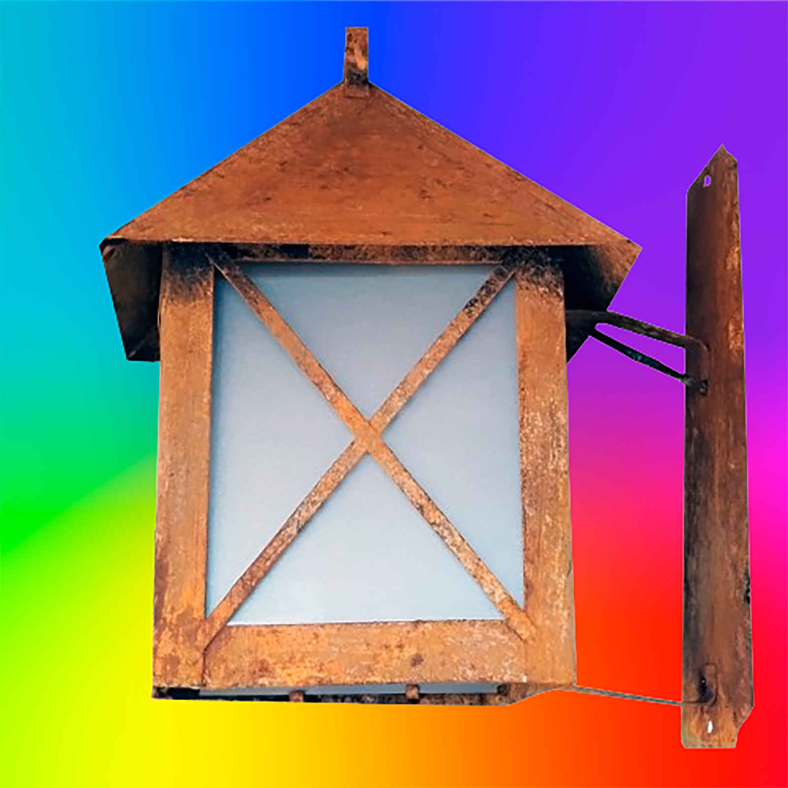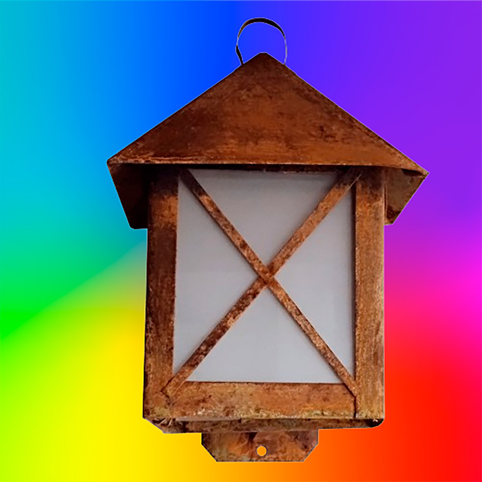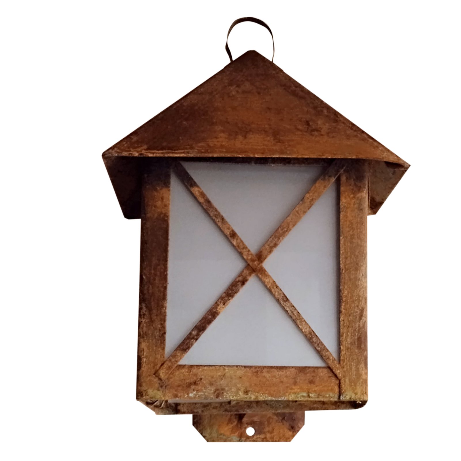 Farol de Chapa Colonial Casita Chico (7) con Ménsula Vidrio Translúcido Símil Óxido – Apto Led (E27)