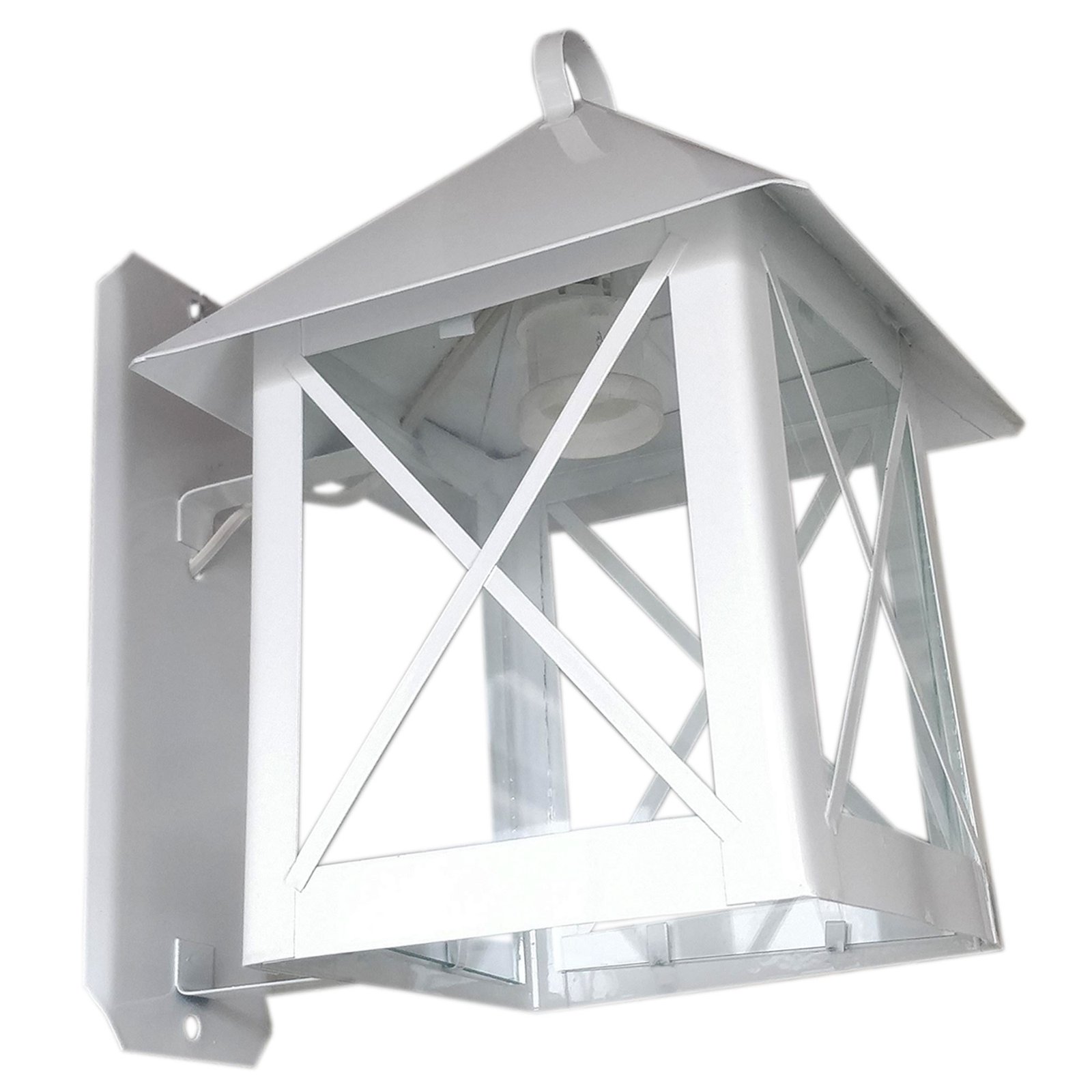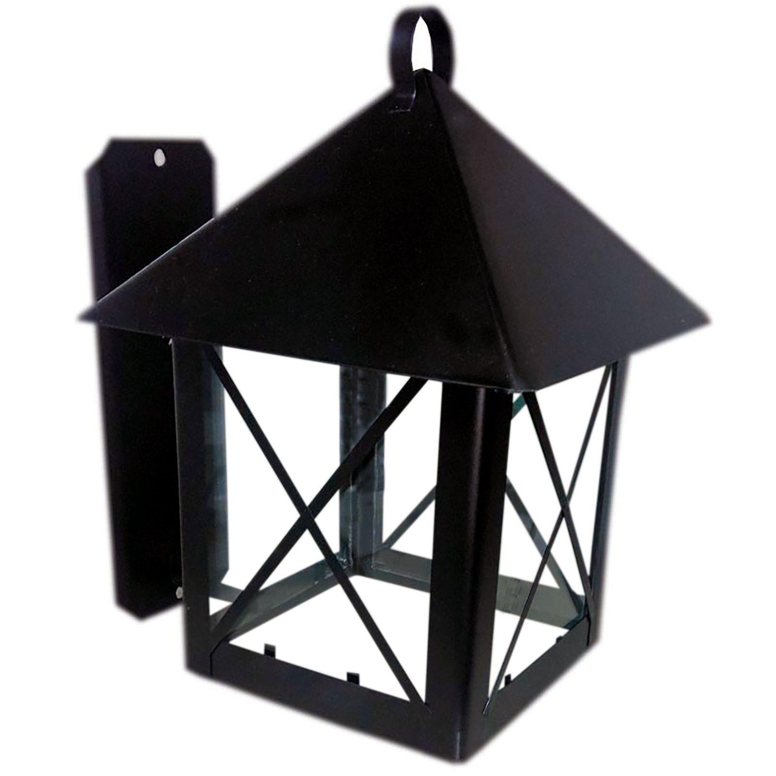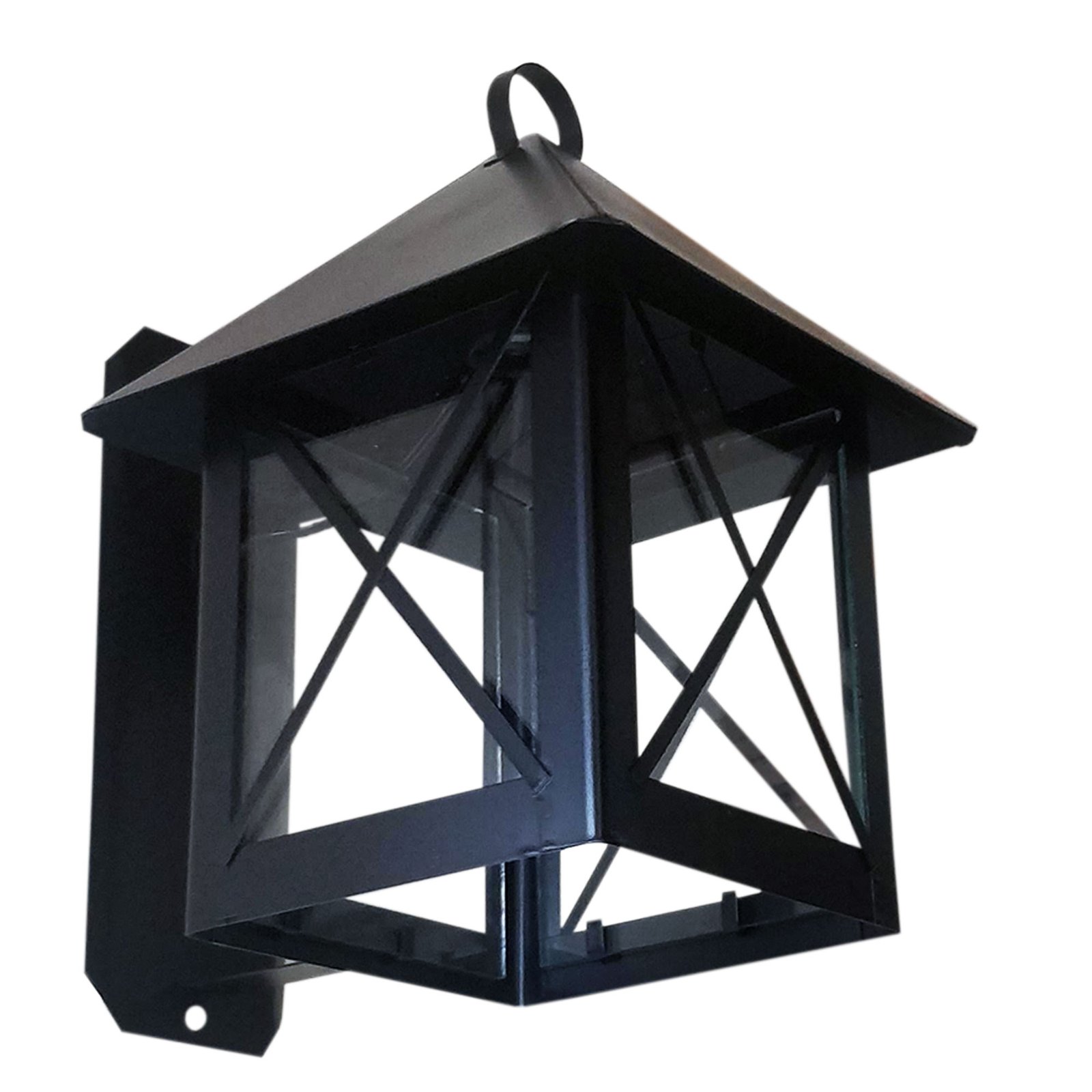 Farol de Chapa Colonial Casita Chico (7) con Ménsula Vidrio Tanspatente – Apto Led (E27) – Colores: Blanco, Negro.