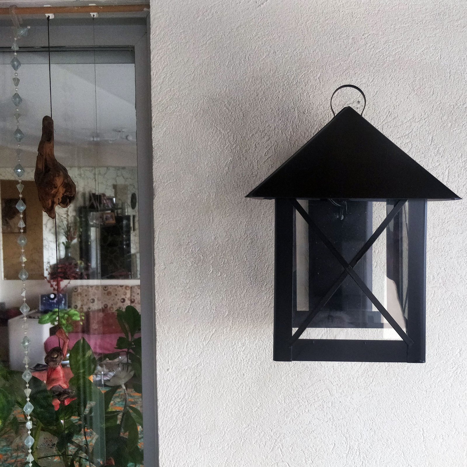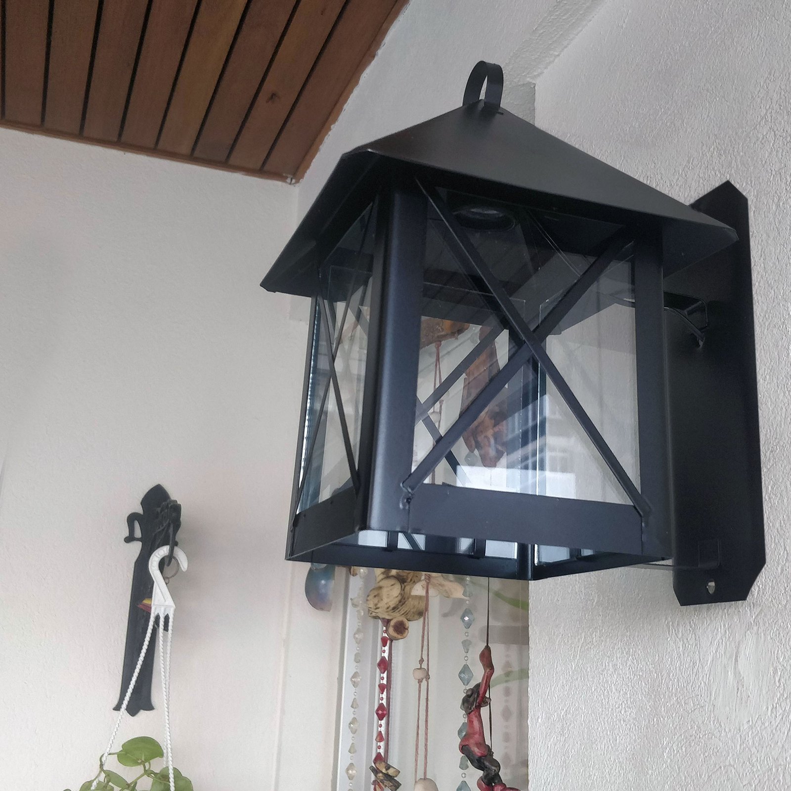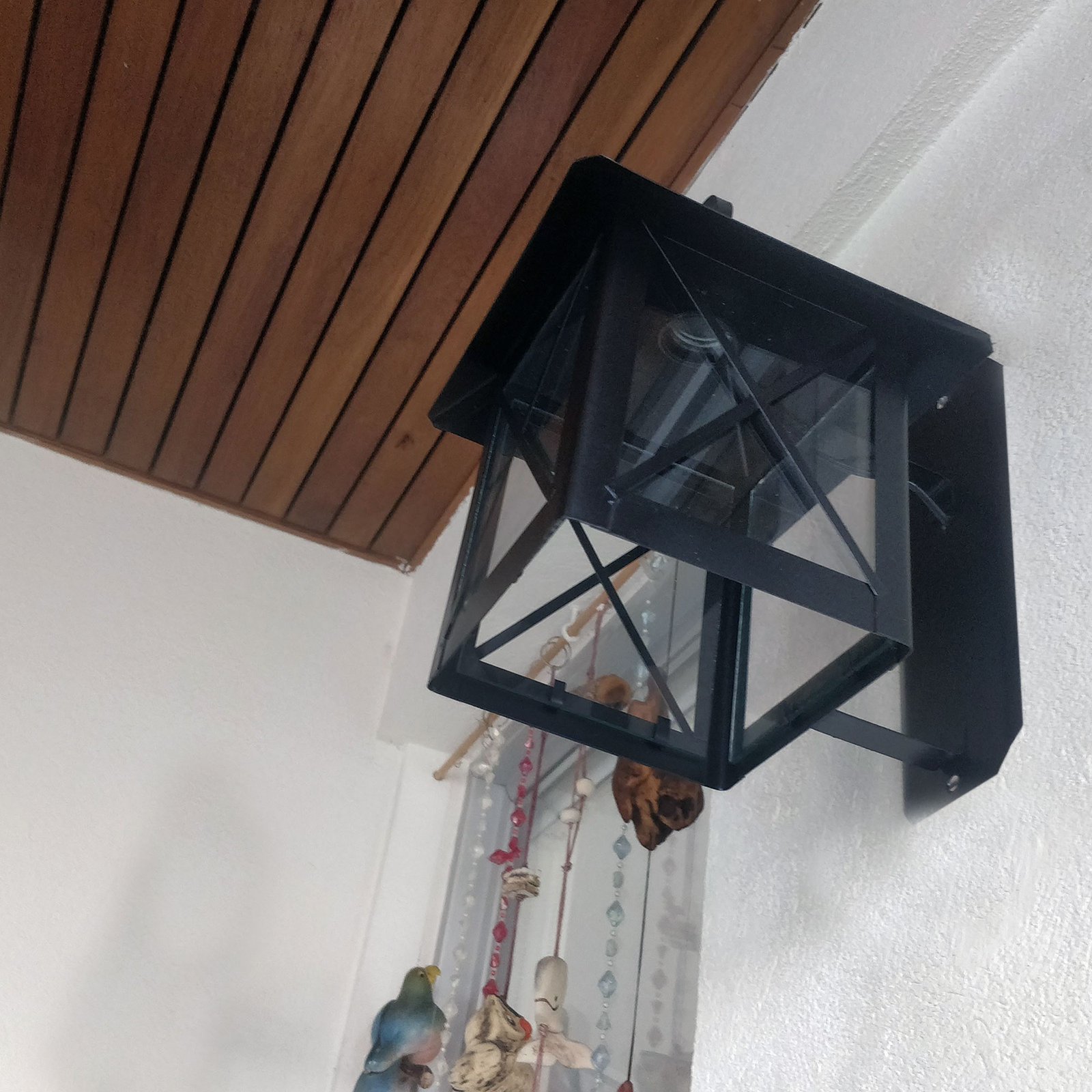 Farol de Chapa Colonial Casita Chico (7) con Ménsula Vidrio Tanspatente – Apto Led (E27) – Colores: Blanco, Negro.