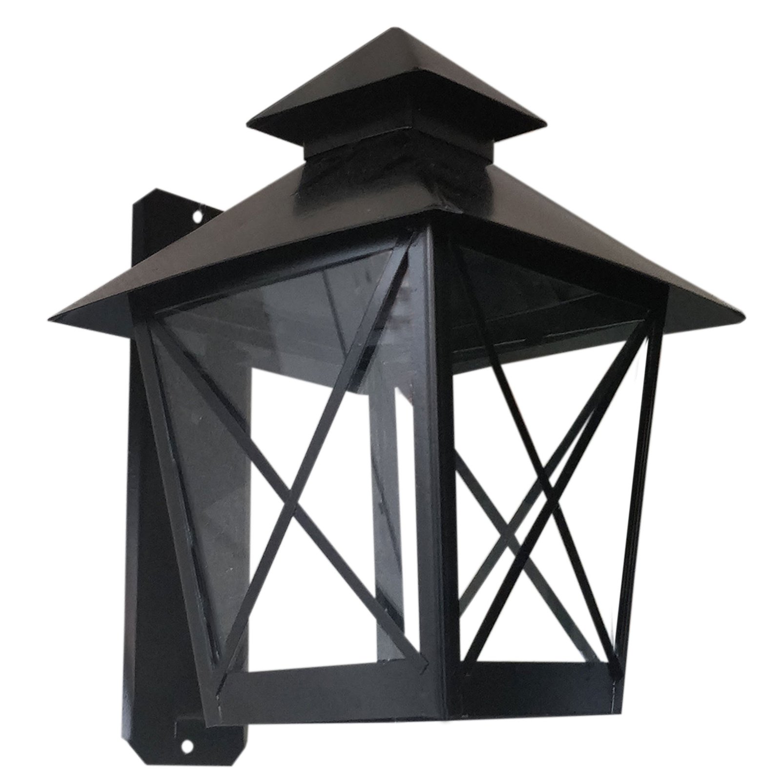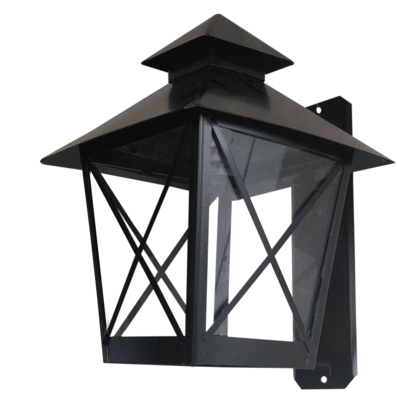 Farol de Chapa Colonial Casita Grande de Pared con Ménsula (16) con Vidrio Transparente – Apto Led (E27) – Colores: Blanco, Negro.