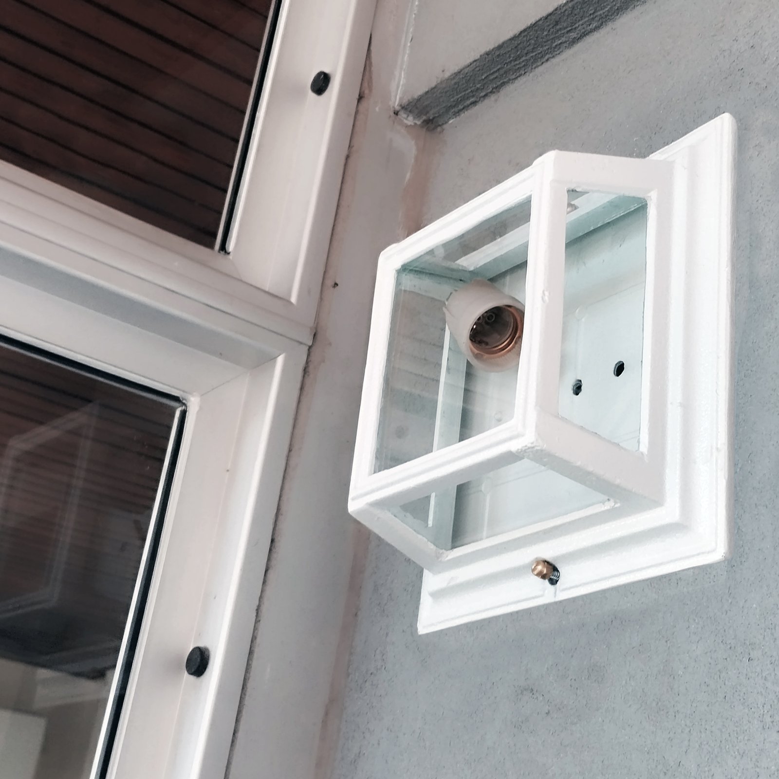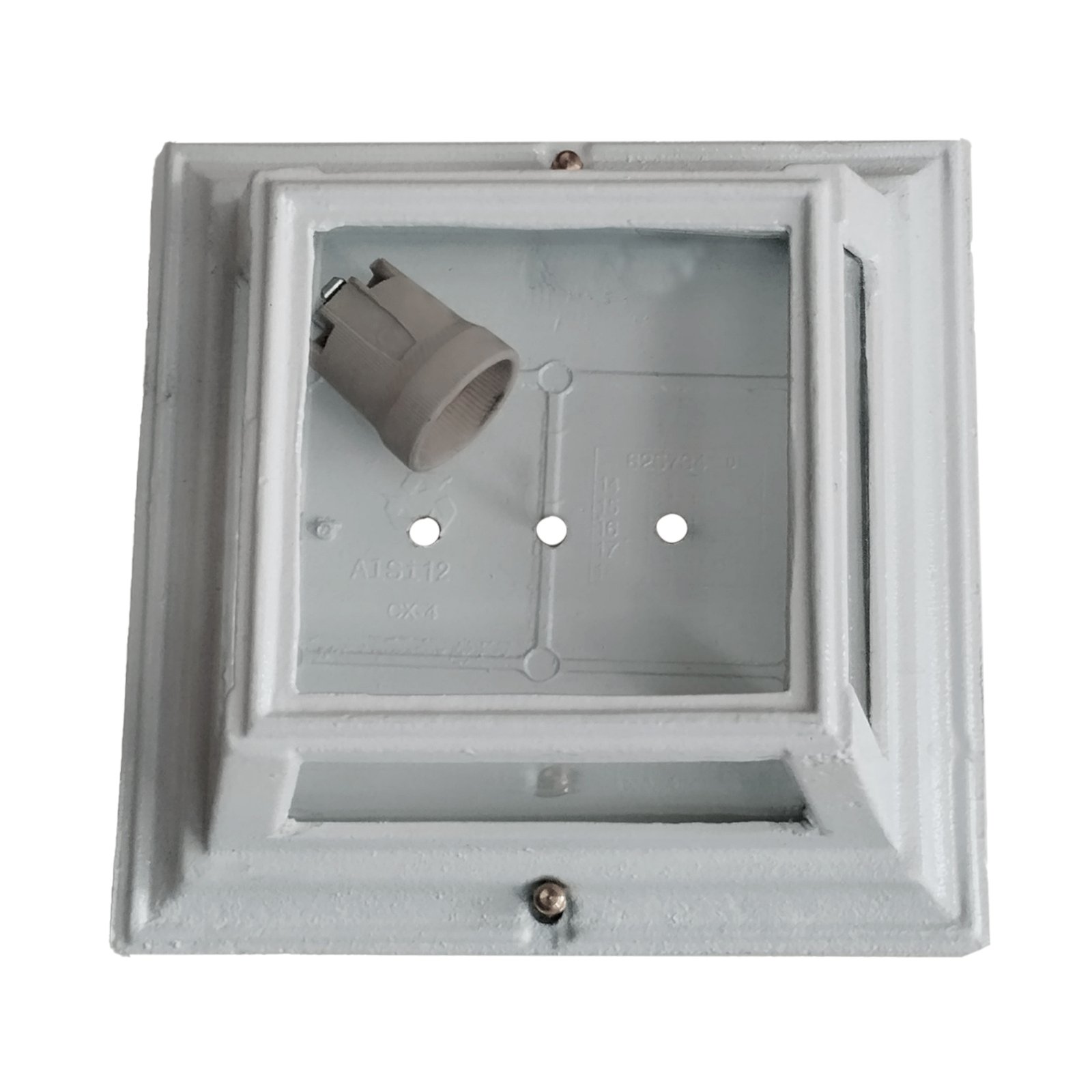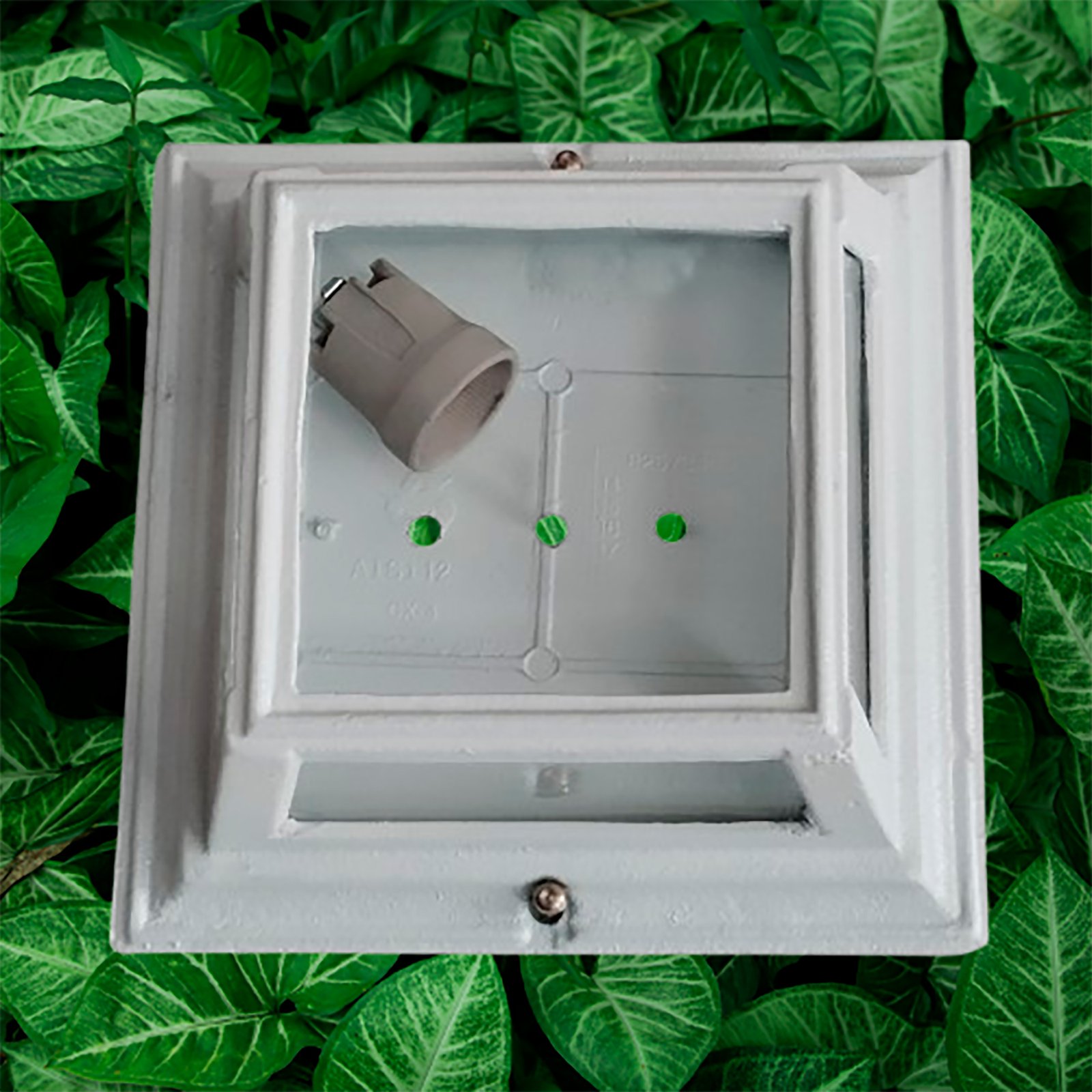 Farol Fundición Aluminio Cuadrado Apto Led E27 para 1 Luz Vidrio Transparente – Colores:  Negro, Blanco.