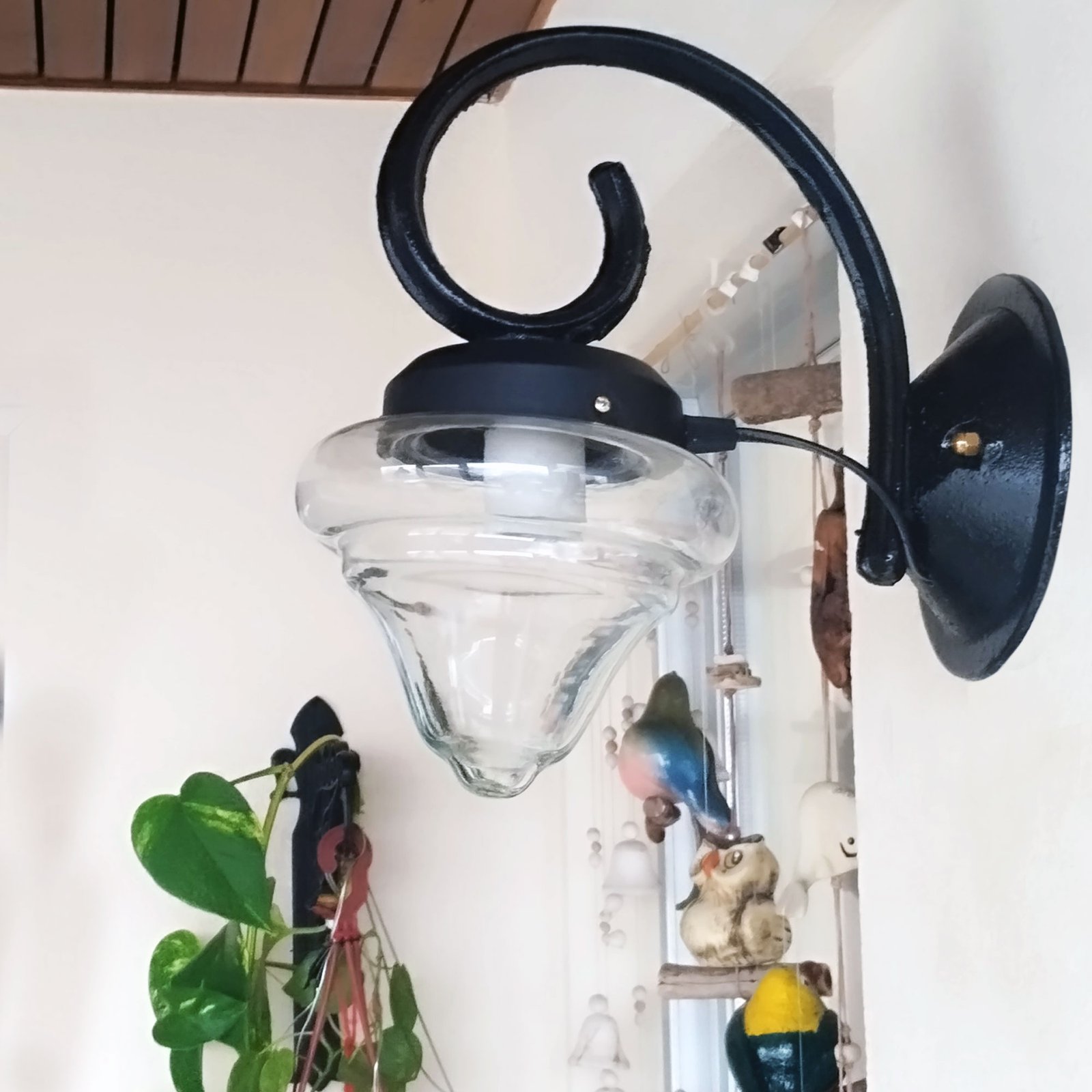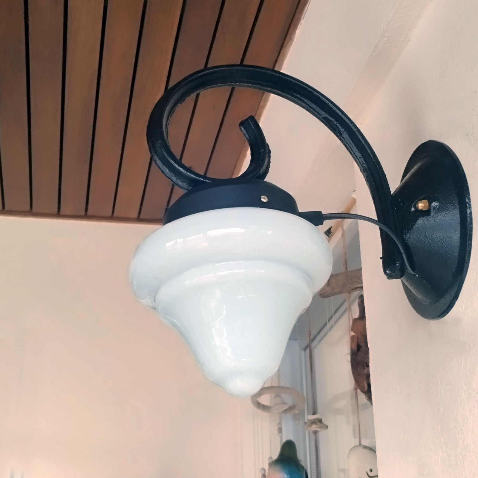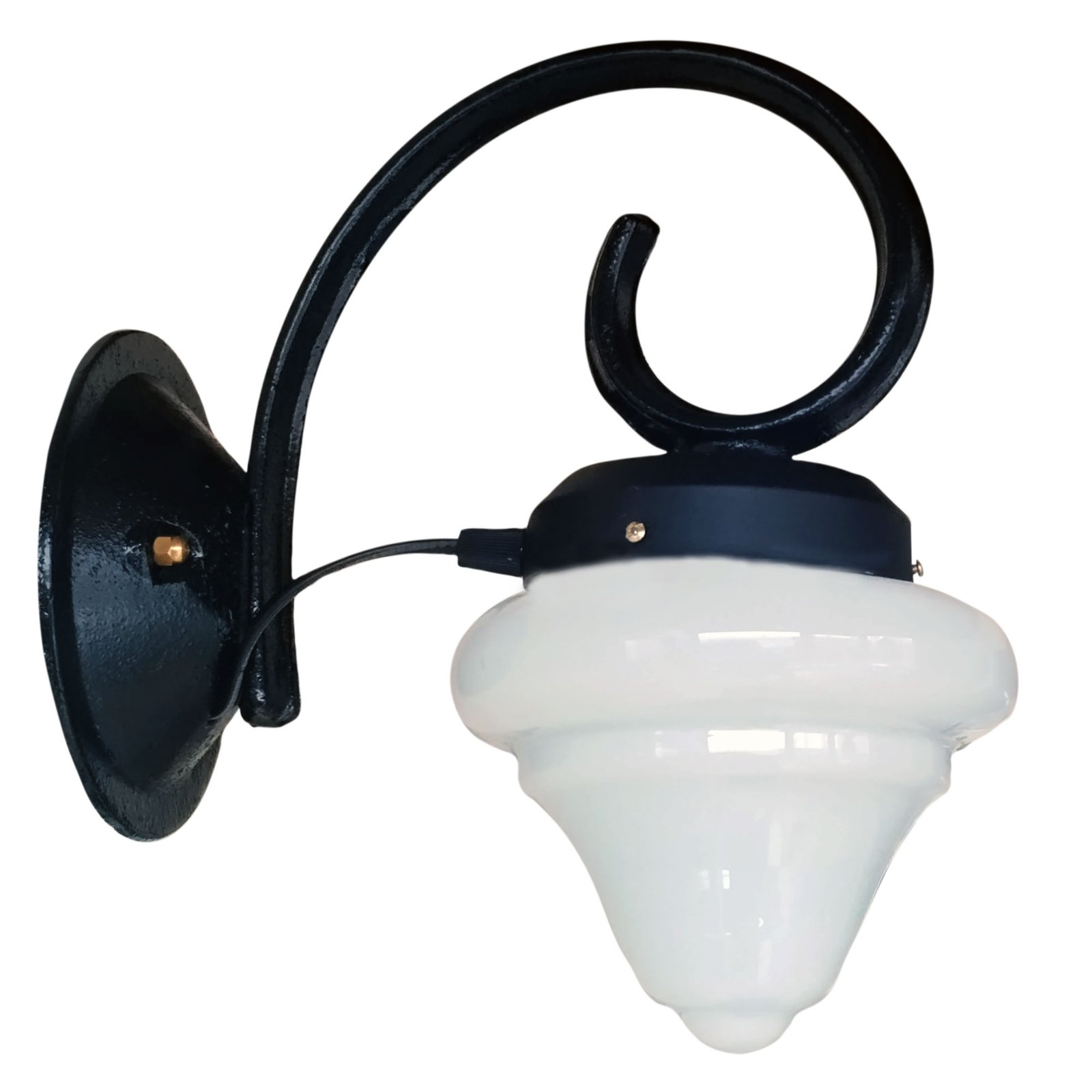 Farol Ménsula Colonial Fundición Aluminio y Vidrio Trompo1 Transparente ú Opal 8×15 – Apto Led (E27) – Colores: Blanco, Negro.