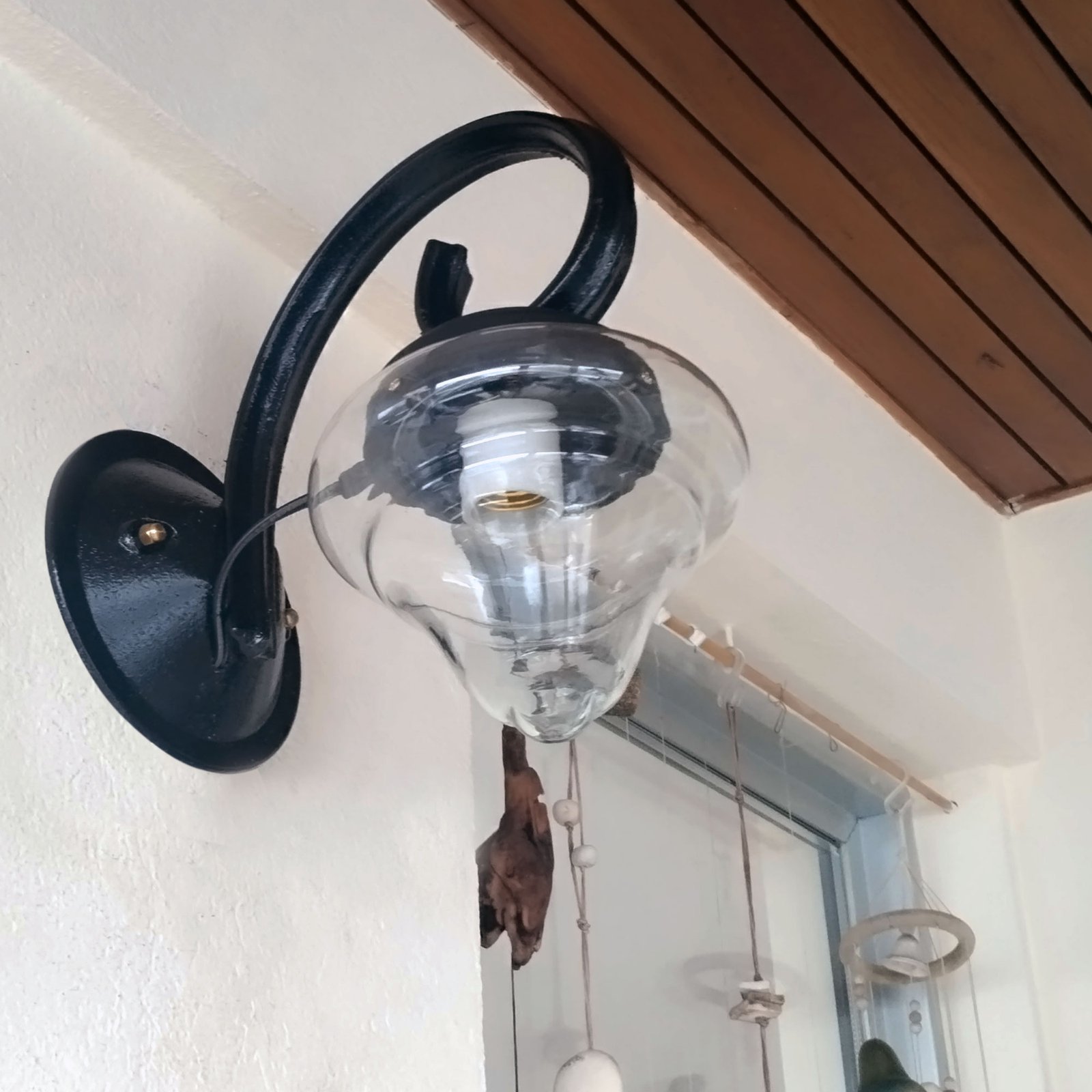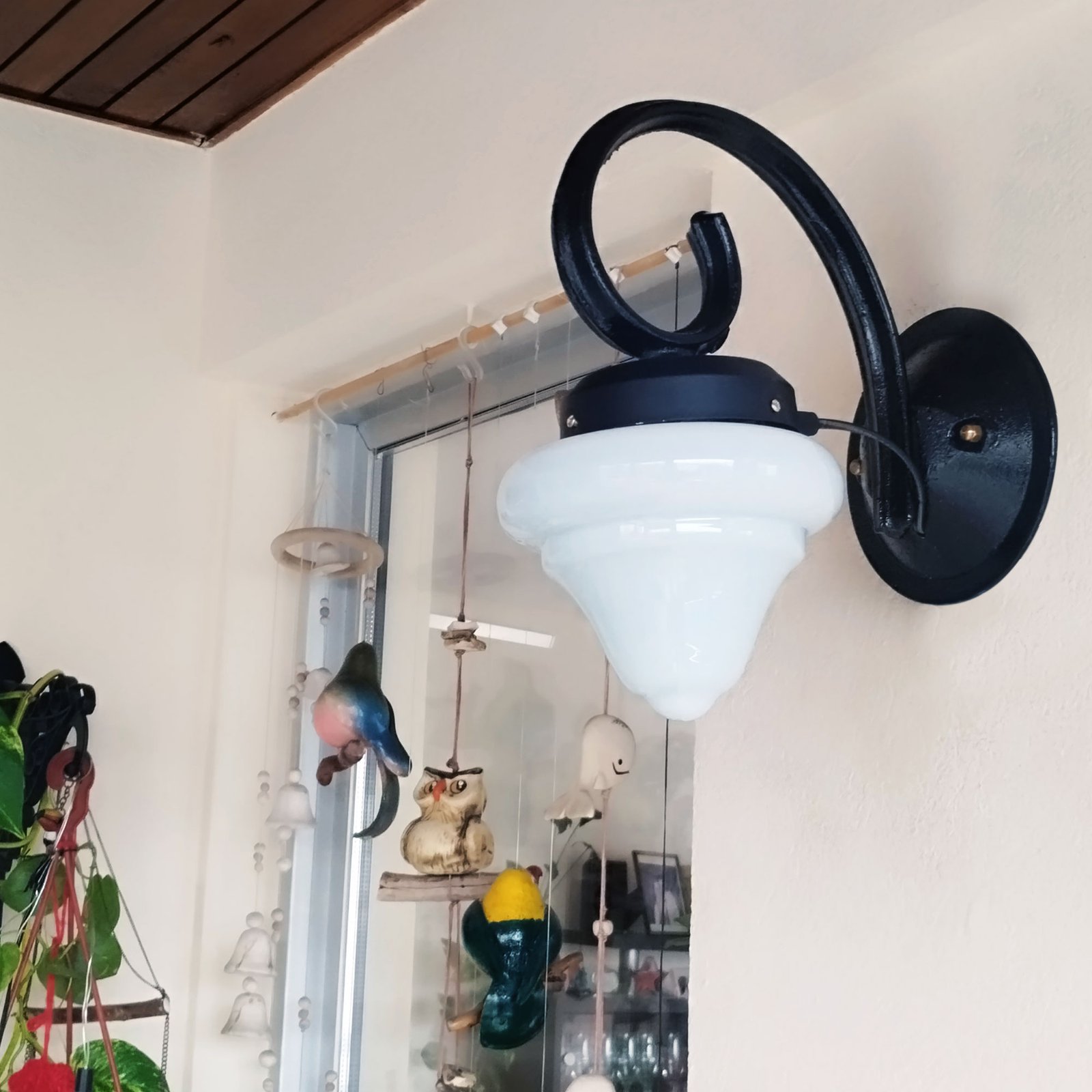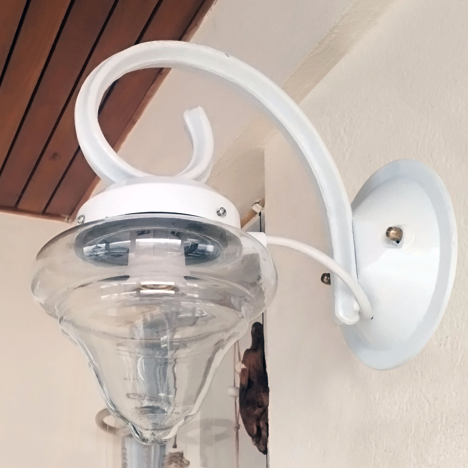 Farol Ménsula Colonial Fundición Aluminio y Vidrio Trompo1 Transparente ú Opal 8×15 – Apto Led (E27) – Colores: Blanco, Negro.