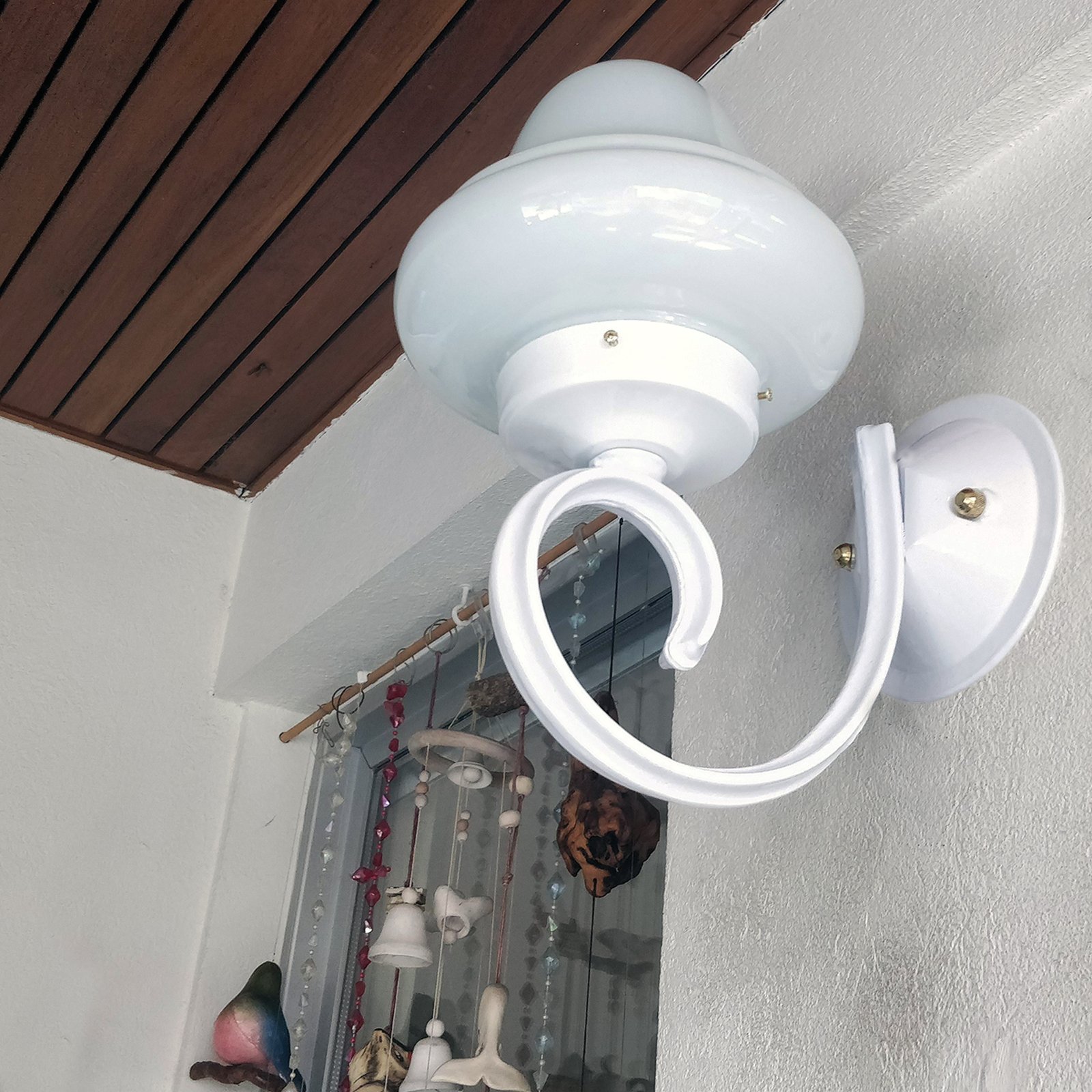 Farol Ménsula Colonial Fundición Aluminio y Vidrio Trompo 2 Opal 10×20 – Apto Led (E27) – Colores: Blanco, Negro.